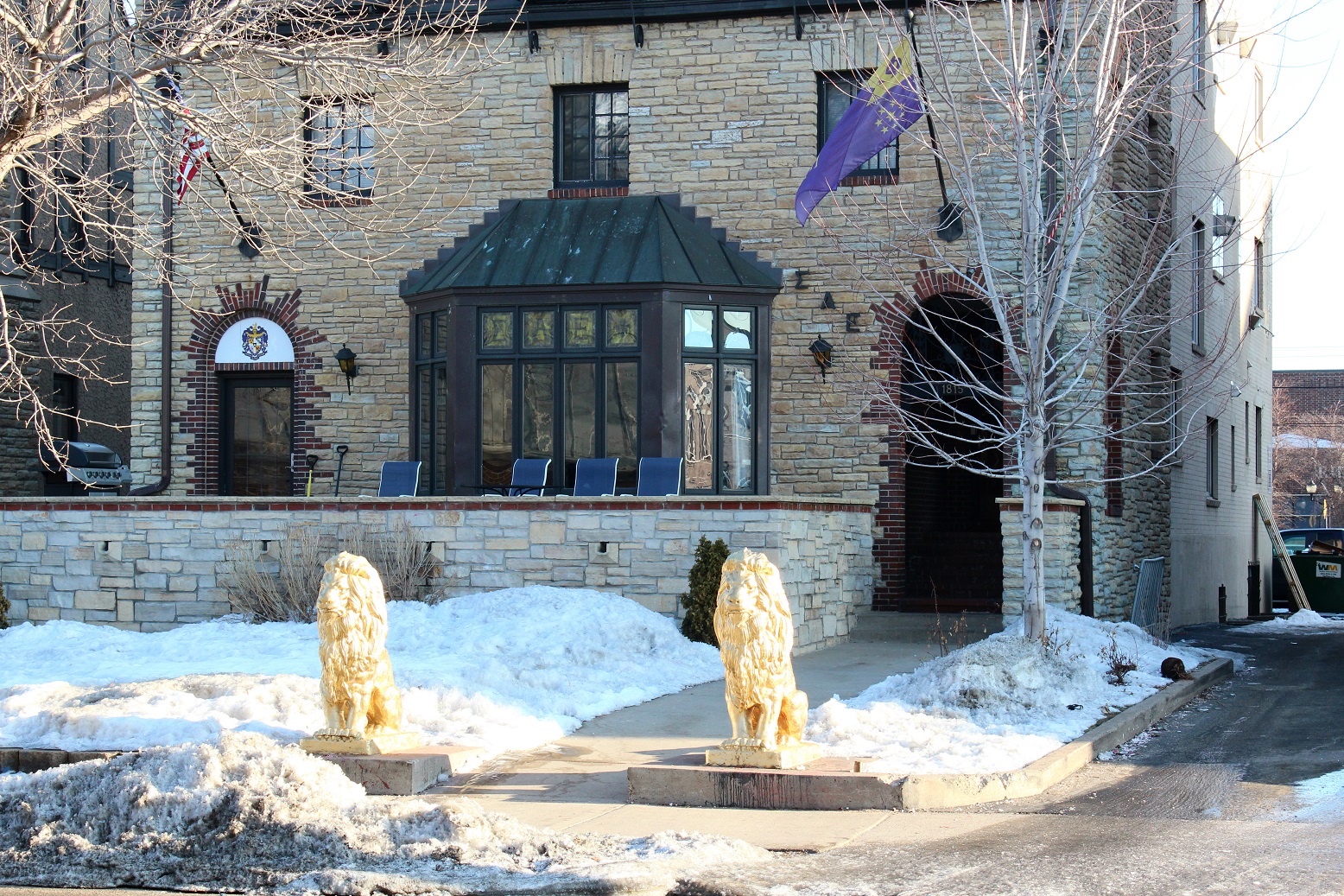 The morning after the Cardinals’ state tournament basketball game, the supervisor and I awoke from our campus lodgings to a bright, sunshiny day. We decided to make the most of the opportunity to stroll the vicinity and to find a breakfast place with Wifi (sometimes wifi, or Wi-Fi, or WiFi . . . go figure?) – my, how we’ve become attached to it? We shuffled to the car – remember it was still winter and the parking lot was a sheet of ice – to squirrel away our luggage. [Aside: A snowbird recently returned and recounted how a local from someplace south of here pegged him as a Minnesotan? When asked how he knew, he said he recognized the ice shuffle, even in a place without ice.] Then we hit our stride on some dry sidewalks and ambled over to the Alumni Center. Once there we obviously looked like the tourists we were as a gentleman asked if he could help us. We said- breakfast with Wifi! He mentioned a few places we were aware of but didn’t excite the taste buds so he suggested Dinkytown – a little walk but it could be an appetite builder. So off we went, passing the Sigma Alpha Epsilon lions along the way.