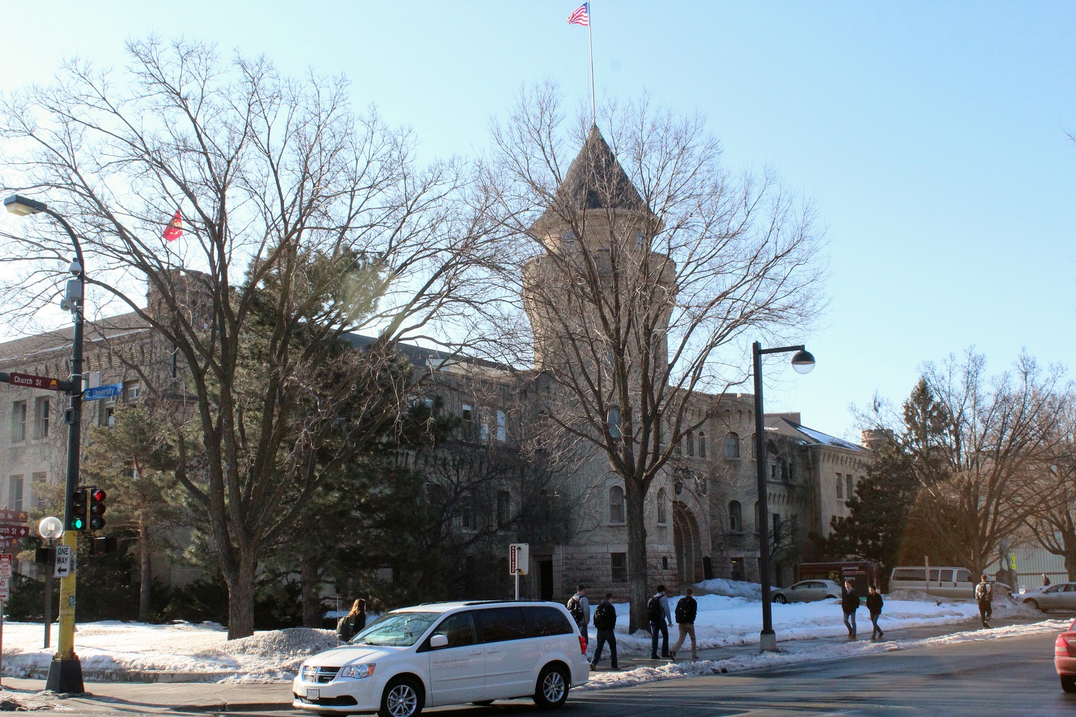 [The iconic and historic Folwell Hall on University Avenue.]