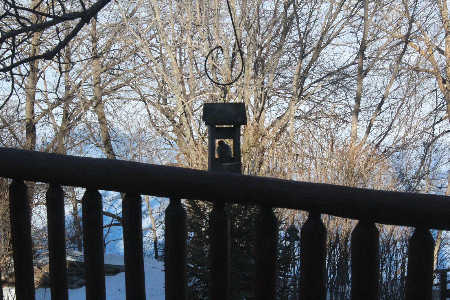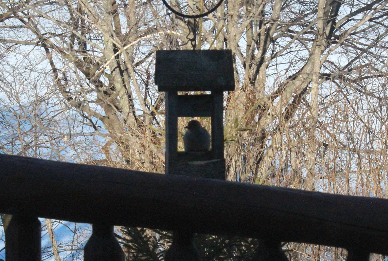 [A quick look at the “state of the season” for the snowbirds. Last Friday, one of the supervisor’s birdie friends drops by for a snack.]