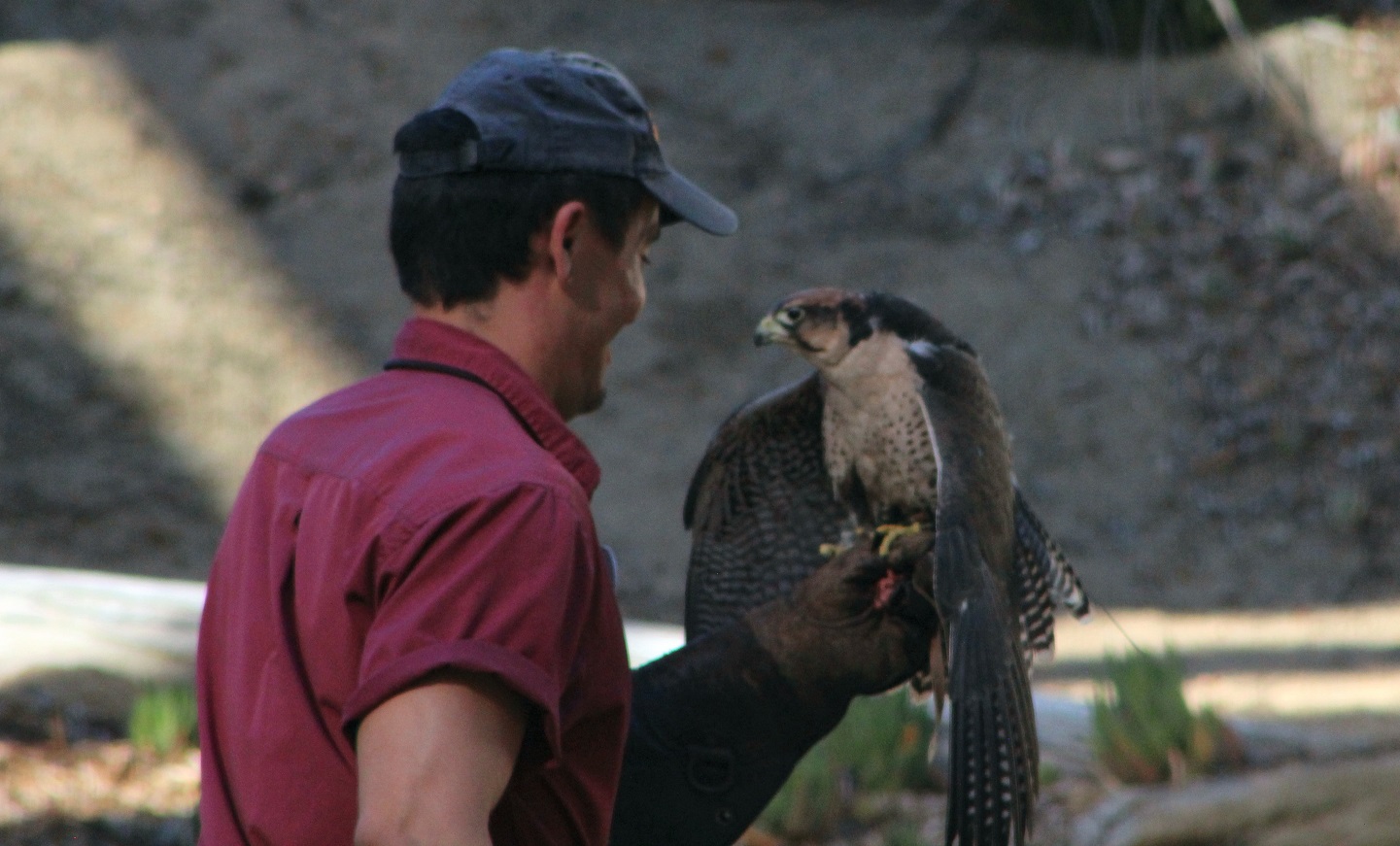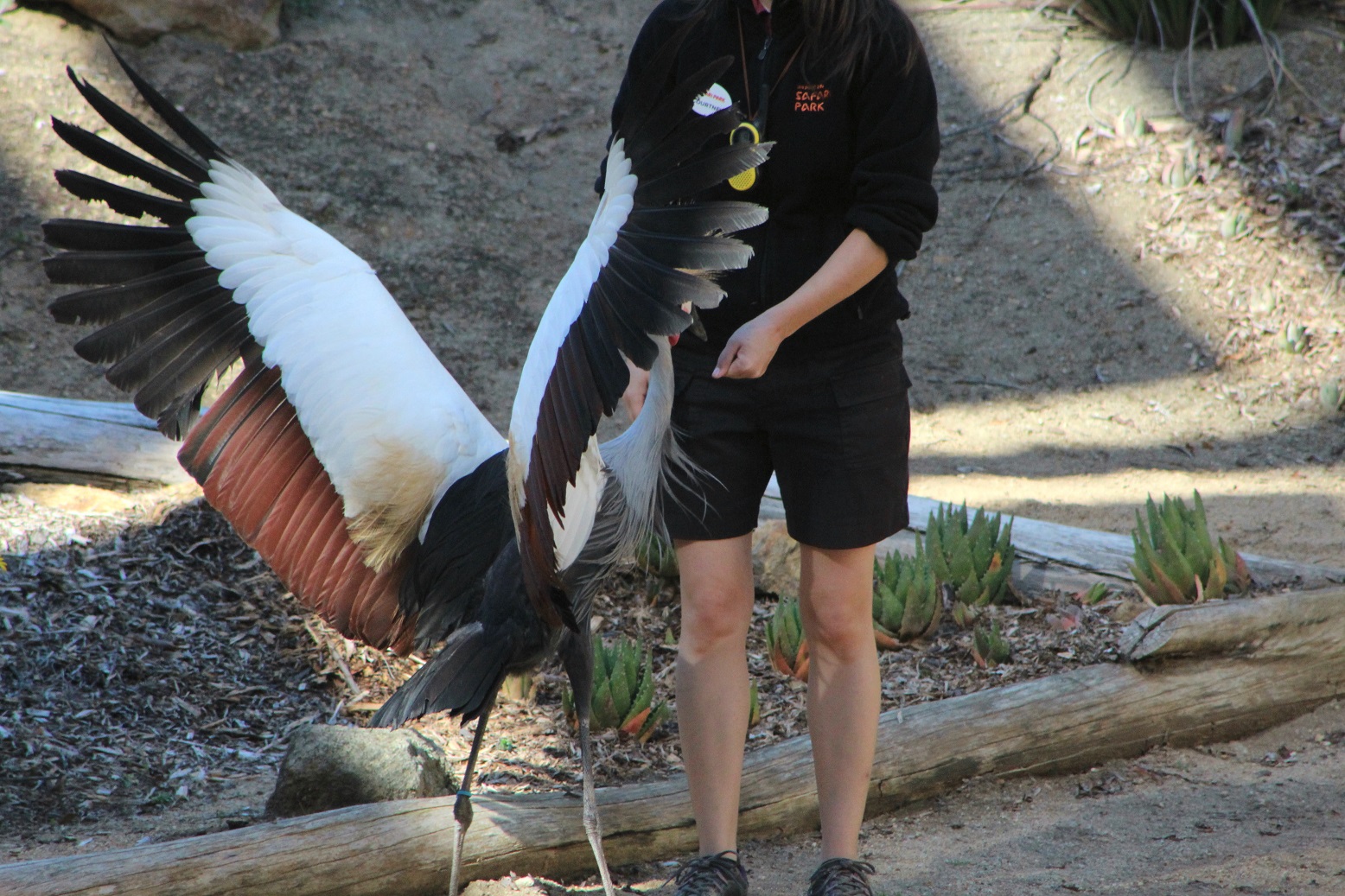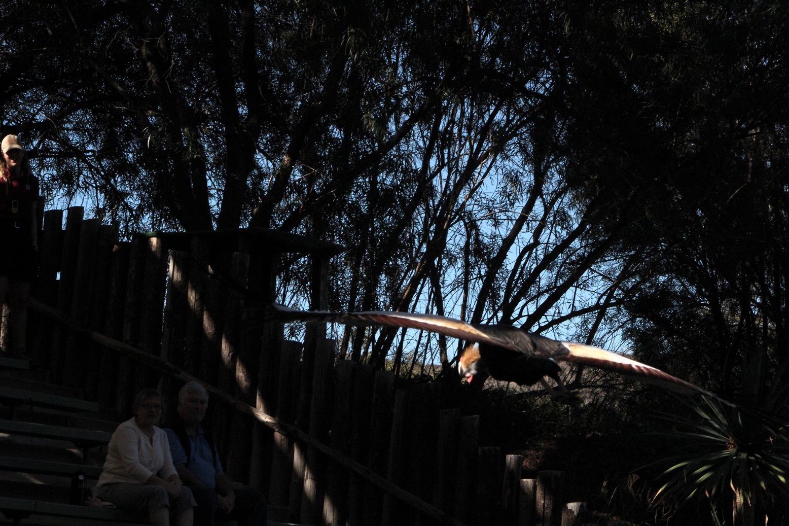[It was time for the bird show – and sitting in the stands, a condor.]