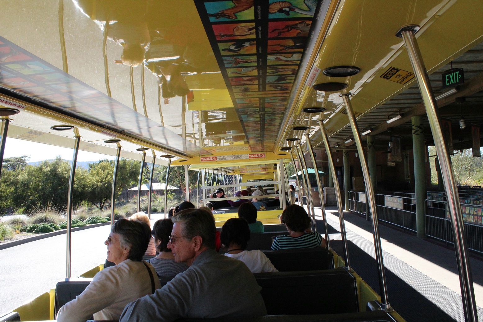 [Ahhh, our first task was to find the tram, a/k/a, light rail transit, for a tour. You have to walk all the way across the park to get there, but it’s best to do it as early as possible to avoid tourist rush hour.]