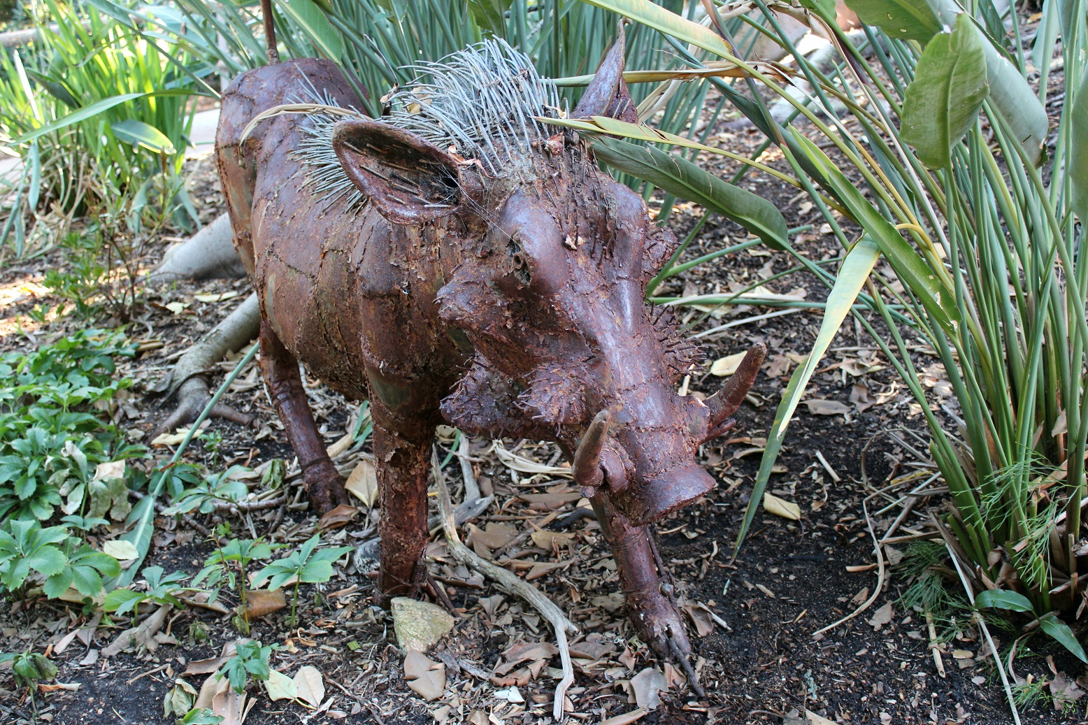 [Rita and I pose with a sculpture of the rare horned pig.]