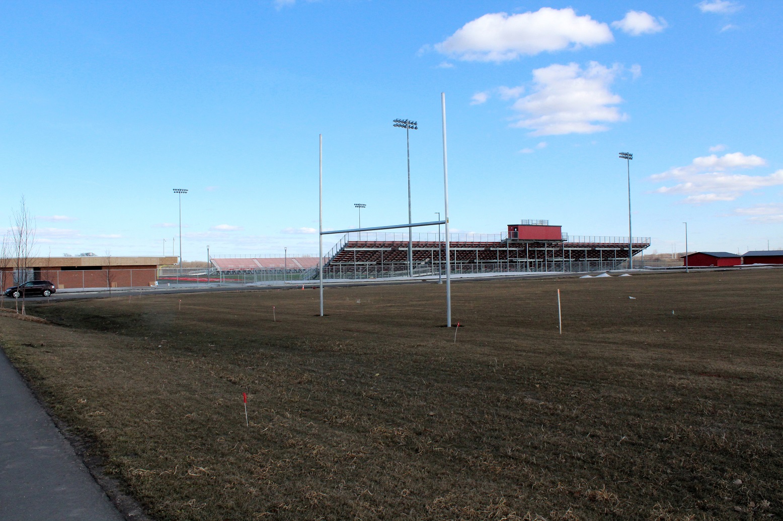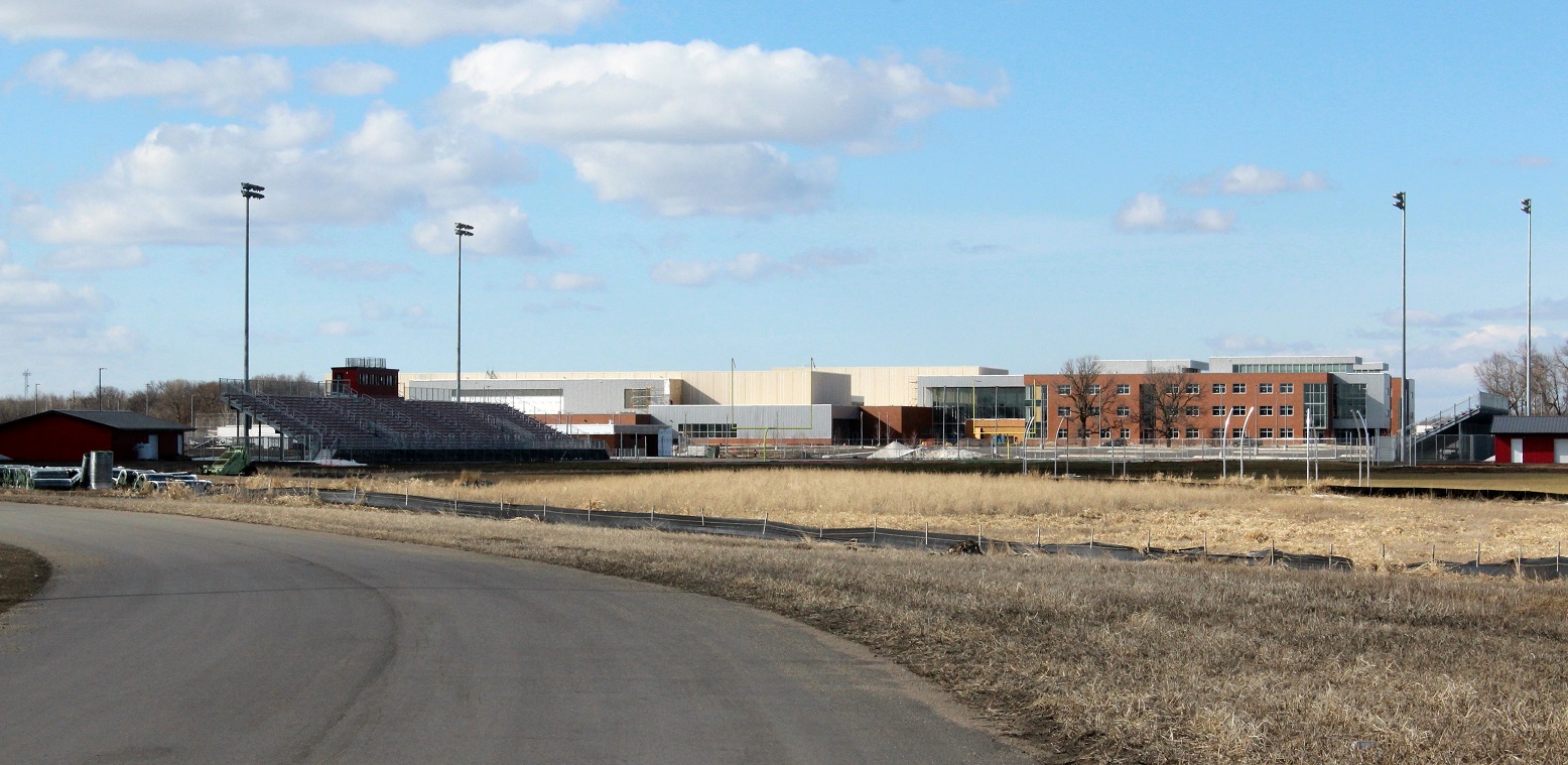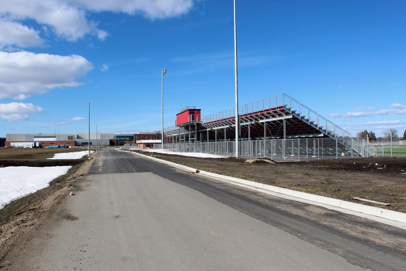 [Then I thought, well maybe they’ve moved the games to the new high school now? Nope, but as long as I was there, I hadn’t included a construction update in the blog for a while. So, this is the state of the new school, as of April 8, 2014, scheduled to open next fall. This is the first time I’d entered the property from the south side road.]