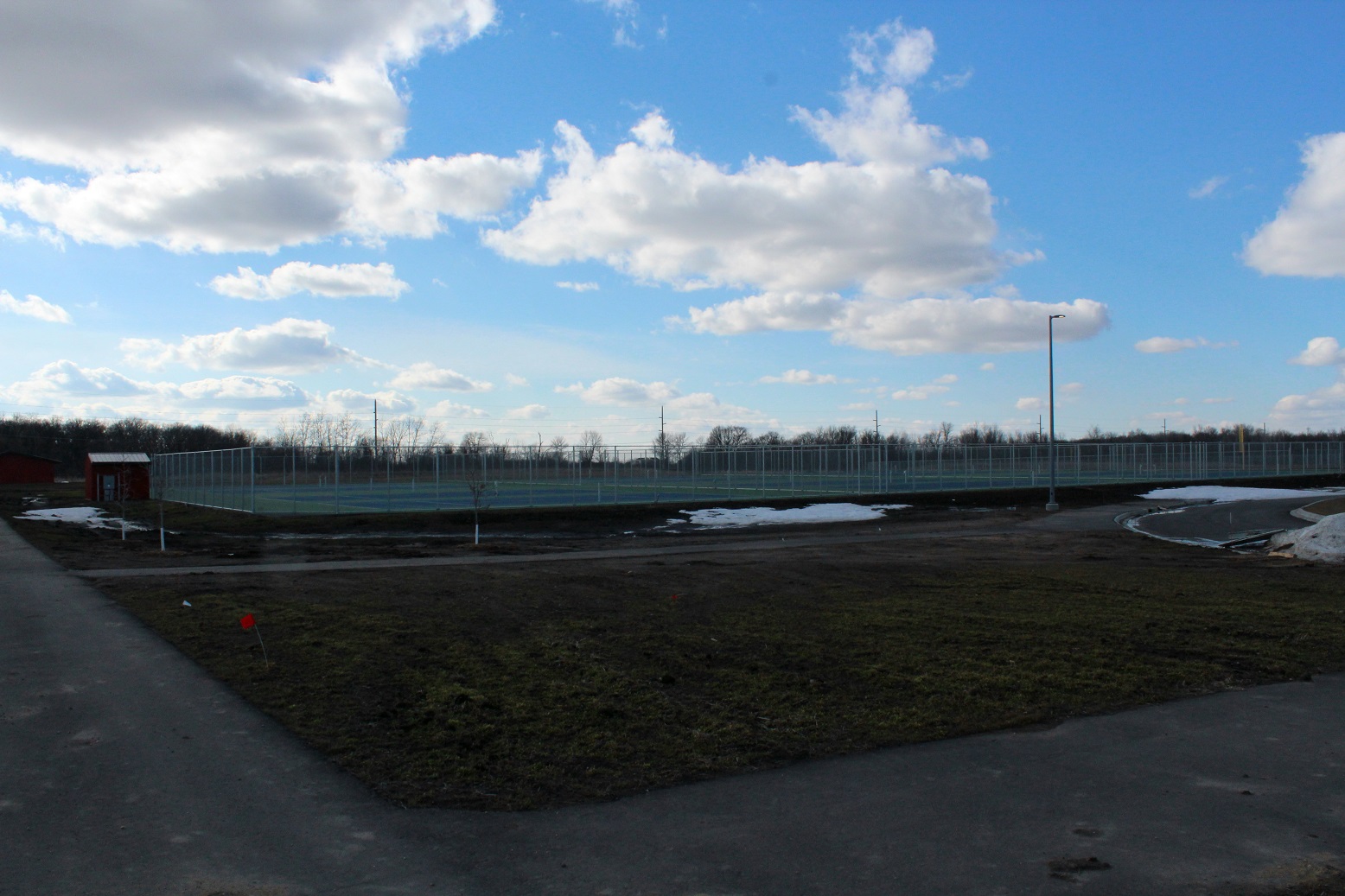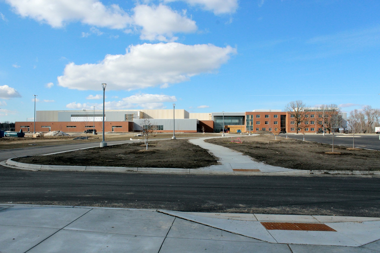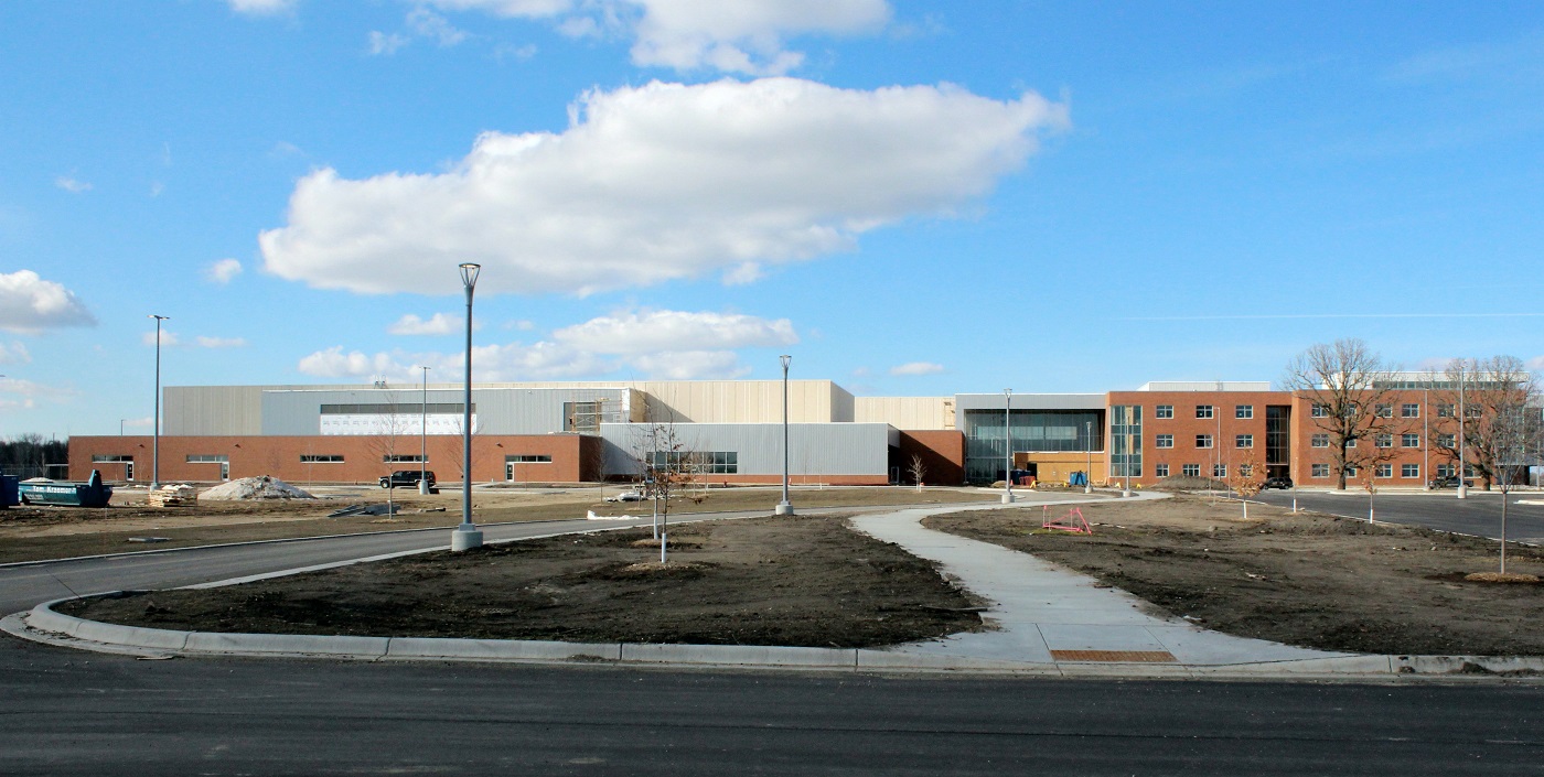 [Then I thought, well maybe they’ve moved the games to the new high school now? Nope, but as long as I was there, I hadn’t included a construction update in the blog for a while. So, this is the state of the new school, as of April 8, 2014, scheduled to open next fall. This is the first time I’d entered the property from the south side road.]