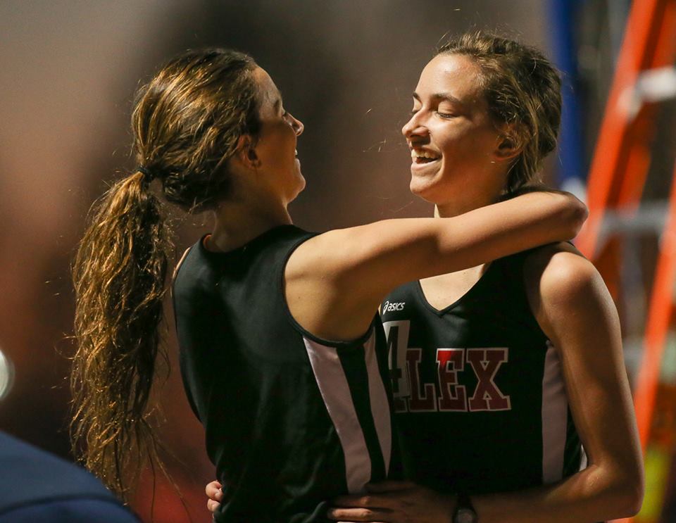 Report from dad Hasz: Great race for Megan & Bethany Saturday night in the 3200-meter race. Megan 1st 10:32 & Bethany 3rd 10:40. [And they’re still just sophomores.]