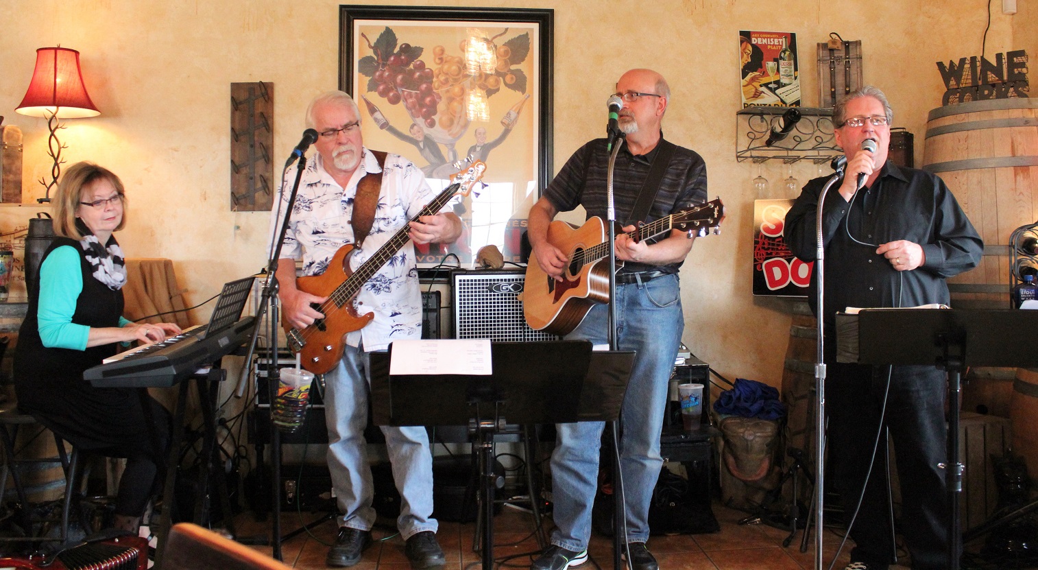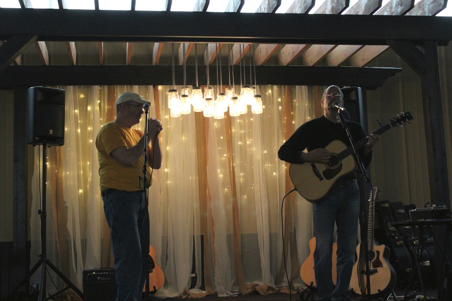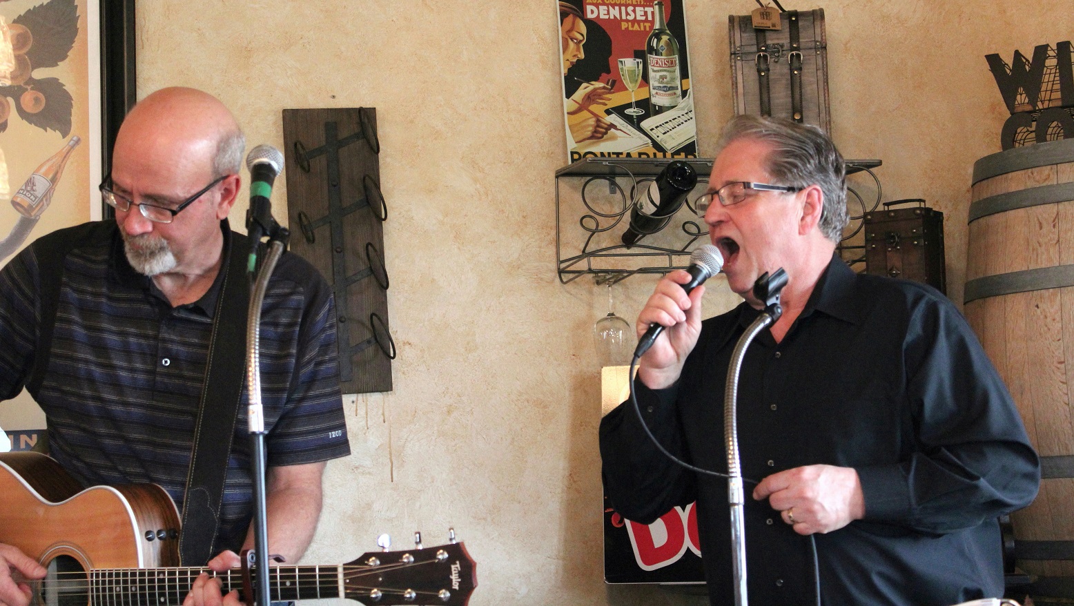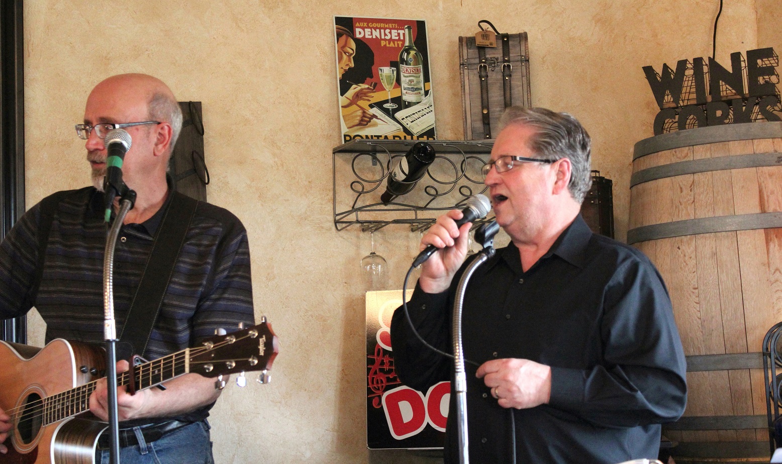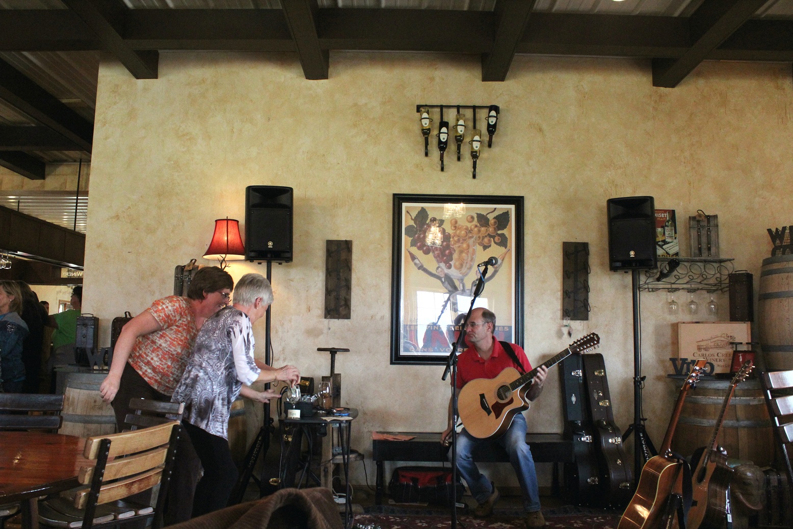 [After the high school “reunion” it was back to the winery for the quarterly party for members of the “club.” Anthony Miltich again performed, this time with the aid of his brother.]