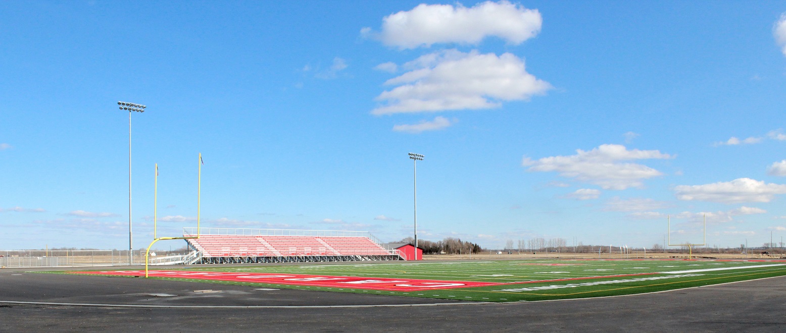 [I found no game at Woodland? Maybe they were playing at the new high school? Nope! Postponed, wet grounds. But as long as I was here, new views from the south.]