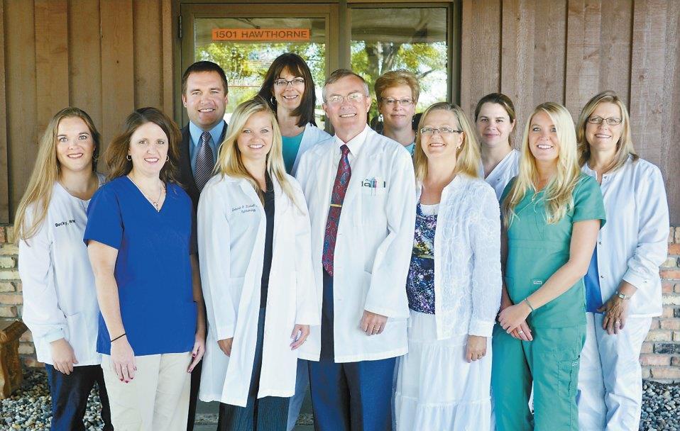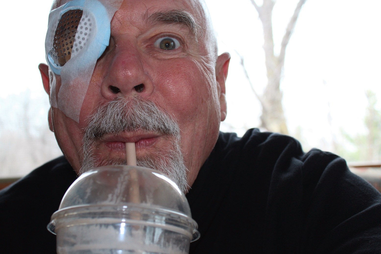 [It was cataract surgery day with Dr. Deb Ristvedt (see if you can pick her out). We did a first-time experimental procedure where a coat hanger is used first to pop out the eyeball, which is then Fed-Exed to a lab in Duluth where the old lens is removed and a new one is inserted, then Fed-Exed back to Alex where it is popped back in and riveted in place through the right temple and the top of the head. I need not see the Doctor again for two years when it will be time to replace the rusty rivets. (But seriously folks, all went well and I anticipate being back playing the piano in no time at all! Many thanks to Dr. Ristvedt and everyone at the clinic who endured my aging antics. Oh, and I got a DQ malt for being a good boy.)]