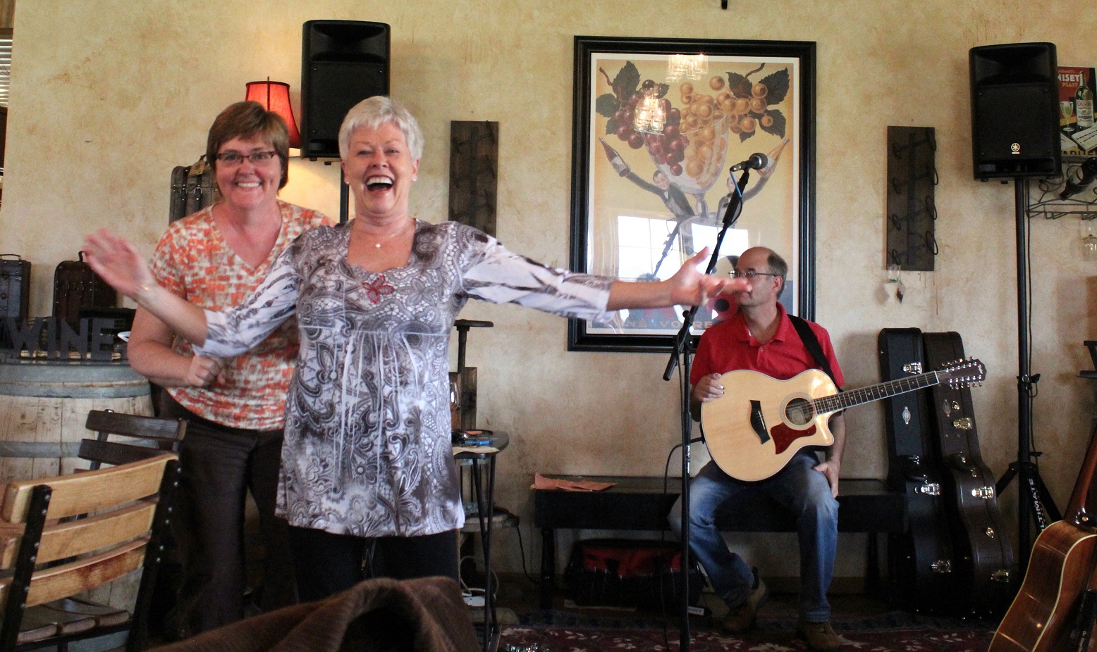 [Do you know these famous Grand Rapids-ites? After years of trying, I was finally able to create a reunion at the winery. Anthony performed at the winery again on Sunday, in the “Big Room;” I’m not sure what Martha did that day?]