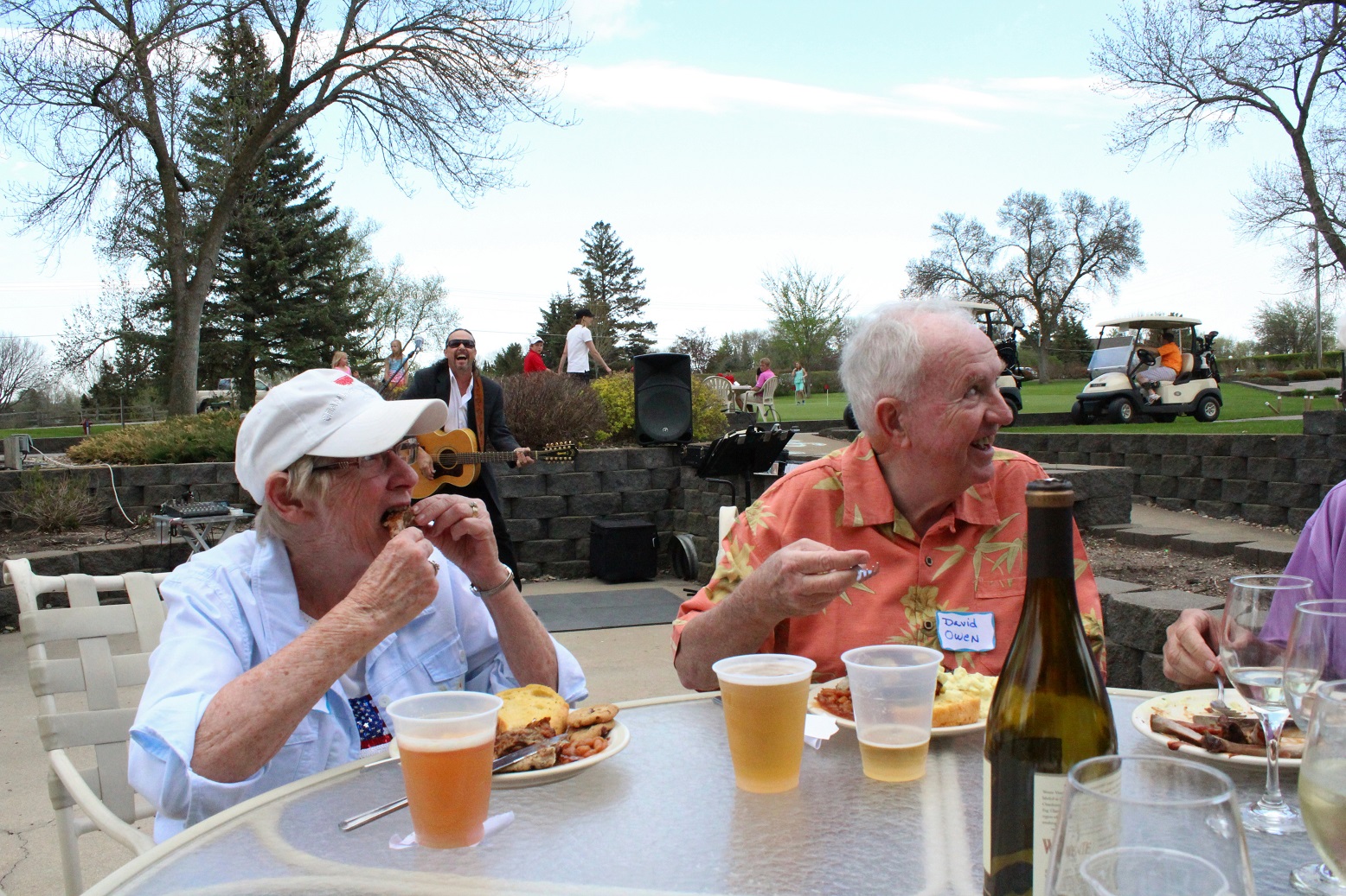[Friday night was a Let’s Celebrate Golf Season shindig at the golf club with chicken, ribs, and fixin’s, with Mary and Crazy Dave fresh from Sarasota . . . and with BAT. BAT sang the following for both of them for their recent birthdays. Mary said, “Pass the ribs, please;” Crazy said, “I only have a beer and a half in front of me?”]