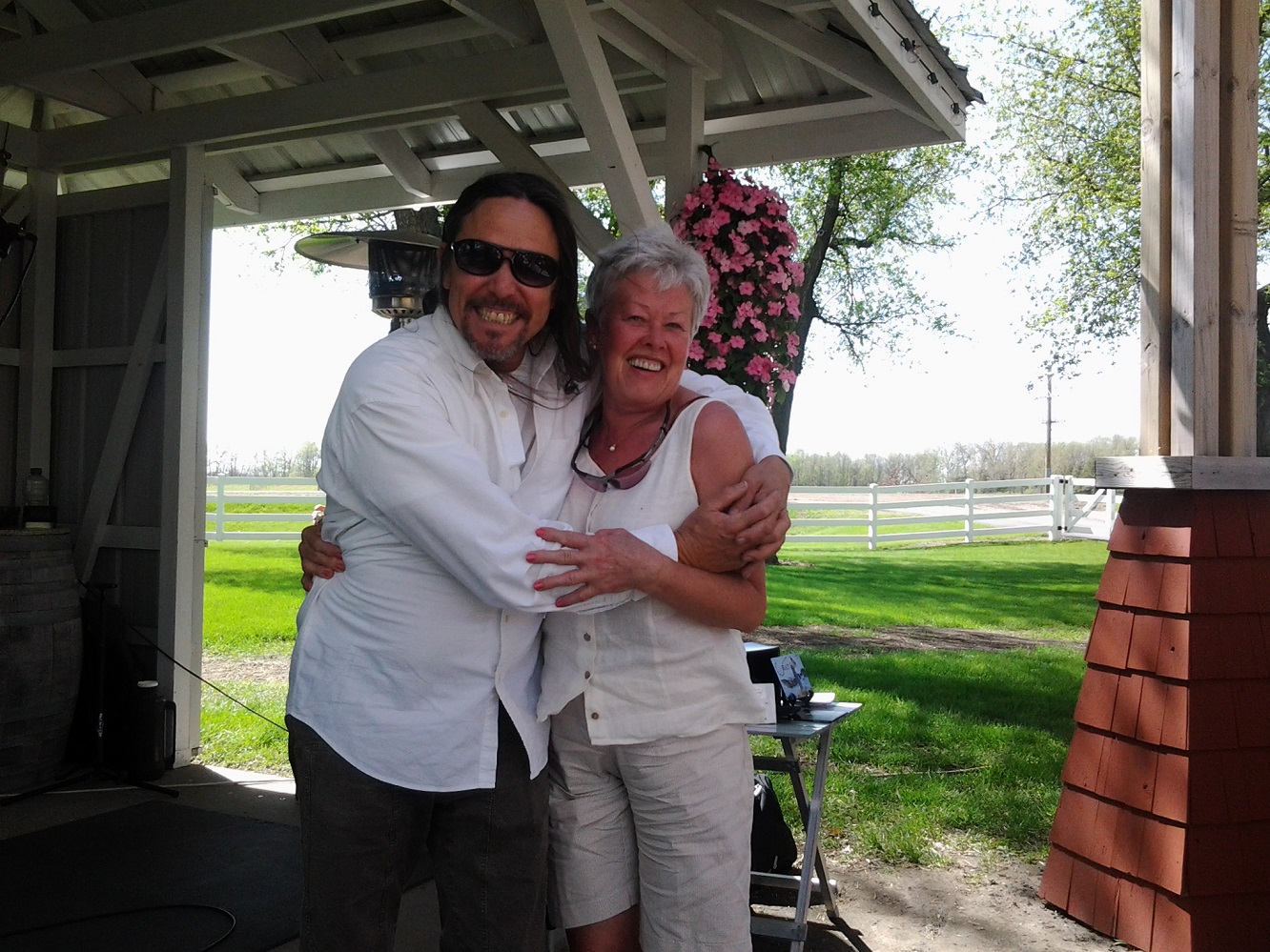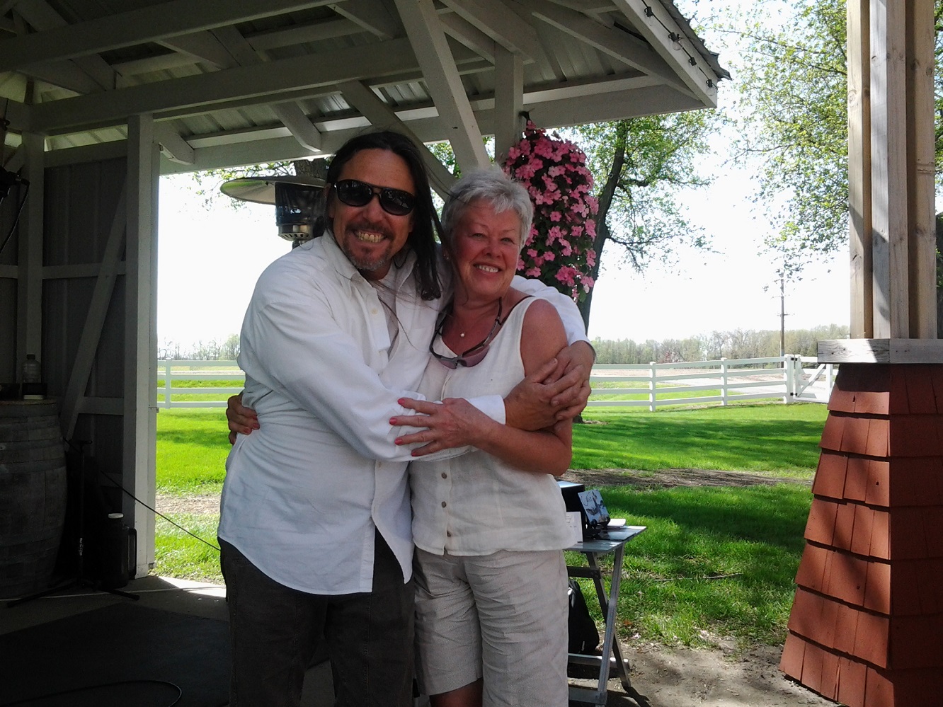 [Sunday, the fourth and final day, again at the winery. Brenda was already hard at work . . . we ordered a Mediterranean pizza from Alia (yeah, a former Alex hockey player). It was delicious!]