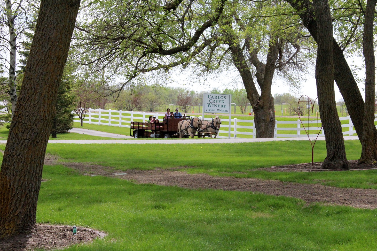 [Saturday afternoon it was off to the winery for BAT’s next venue. The Norwegian horses were leading tour groups around the property.]
