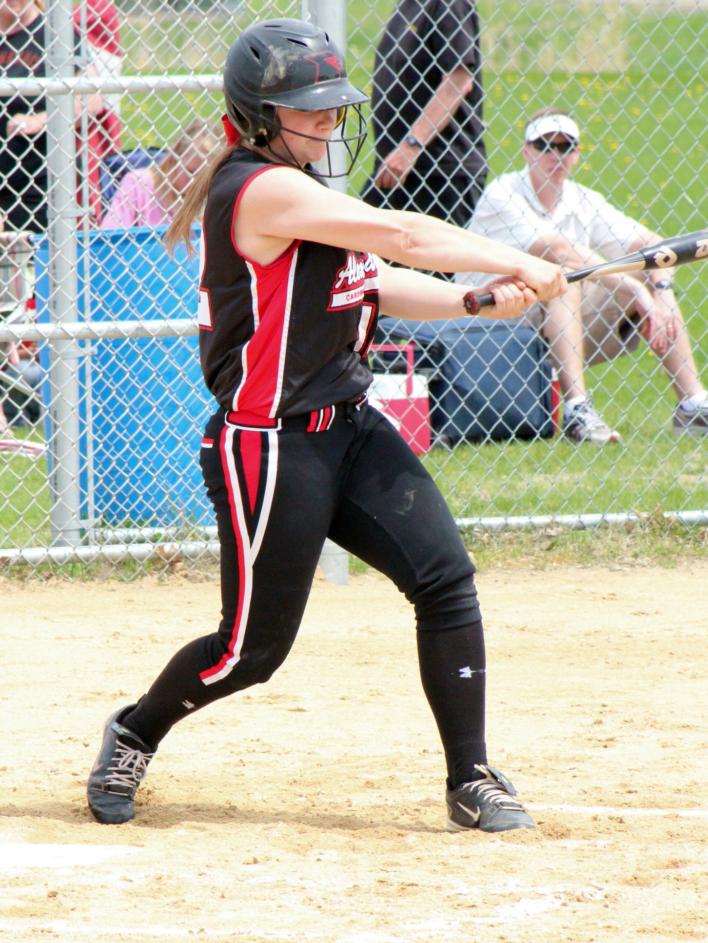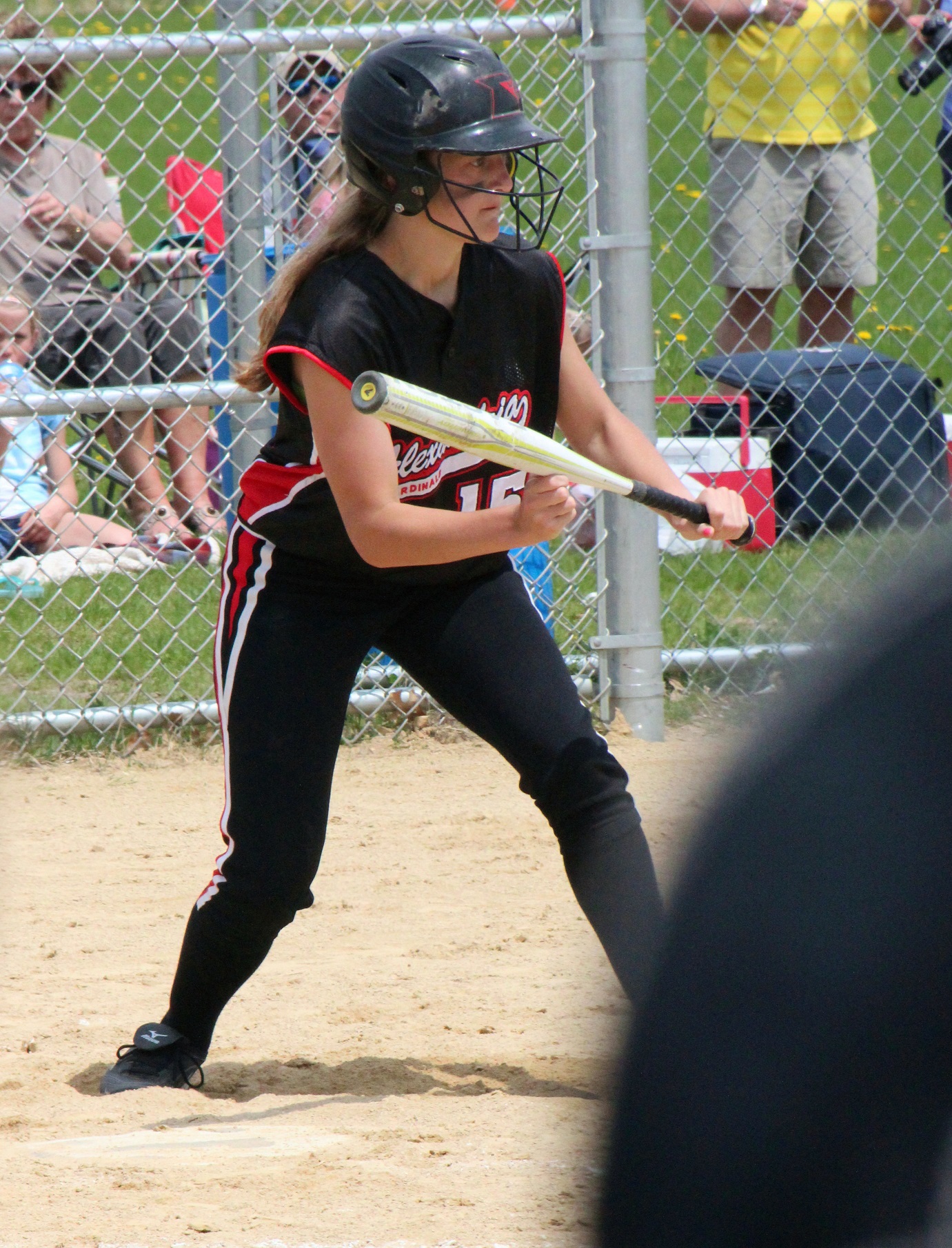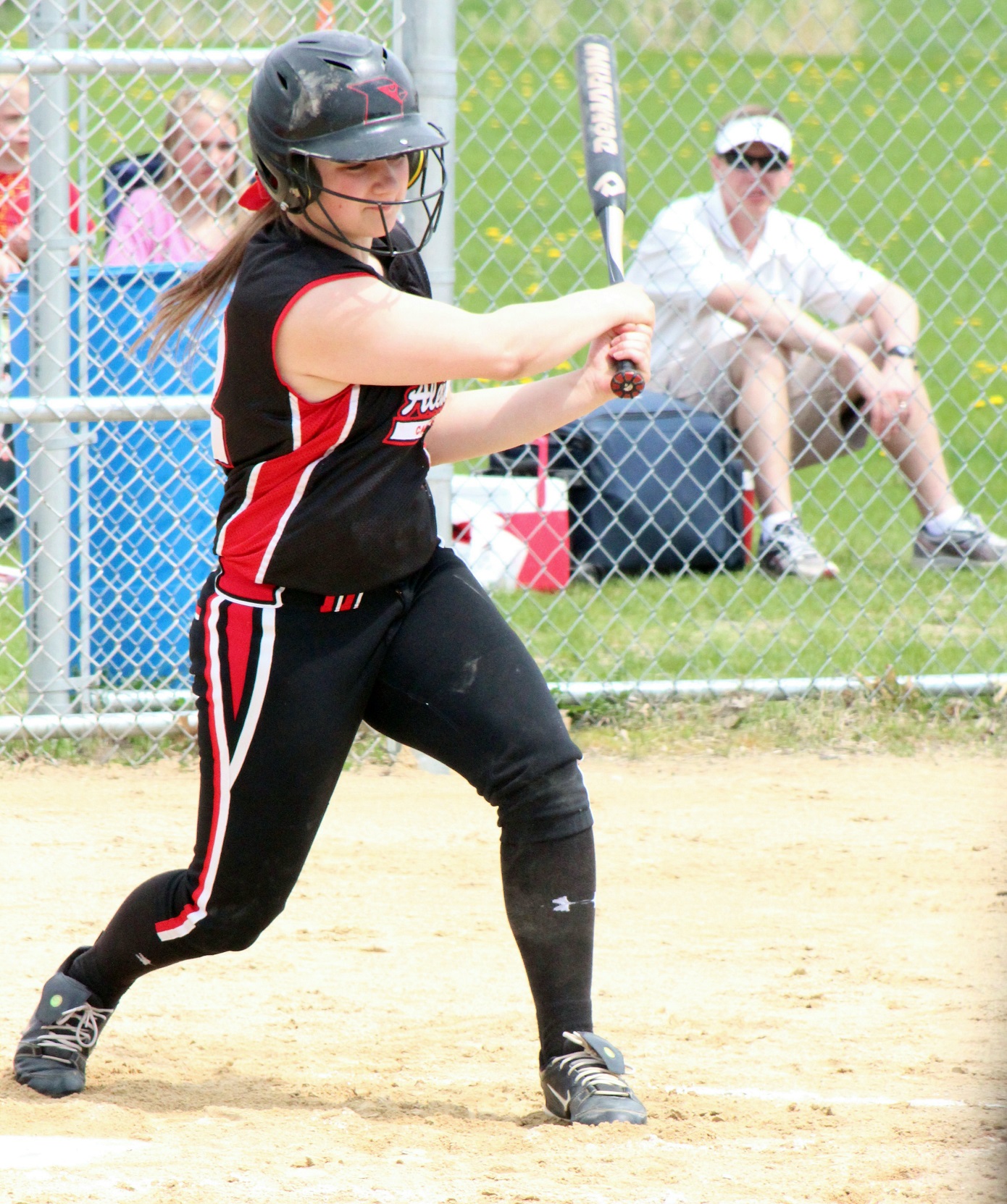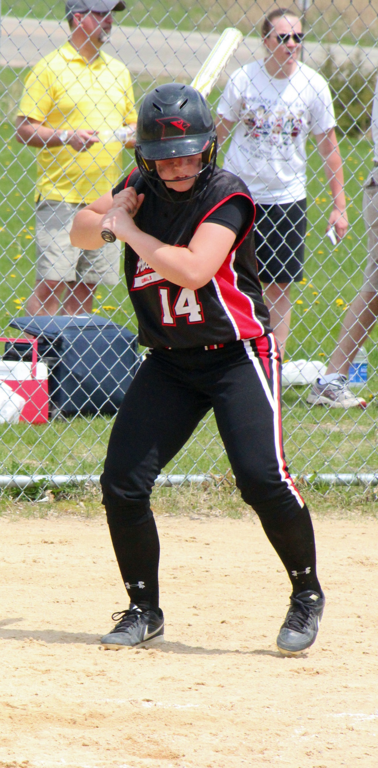 [Batting 3rd and playing 3rd base (are you noticing a symmetry here?), senior Sarah Bruzek (3). For fun also plays soccer and basketball as varsity sports.]