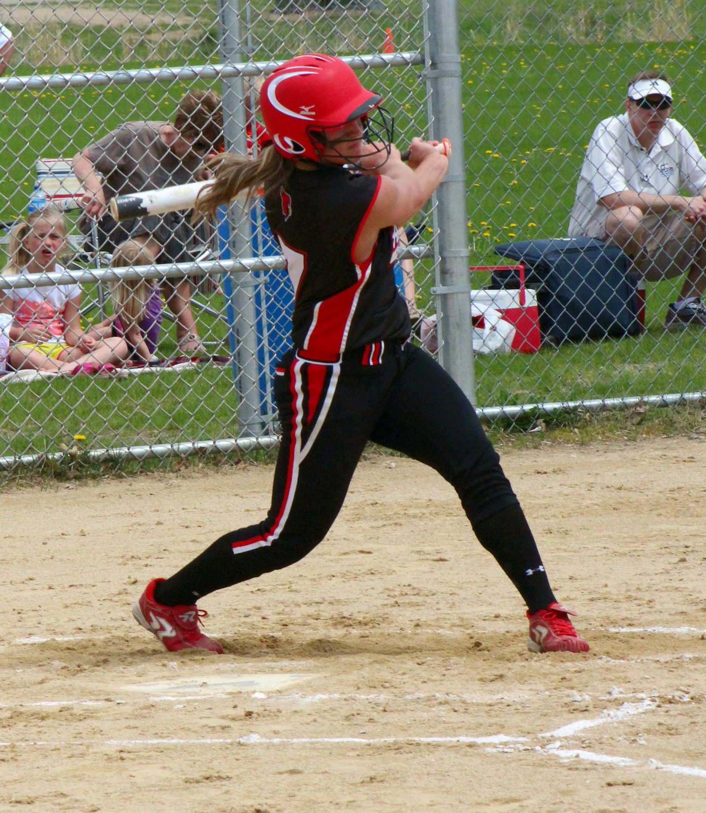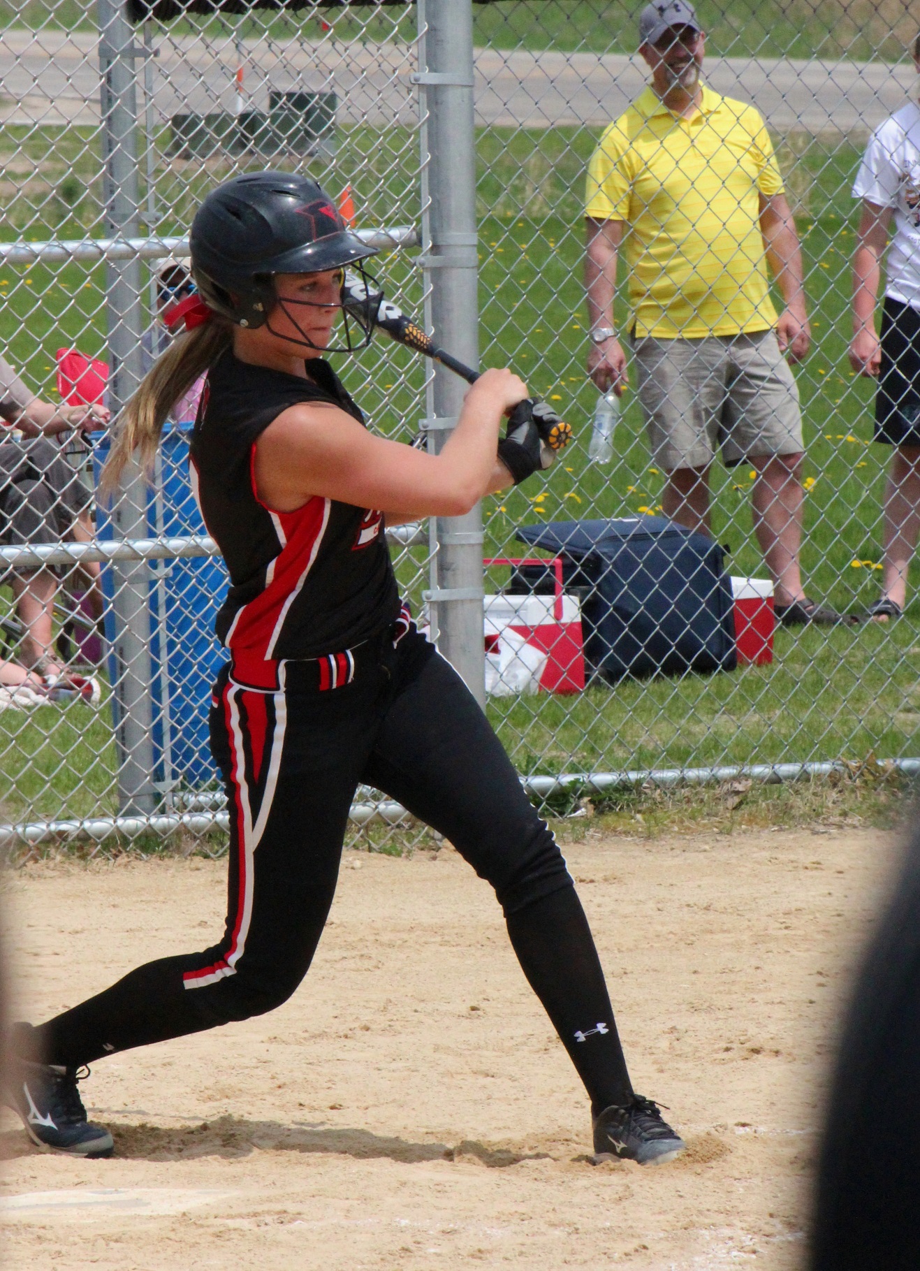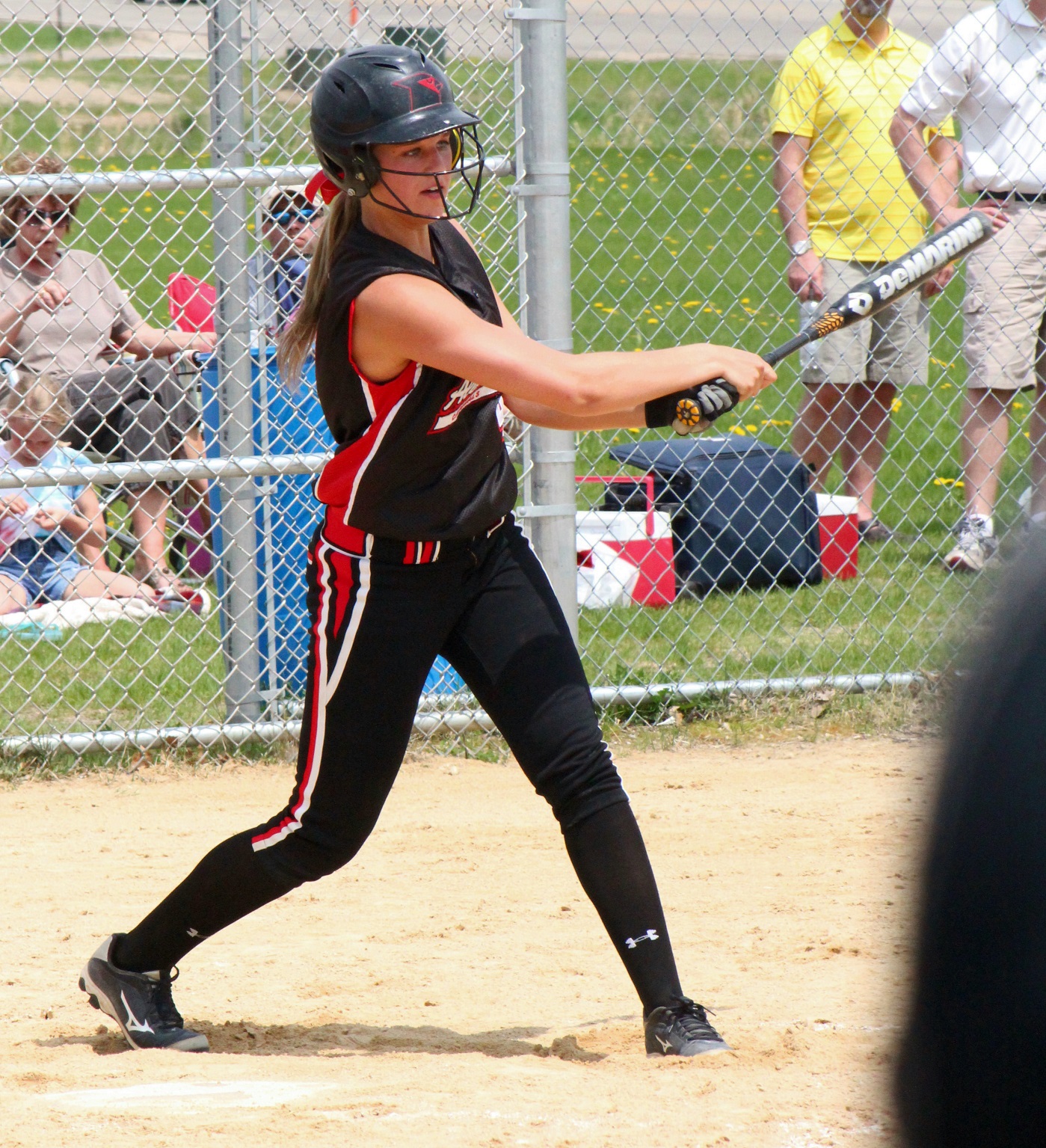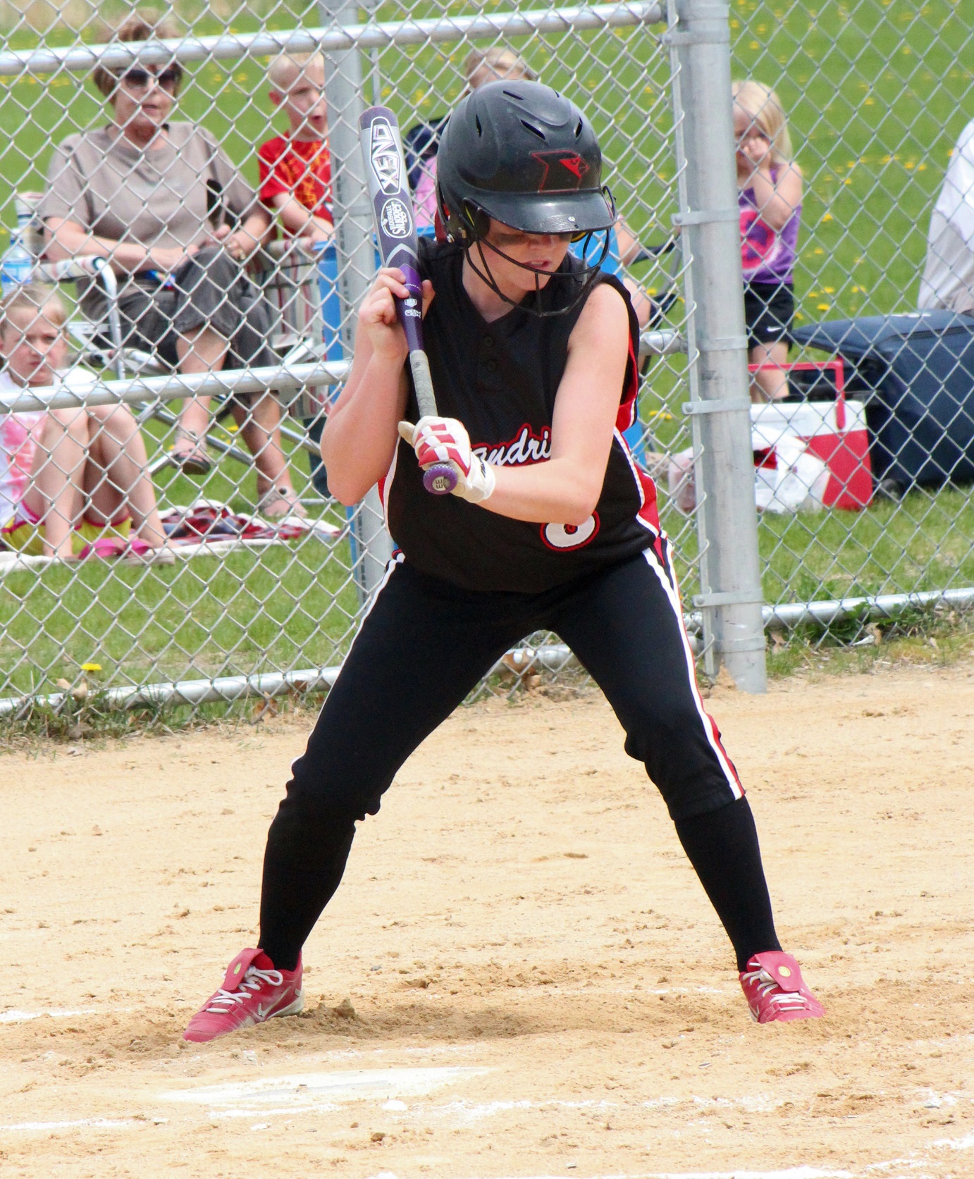 [Batting 3rd and playing 3rd base (are you noticing a symmetry here?), senior Sarah Bruzek (3). For fun also plays soccer and basketball as varsity sports.]