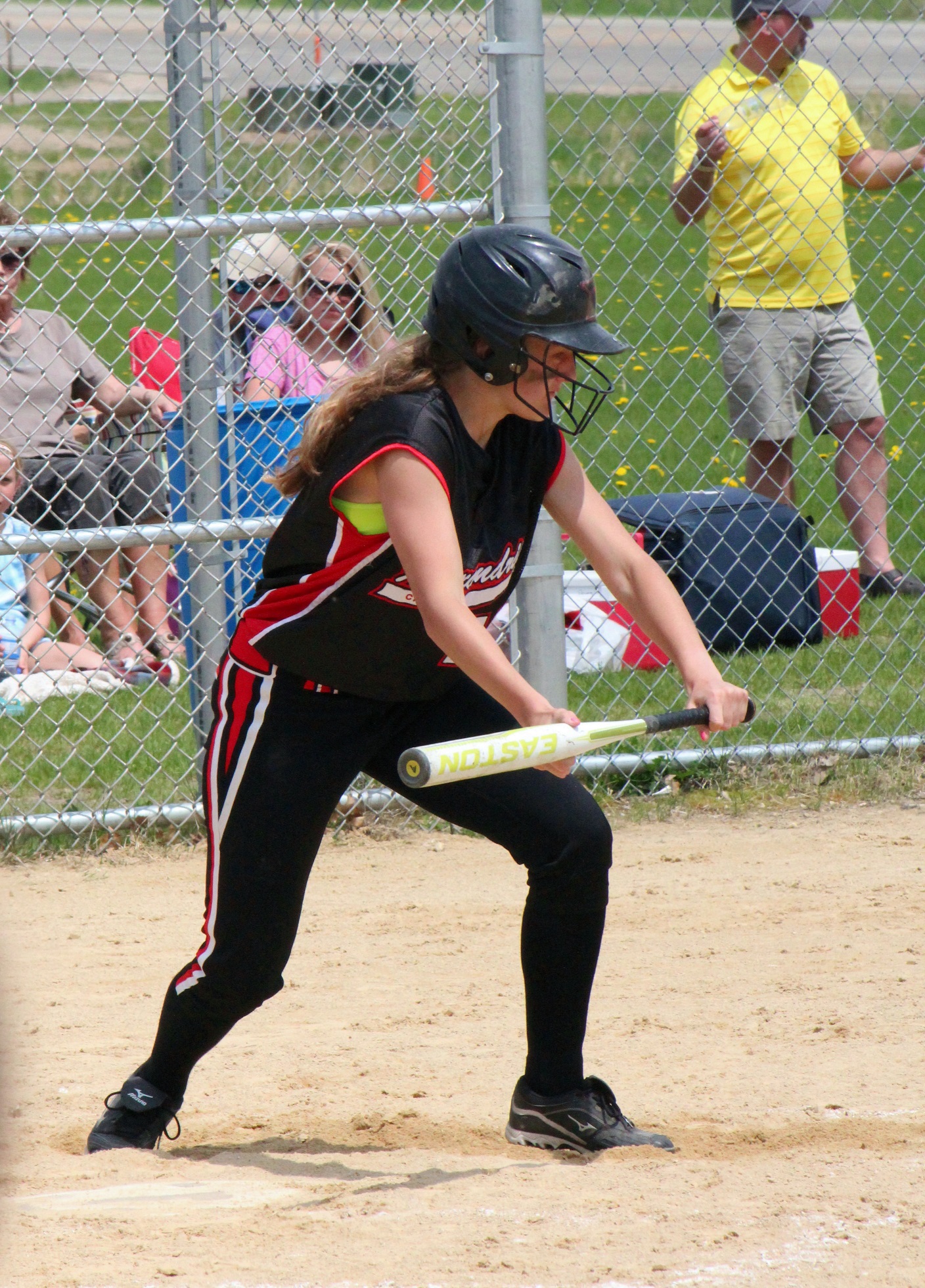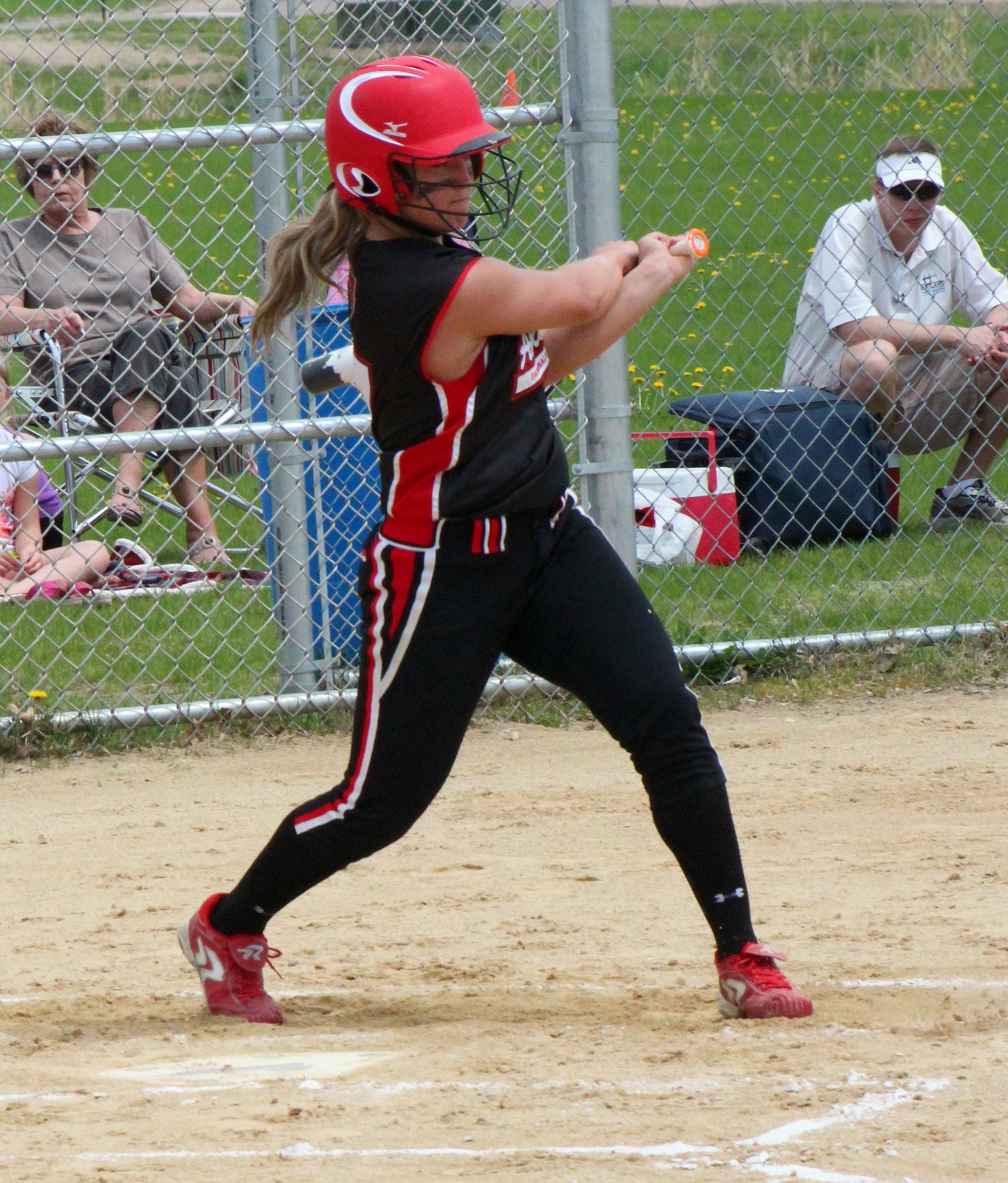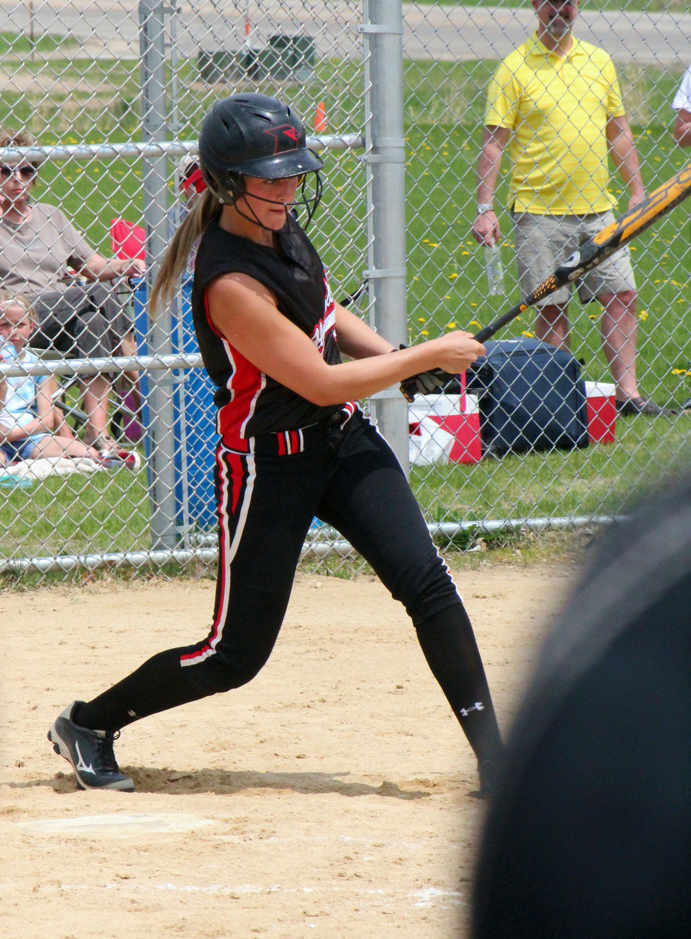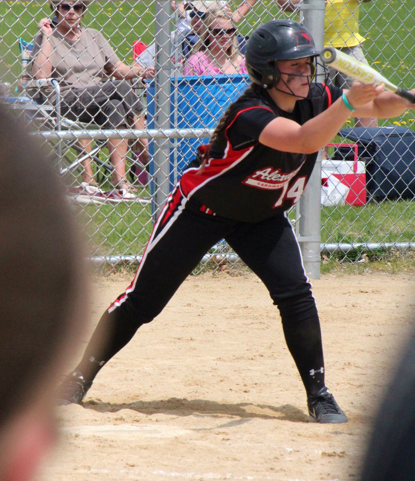 [Batting 3rd and playing 3rd base (are you noticing a symmetry here?), senior Sarah Bruzek (3). For fun also plays soccer and basketball as varsity sports.]