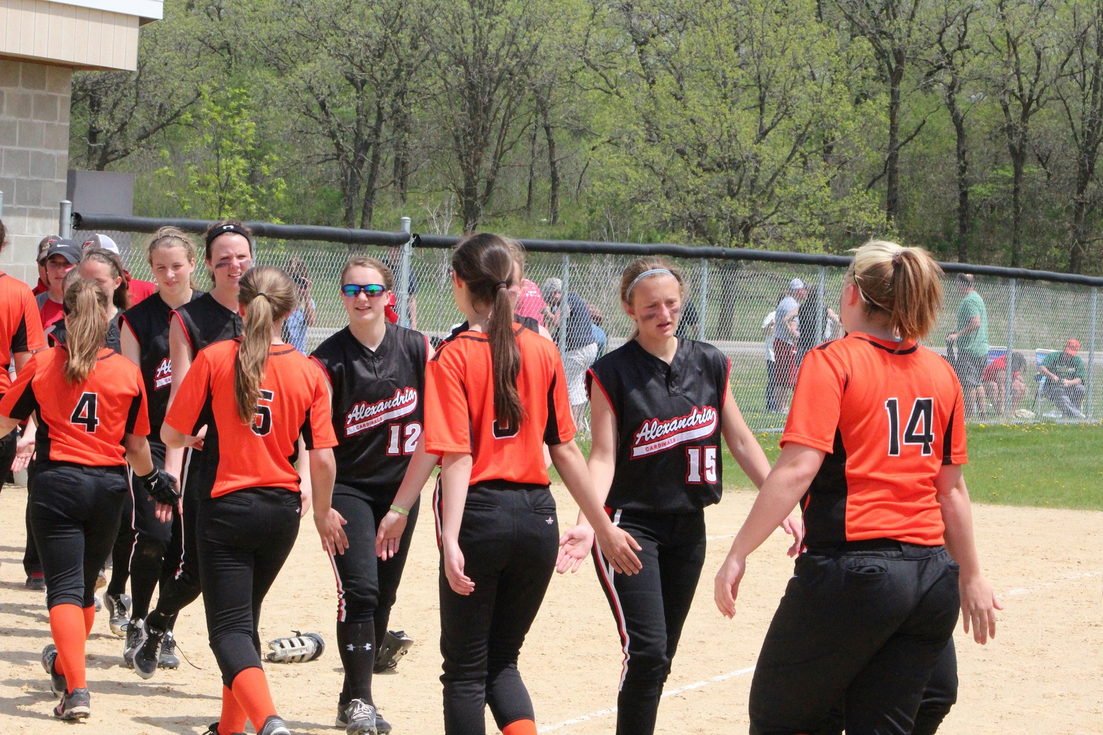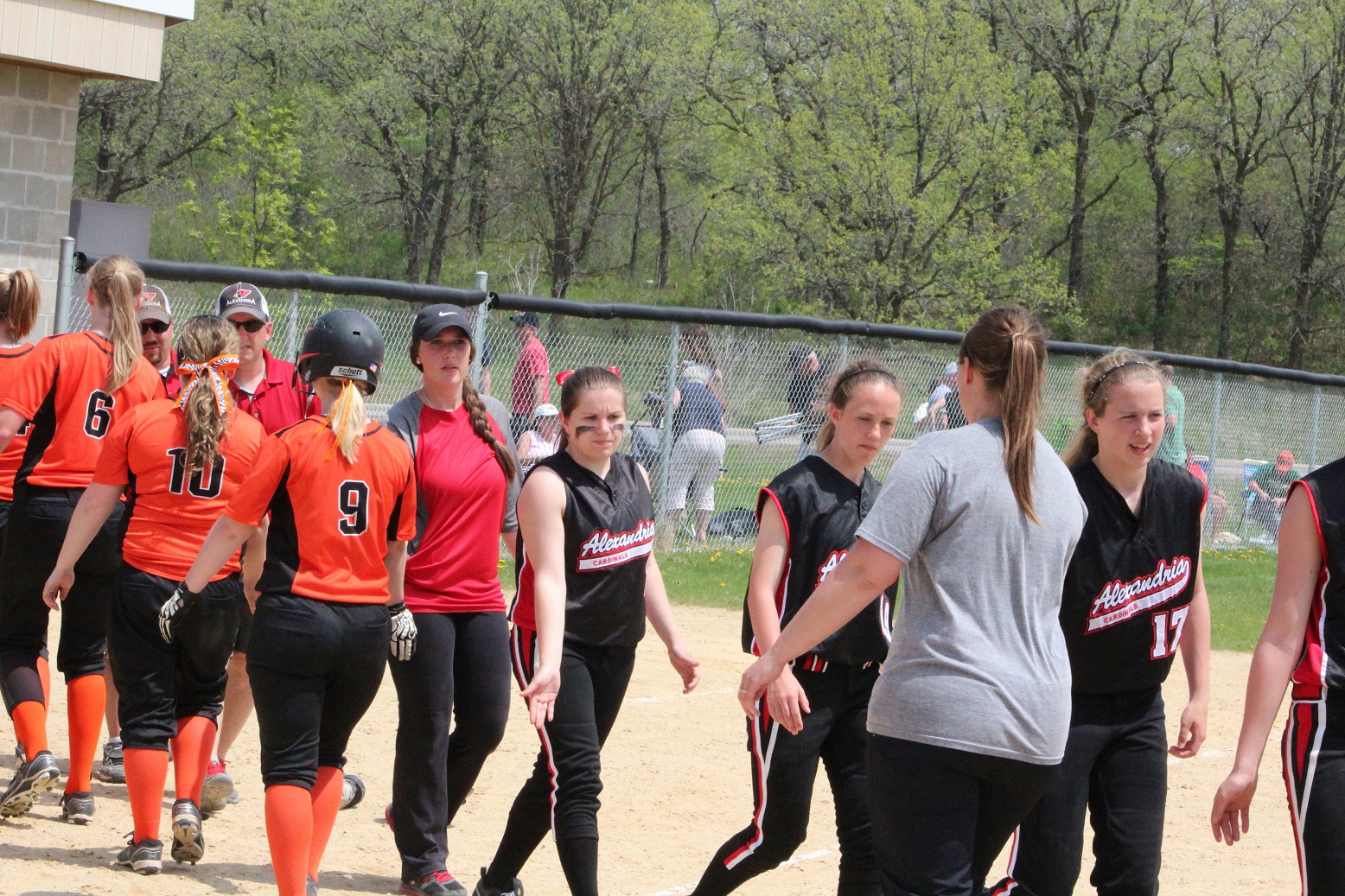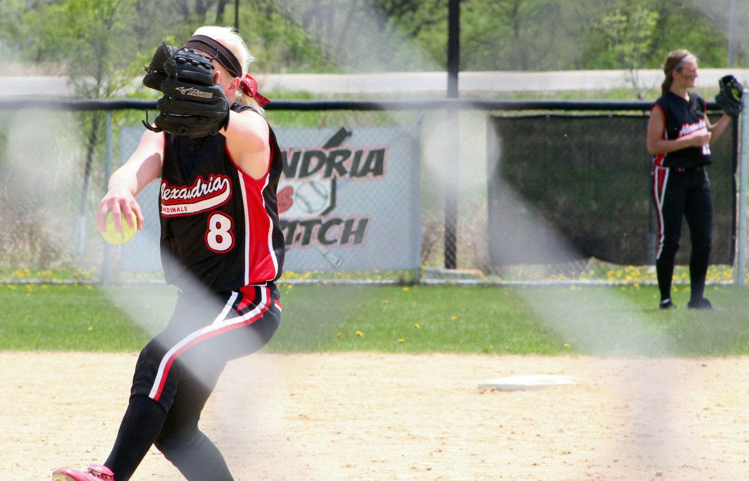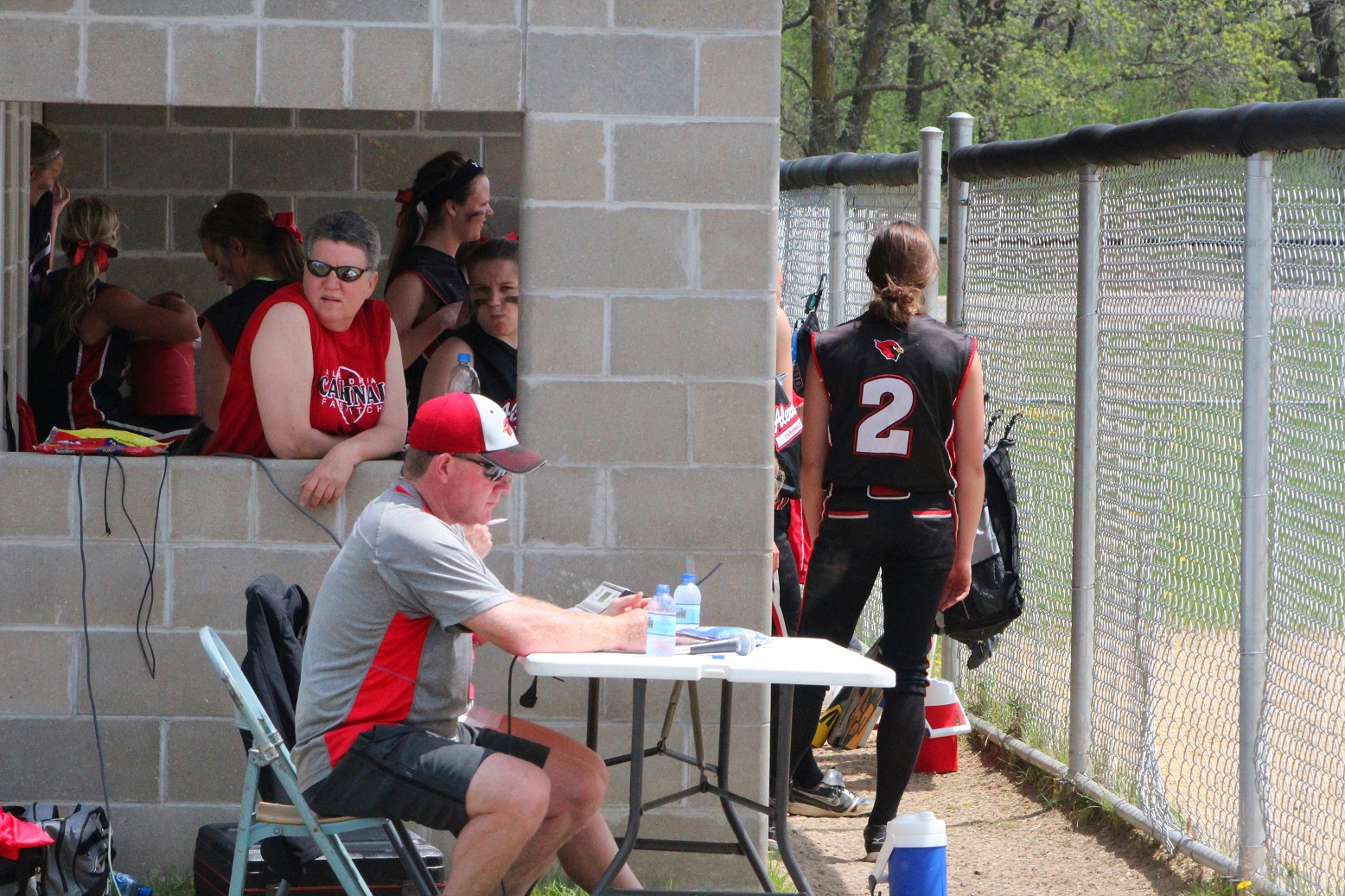 The super and I did what all red-blooded Americans do on Memorial Day – we went to a section tournament softball game!! We almost drowned in a pool of our own perspiration – well, me in sweat, the super in glisten – and likely have 3rd-degree sunburns. The noon-time start game was played in hot, humid, sunny weather – something we aren’t quite used to around these here parts! Rain clouds threatened in all directions, but didn’t get here until as I do my report. Our Cards prevailed over Moorhead 9 – 1 as senior pitcher Taylor Ellingson (7) had a great game, both as a pitcher and as a hitter from the lead-off spot. She is just a terrific all-around athlete who is both strong and fast . . . I know she had as a minimum a walk, a triple, and a 3-run home (in the bottom of the 4th that put the game away). She is fast enough that I thought the triple would be a double but she never slowed, and the same with the homer that was a line drive down the leftfield line. I don’t think she ever had any intention to stop running until she got to home plate – I was so dumbfounded I didn’t react fast enough with the camera. Oh, and there was a representative there from Le Homme Dieu View Townhomes, but it wasn’t “Weakie-d”-out. Sitting behind the super in an unfortunately Spud-colored shirt. [Yes, the insert is the softball playing me back in the day when I was almost as strong and almost as fast as Taylor.]