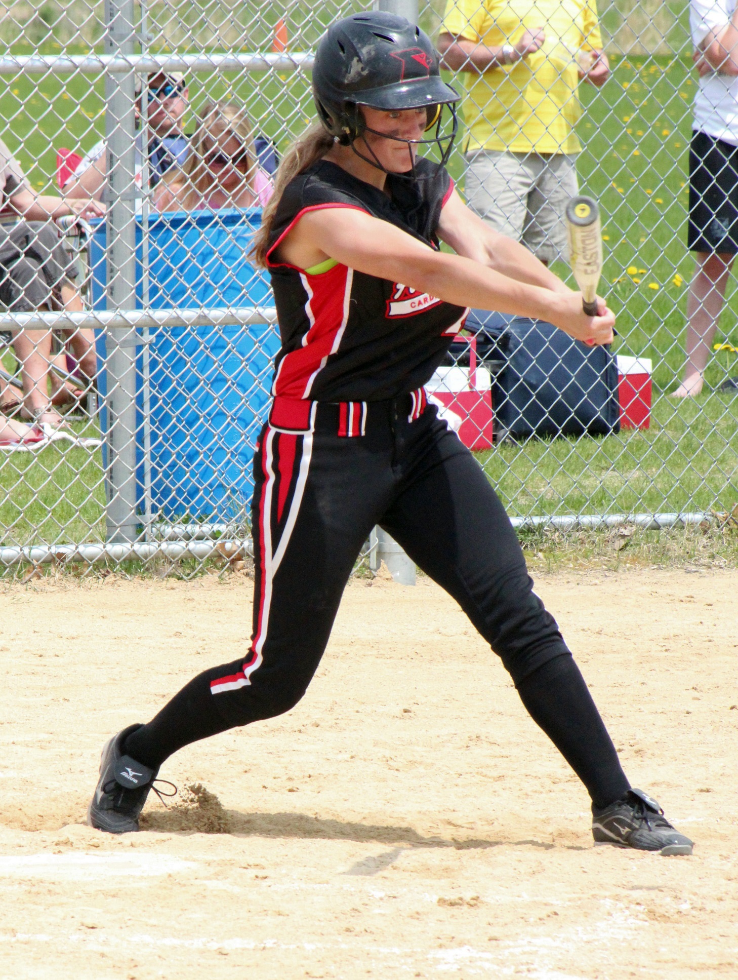 [Batting 4th (i.e., clean-up) and playing left field, junior Carly Dropik (6). Unlike anyone the Twins can put in this spot in the batting order, Carly is a power hitter.]