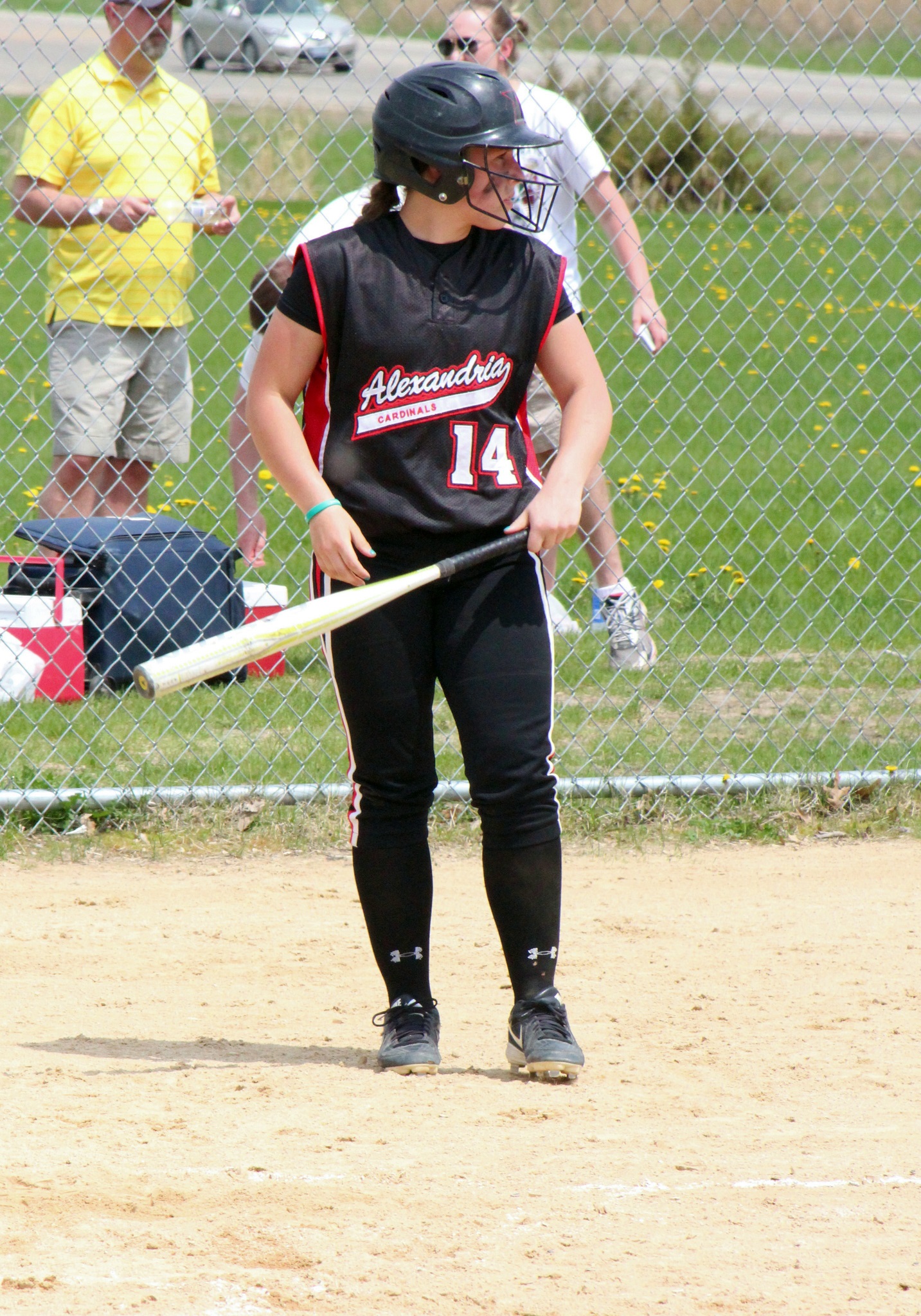[Batting 6th, senior 1st baseman, Emily (4).]