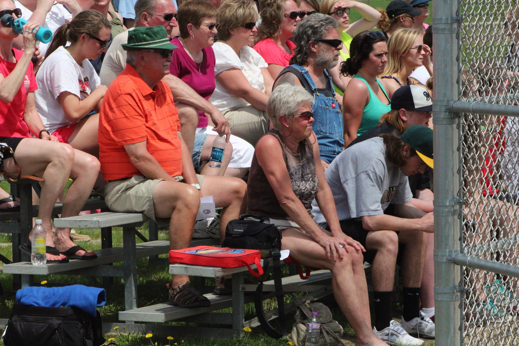 [The supervisor and Steve Waller, sitting behind her, are flush with excitement! (Later addition: As pointed out by her mom, softball alum Mikayla Lucas was at the game two people to the left of the supervisor in the green top – and we didn’t even know she was there.) ]