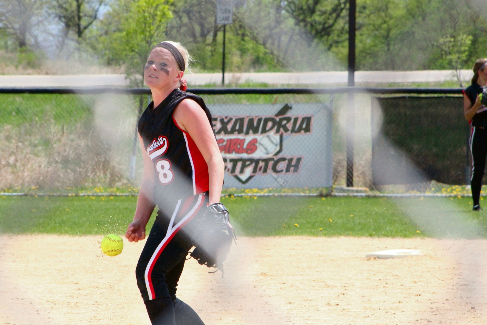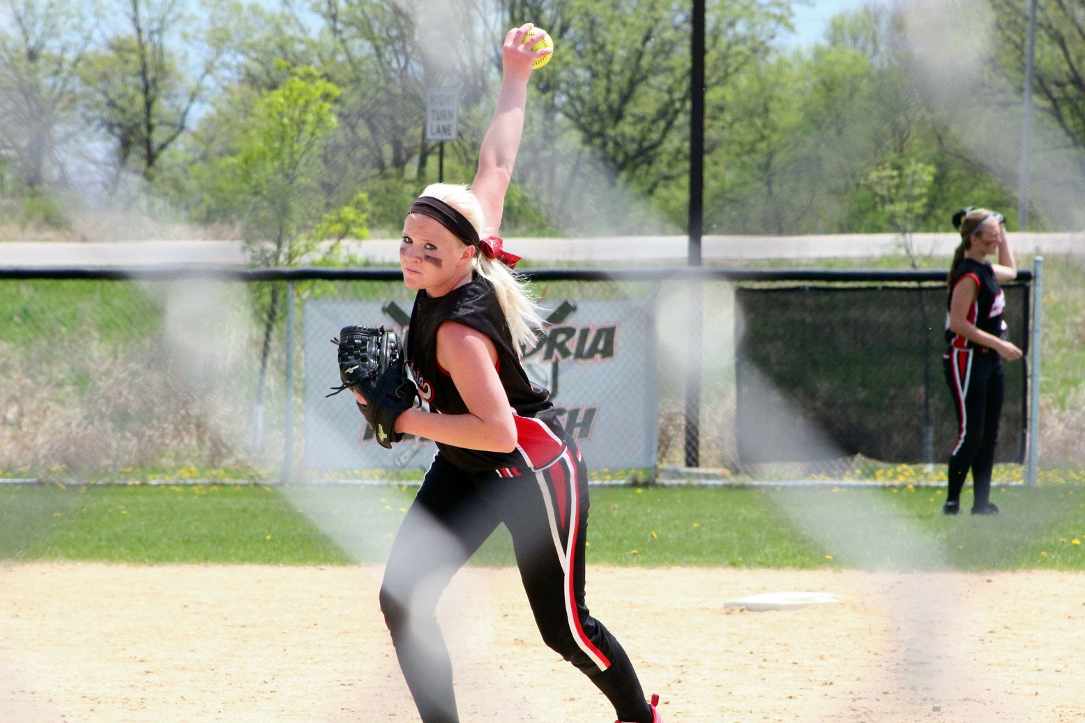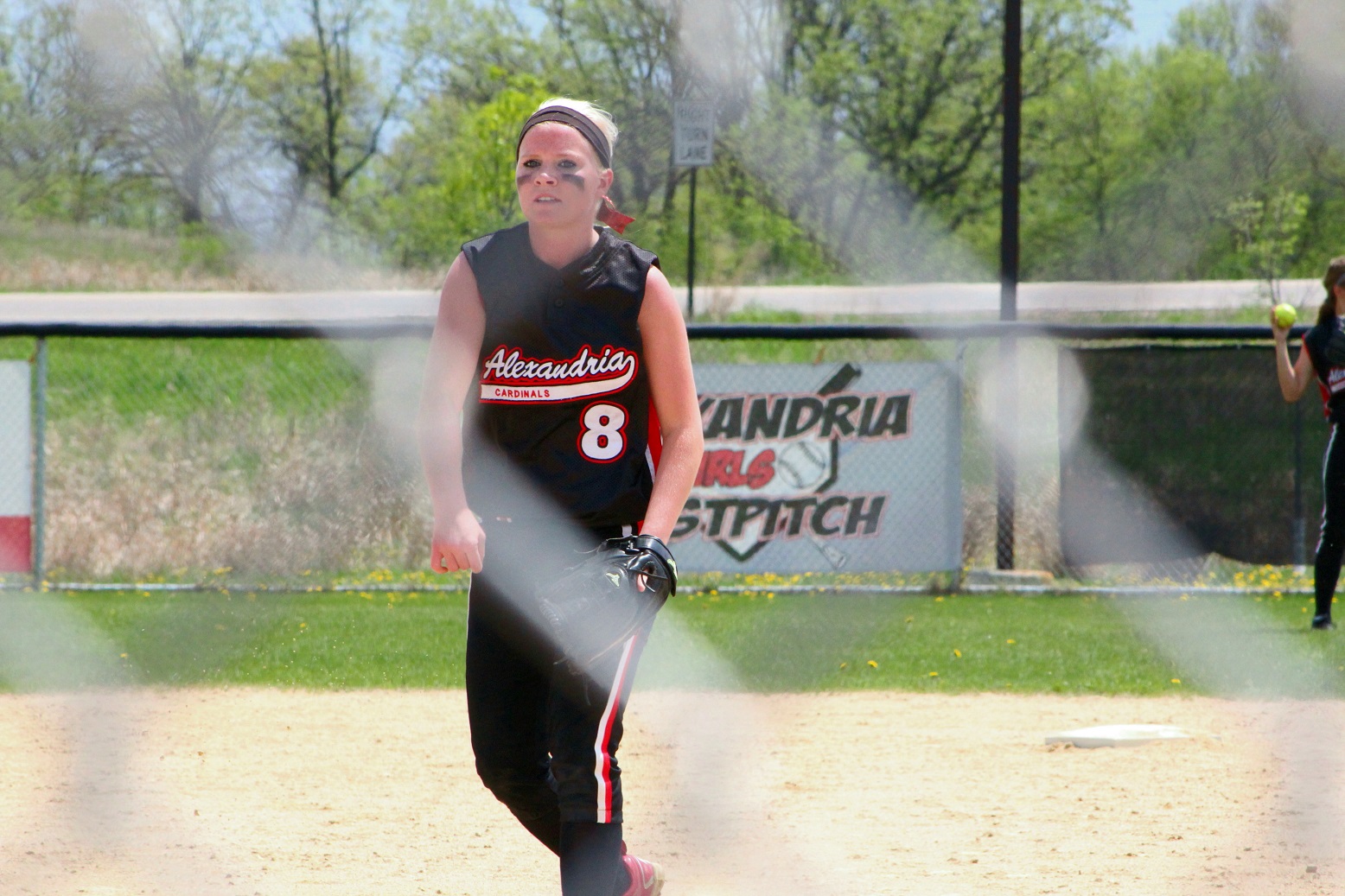 [Sophomore rightfielder Amy Jost (15), also our hockey goalie.]