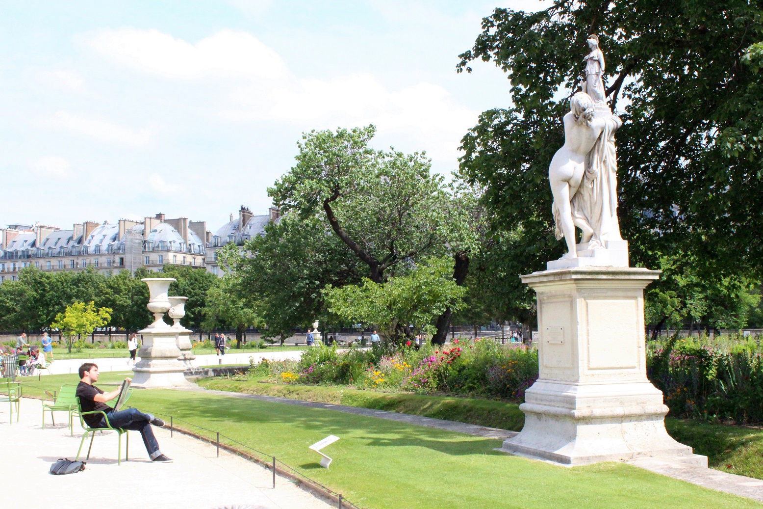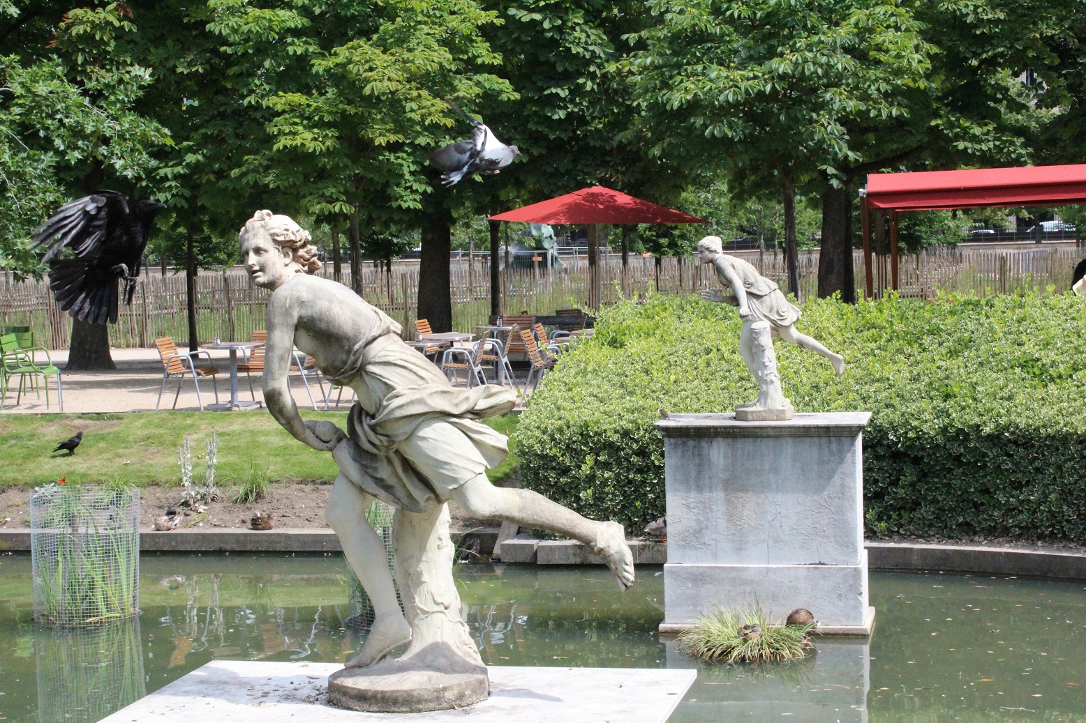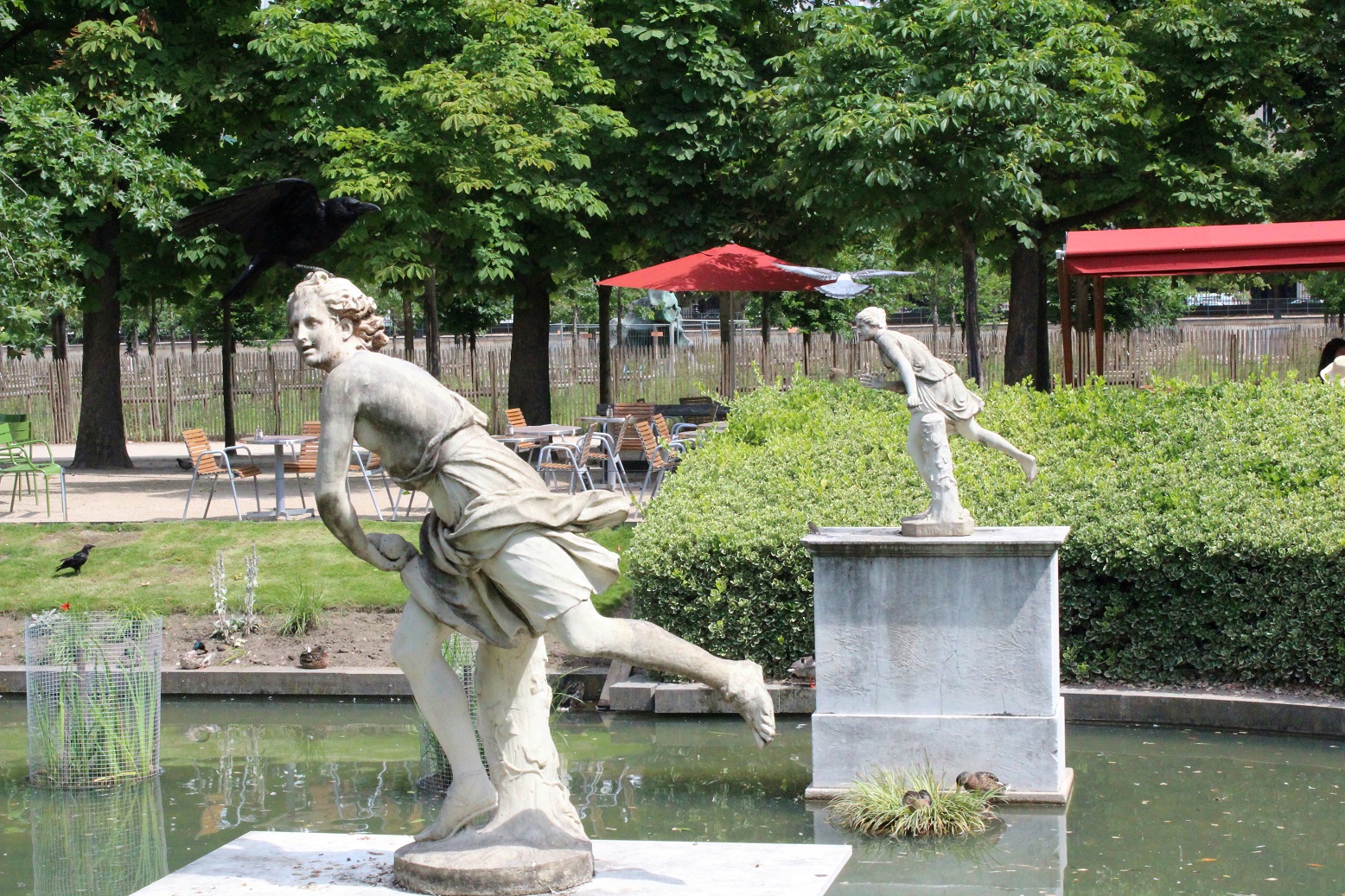 [Leaving the Louvre and entering the Tuileries Gardens where a photographer was shooting crows?]