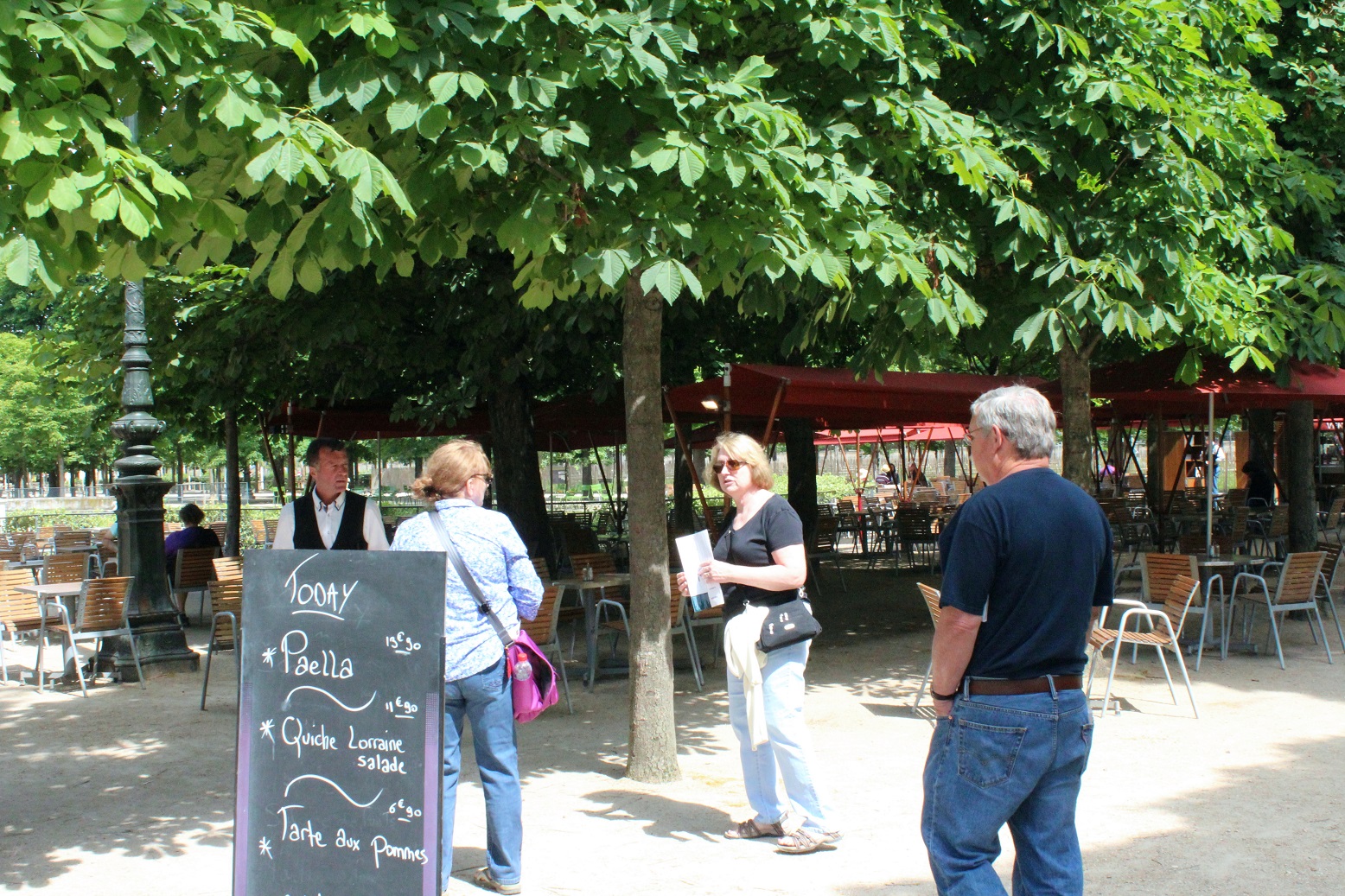 [Oh, oh, an outdoor café in the gardens has been spotted by our alert forward scouts.]