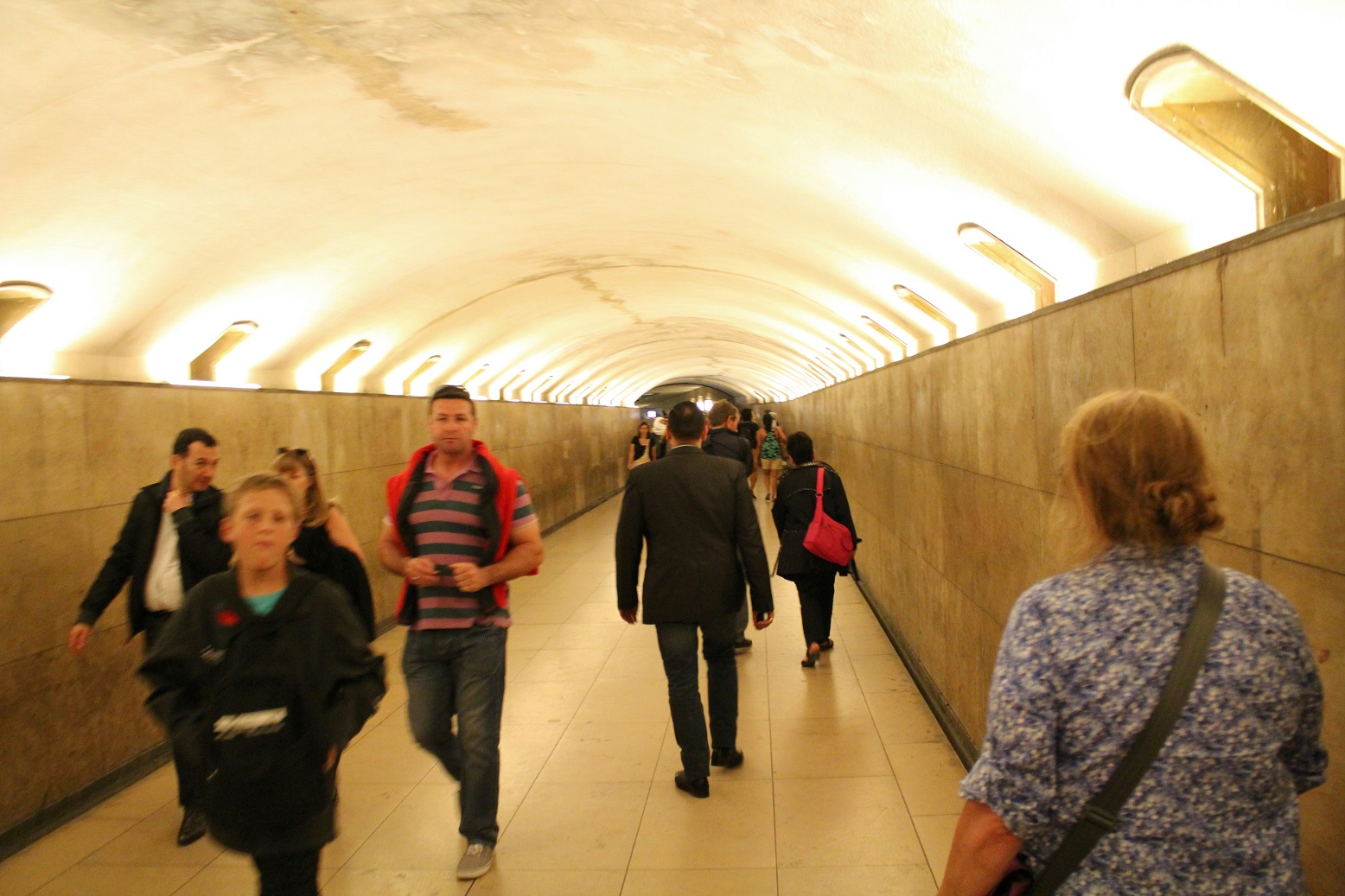 [The Arc is in a traffic circle, about 400 lanes wide. It would be impossible to cross above ground . . . so they built a tunnel.]