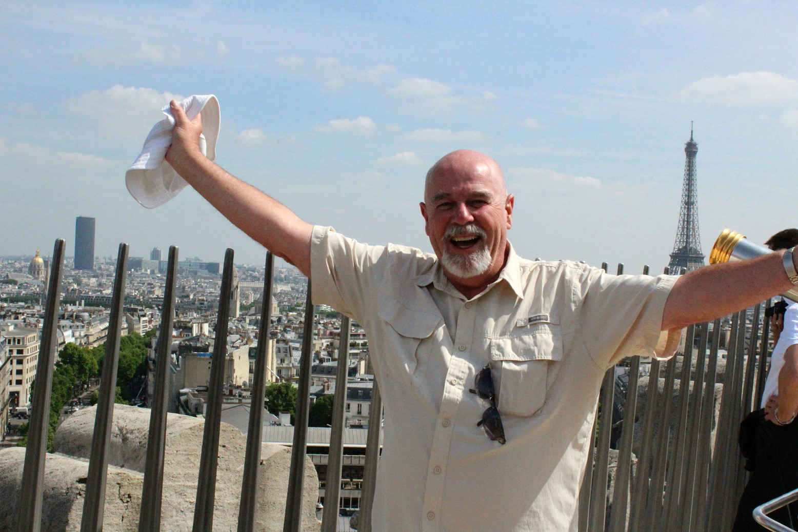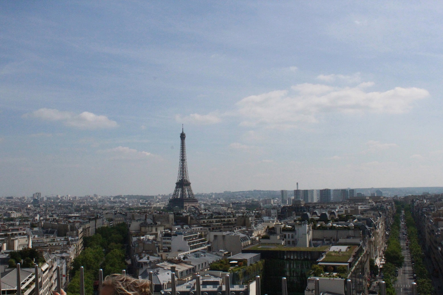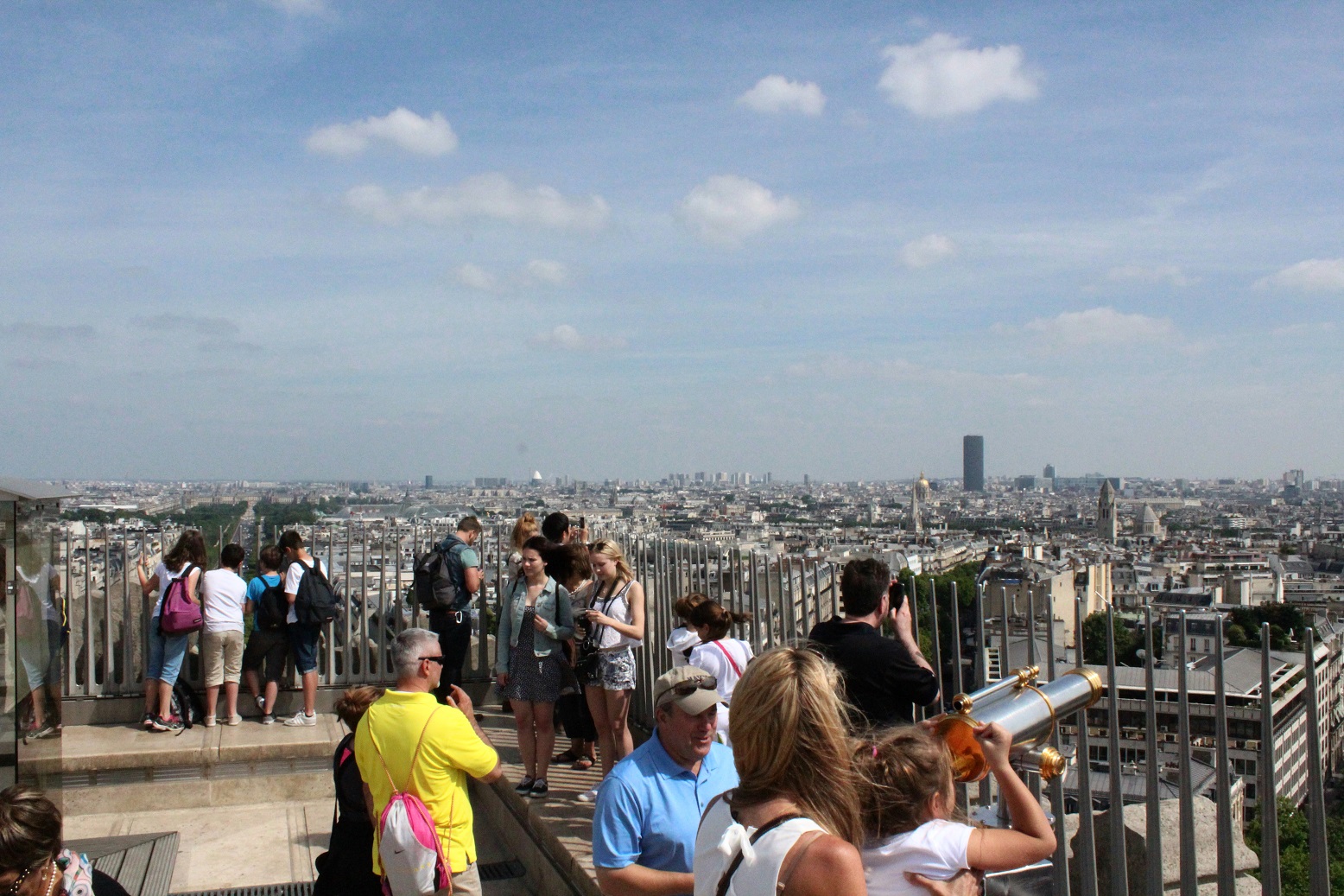 [I was surprised that none of us wanted to go the top of the Tower – the lines I suppose. But Bill also thought the view from the top of the Arc would be even better. Well, for one thing, you get a bird’s-eye view of the Tower. 😉 ]
