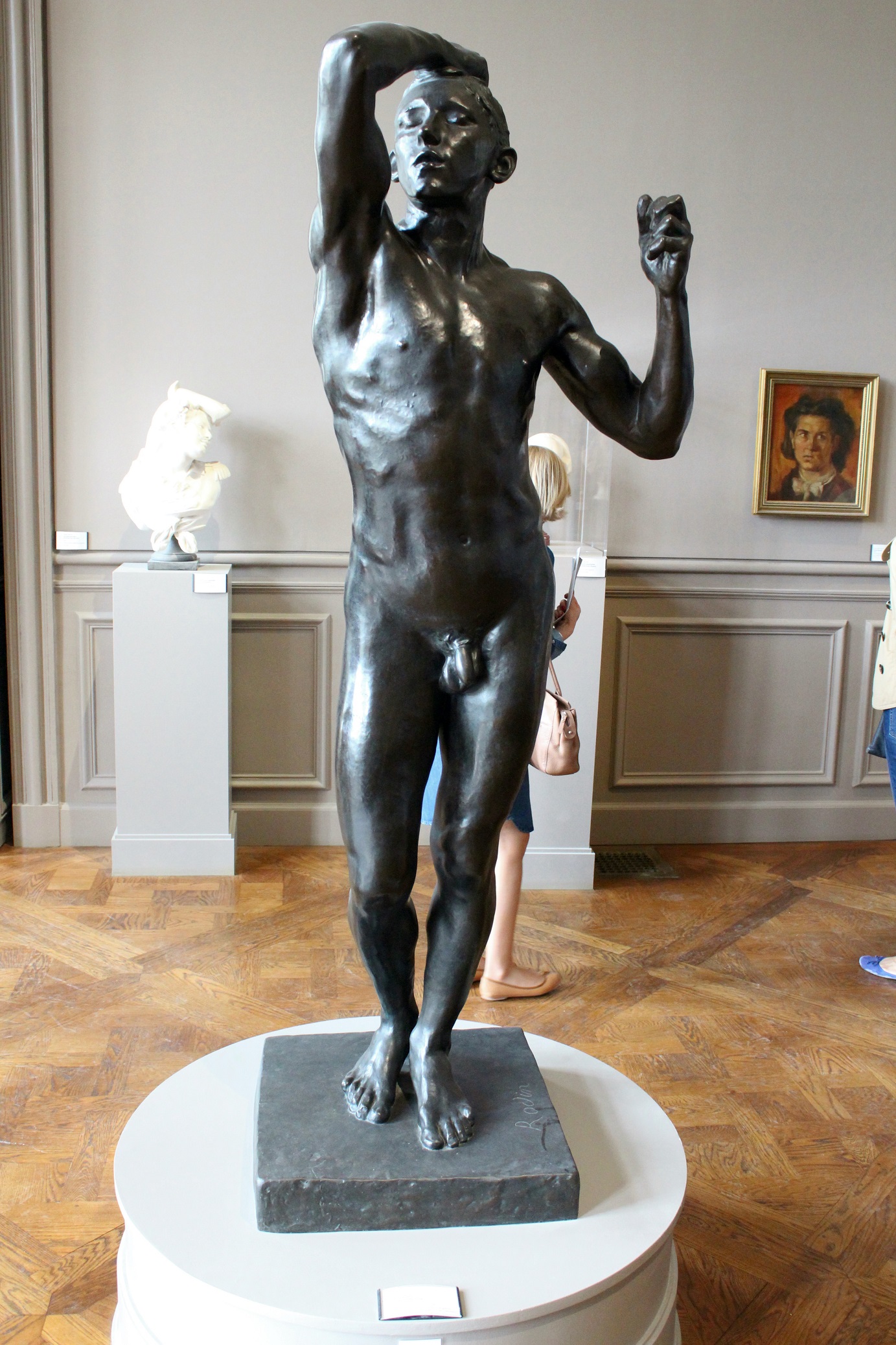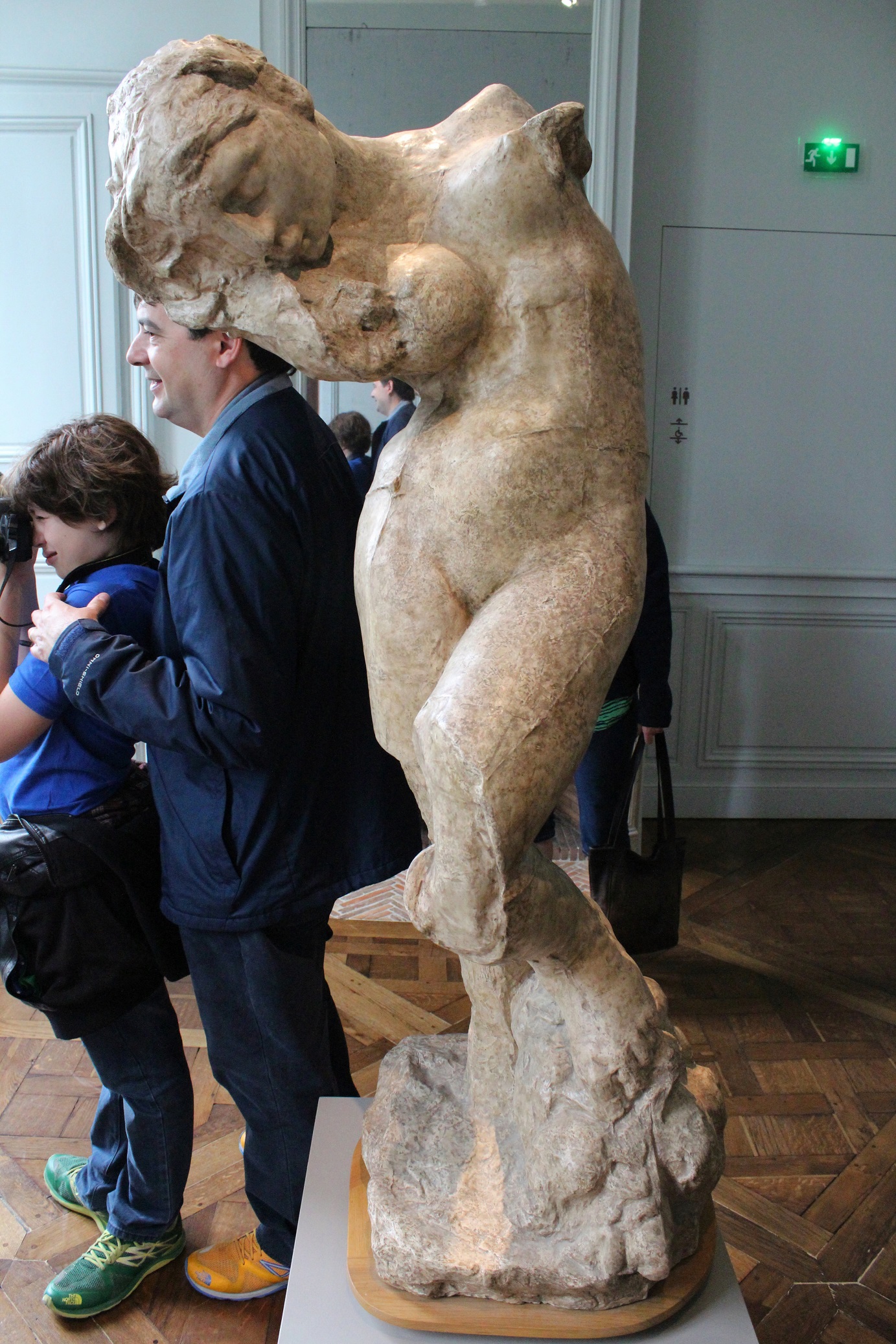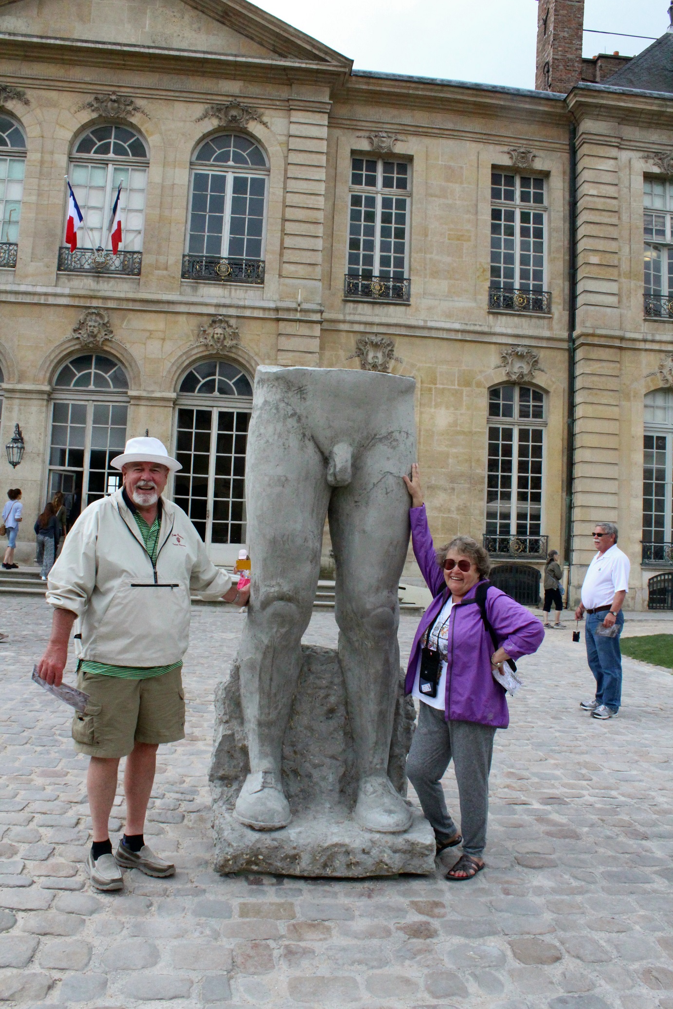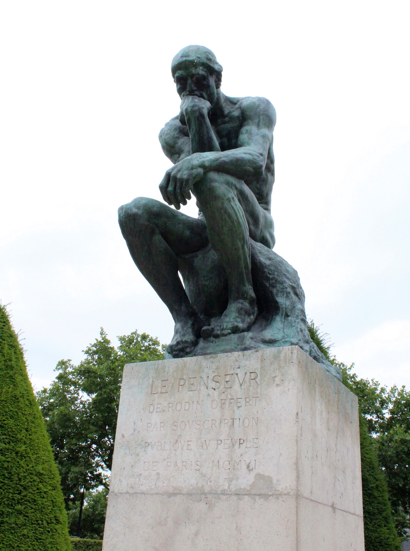 While posing for Rodin’s “The Thinker” — Tom, your hand wasn’t positioned correctly. “The Thinker’s” hand is curled inward and resting on the right side of his face. Just a little observation.