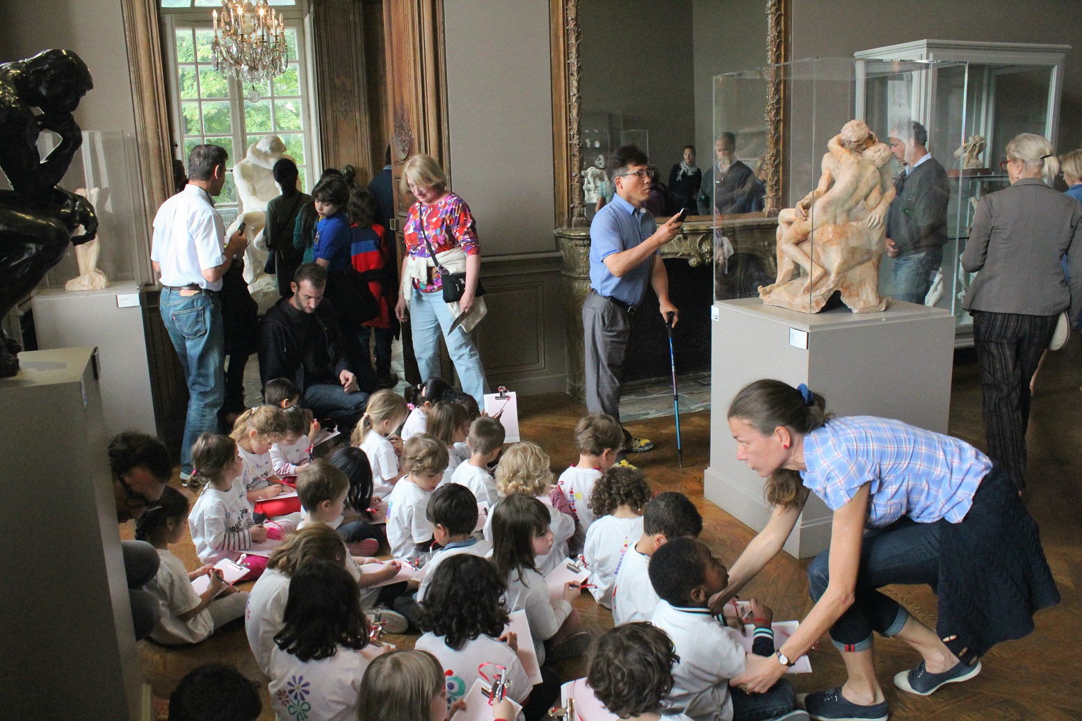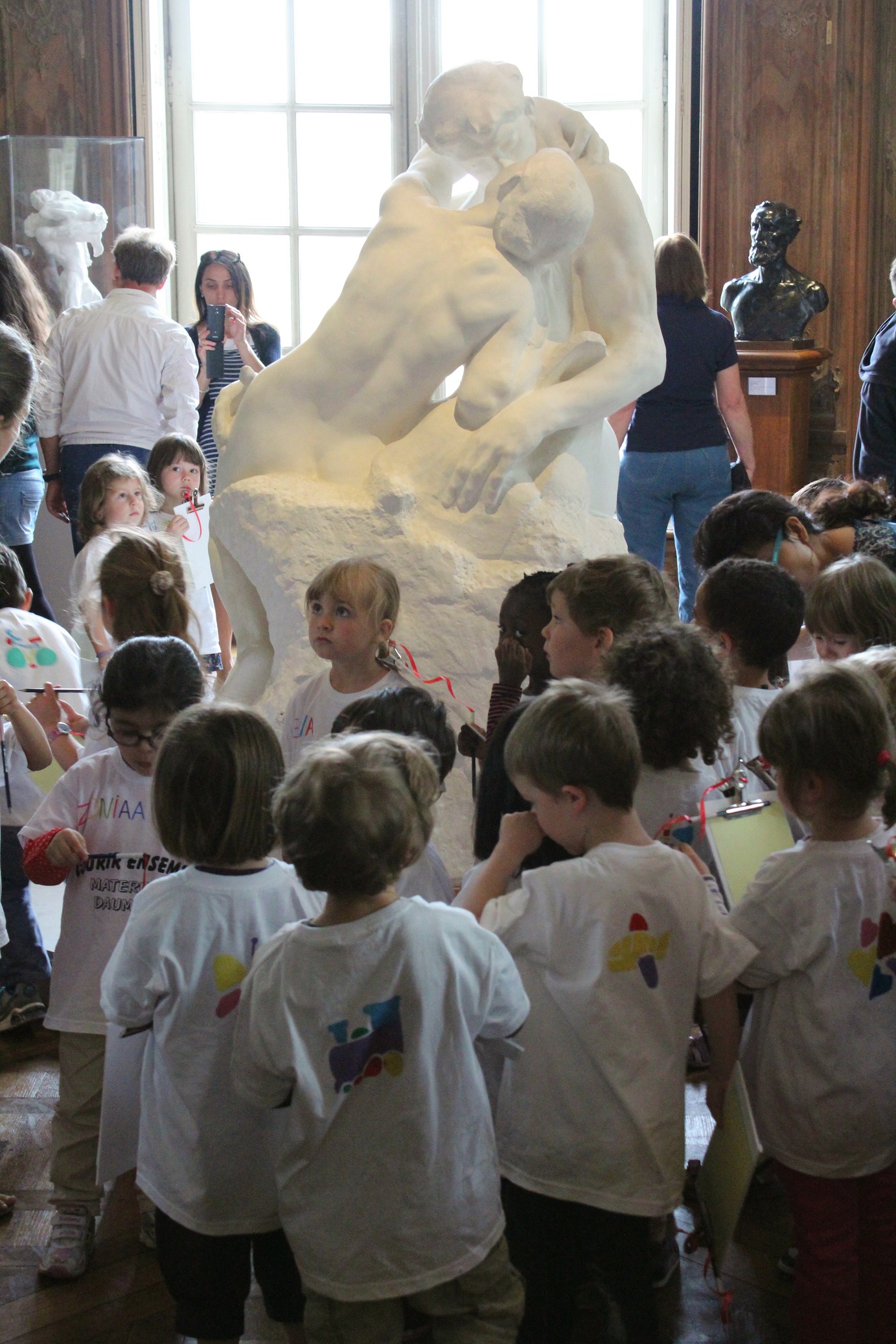 [We loved this!  Obviously a group of pre-schoolers, with their teacher, sitting politely on the floor with their sketch pads drawing . . . “The Kiss.”  🙂  ]