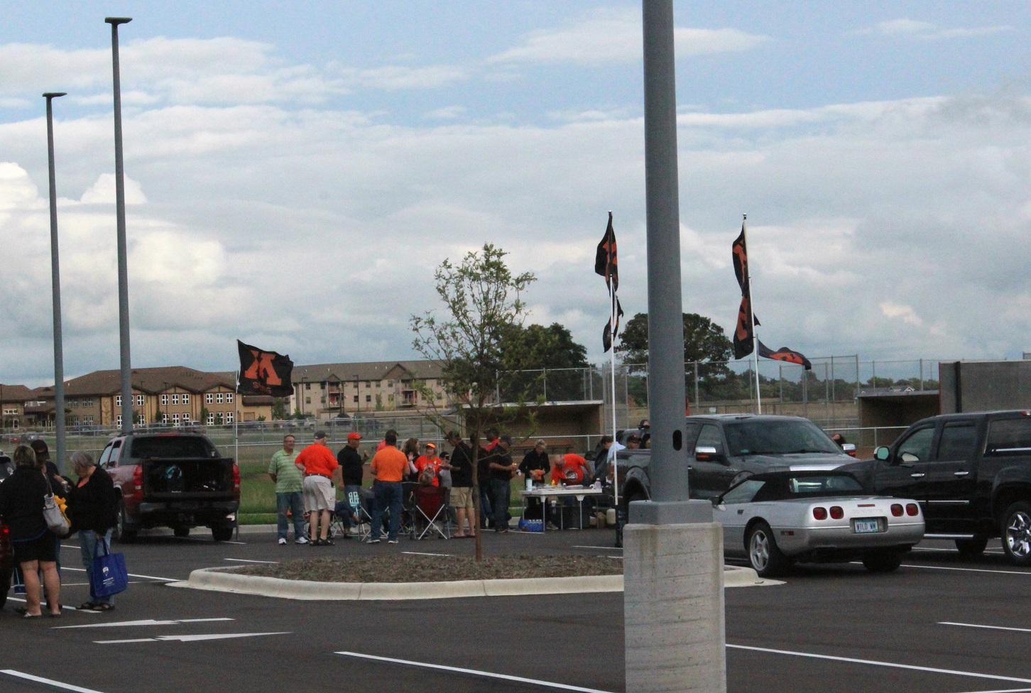 [When we arrived the Spud faithful were tailgating in the parking lot.]