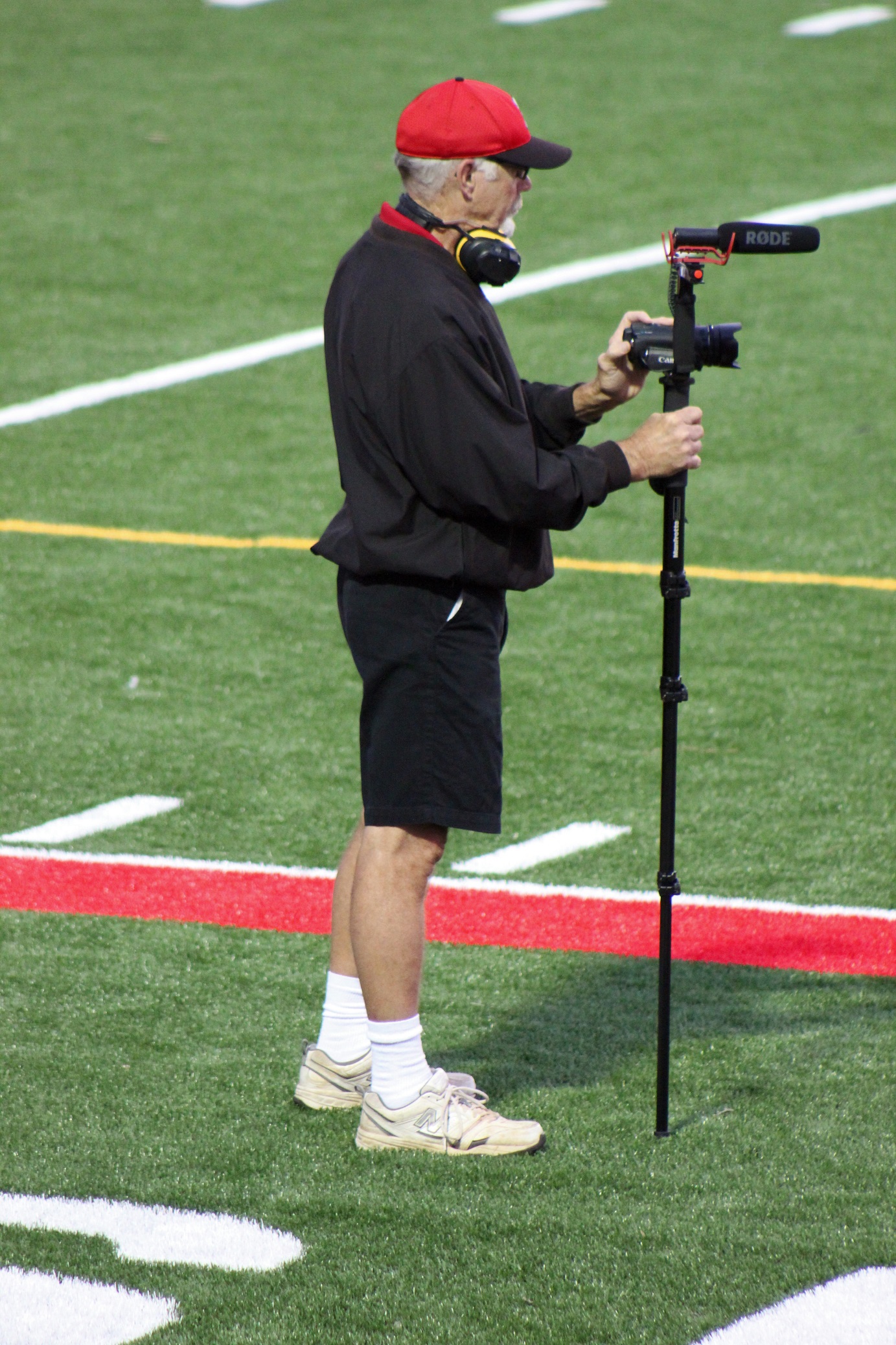 [At some point during the game, “The Voice” interviewed Claire Morrison, who was an assistant coach back in my day. I never played football, for reasons I always felt were logical and rational. I didn’t like to get hurt. (Photos stolen from Dennis Stark’s Facebook posting.)]