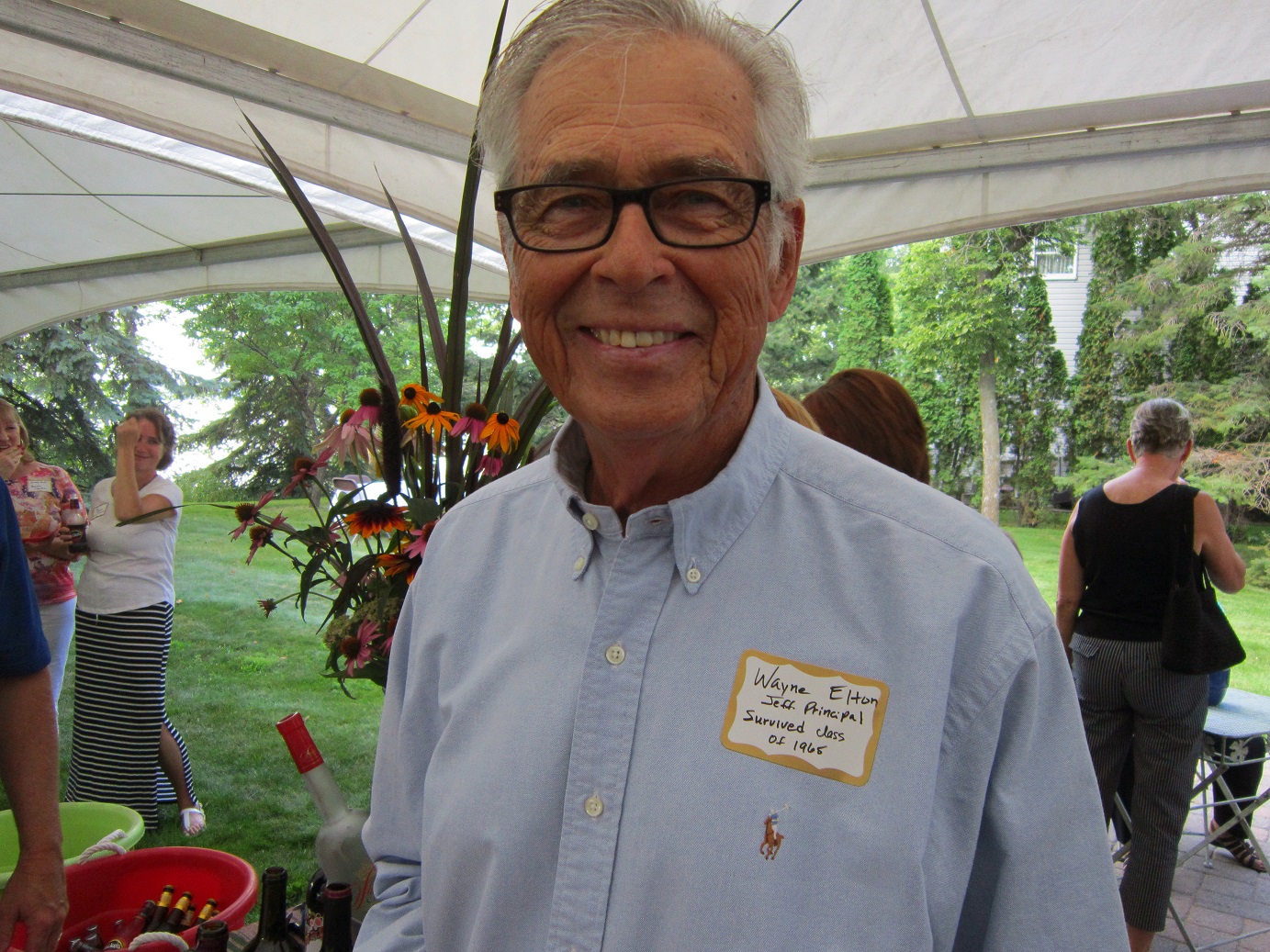 [August 20, a celebration of the new high school. Class of ’65 (mine!) principal, Wayne Elton, his first year as such, let’s us know what he thought of our class! 😉 Again, the Mel Lamar Trio entertained, with girl singer Mary Lou.]