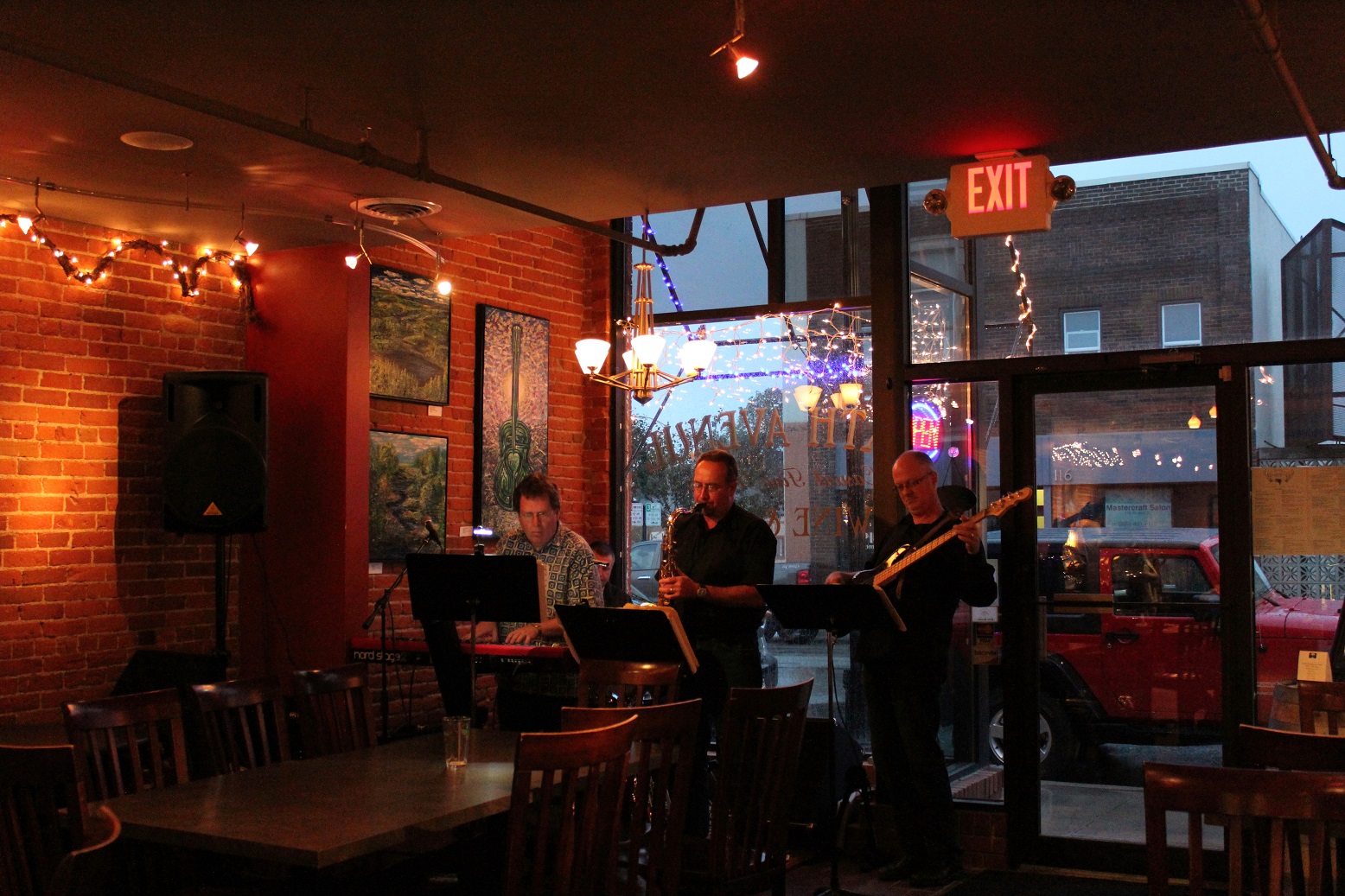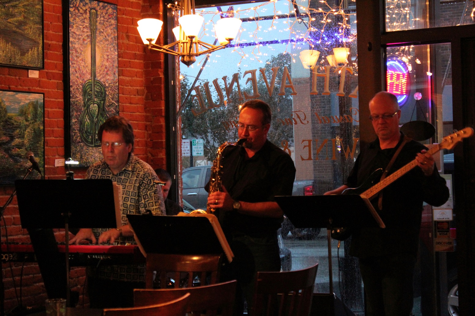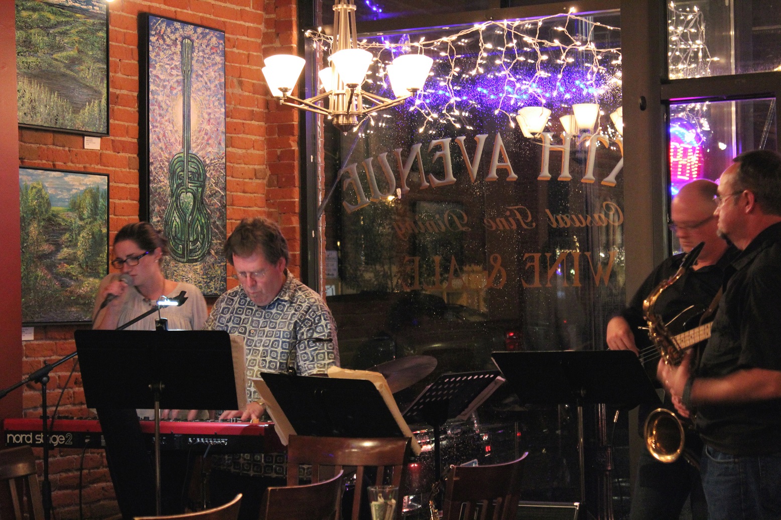 [August 28, Components were at Sixth Avenue Wine & Ale. “Unsquare Dance” by the boys (David, Bill, Marty, and Brian) played for the first time as a result of a request I made, and Bill remembered, about a year and a half ago. 🙂 Thanks again guys!]