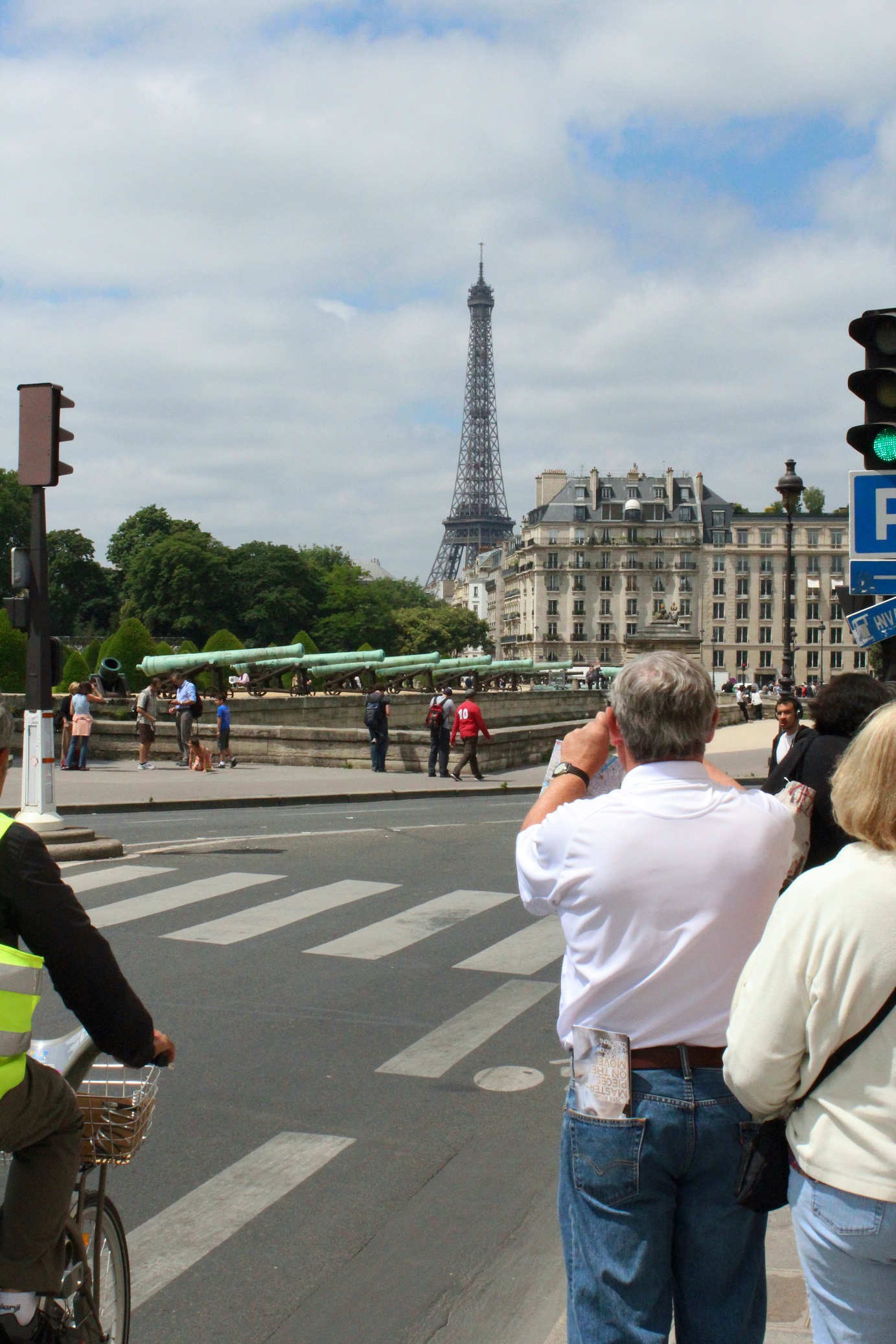 [We’ve left the Rodin. Bill uses his sextant to plot our new course, getting his bearings from the Tower, of course. Uffda!! (That’s Norwegian-French for forgetfulness.) I forgot to mention that Kay and Elizabeth went home on this morning. After tearful good-byes over lattes and cognacs, the Magnificent Seven was now the Fab Five.]