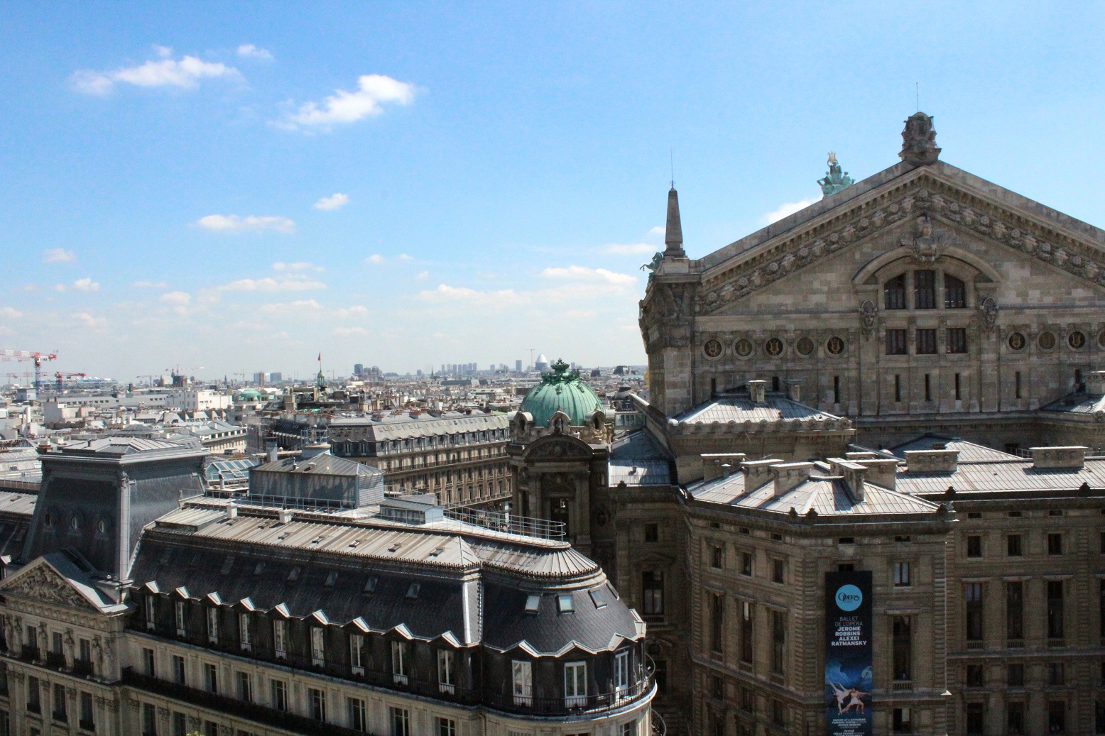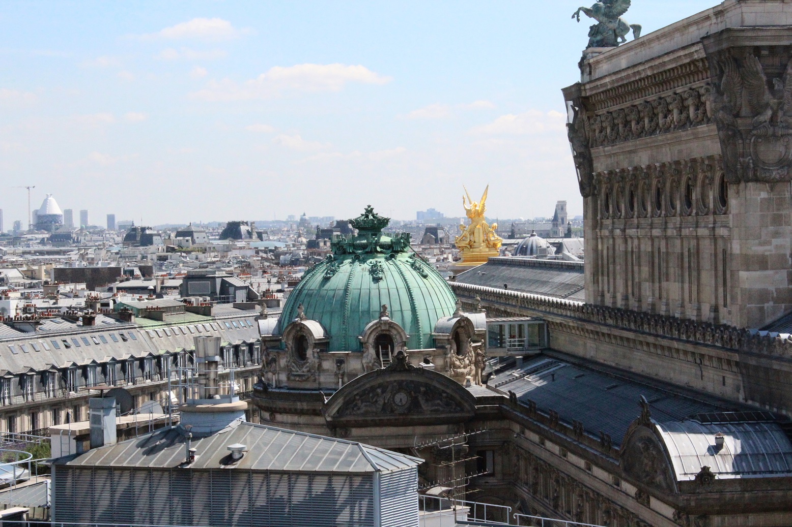 [One of the supervisor’s favorite places. She has fond memories from a previous visit many years ago. Because it involves shopping! 😉 We’re shooting from the roof of the Galleries Lafayette, the Paris equivalent of Macy’s in New York City.]