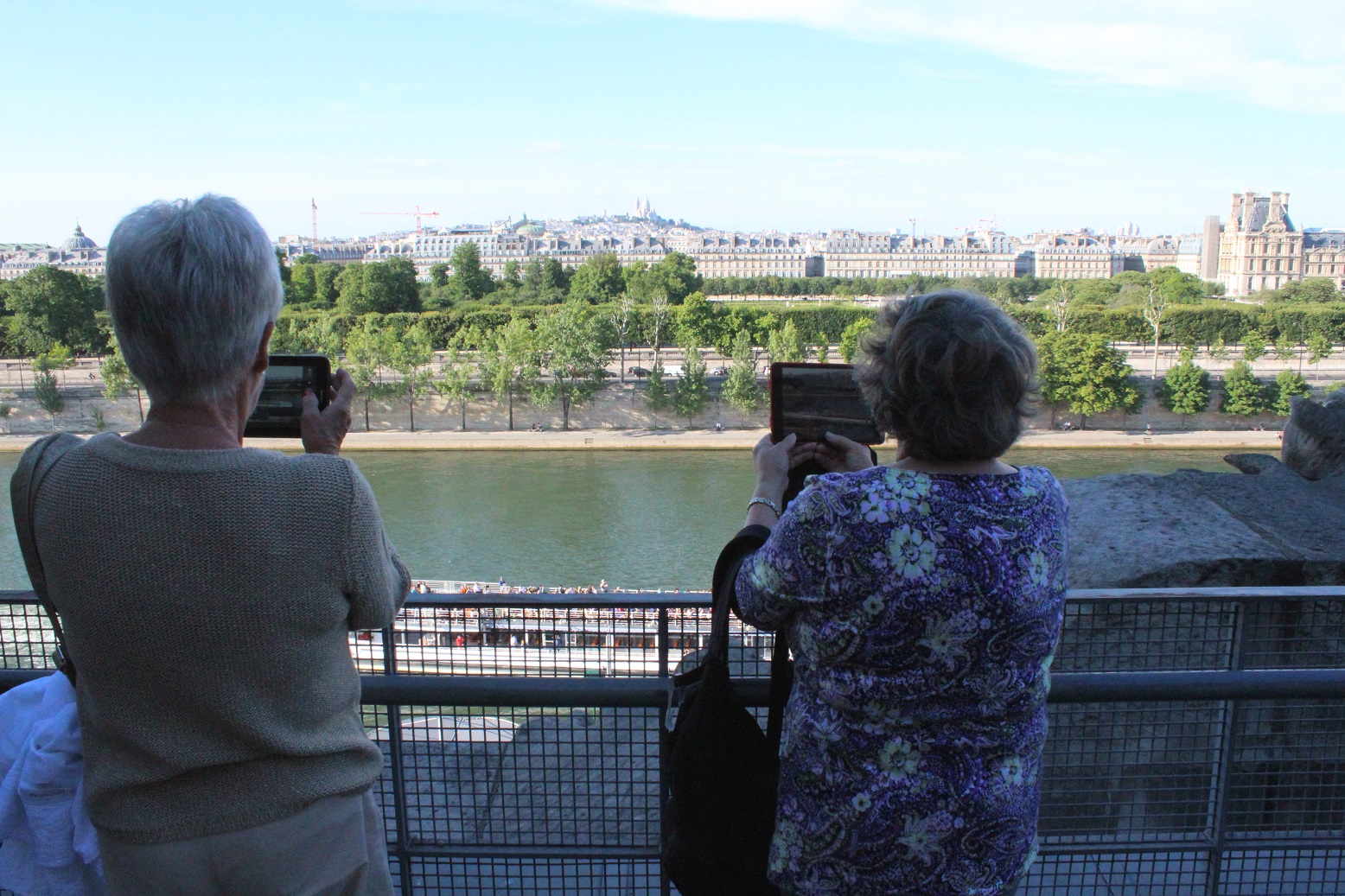 [Tourists who generally tried to behave themselves, with Mont Martre in the background.]
