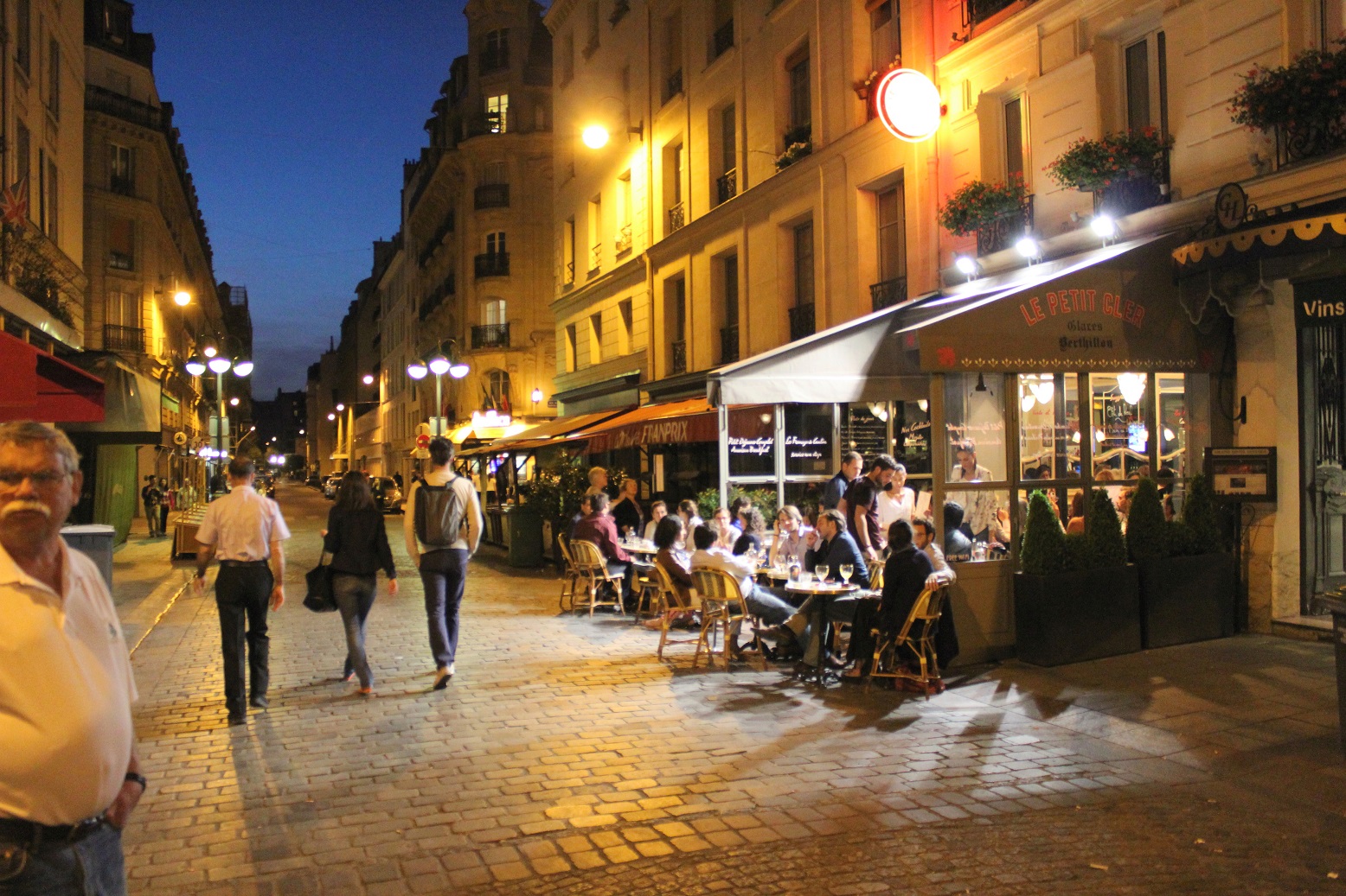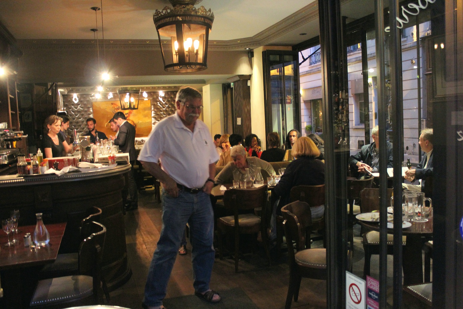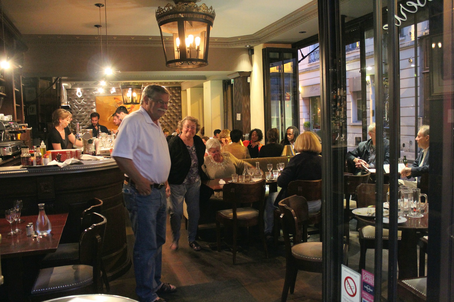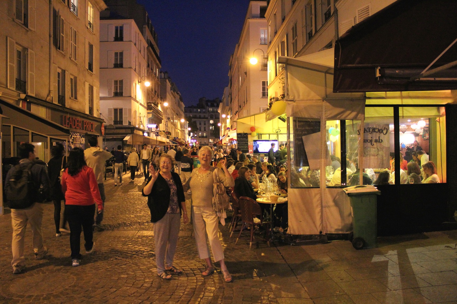 [The Biddies delight in the atmosphere. I believe this was a night of the World Cup, and the restaurants were full of boisterous fans!]