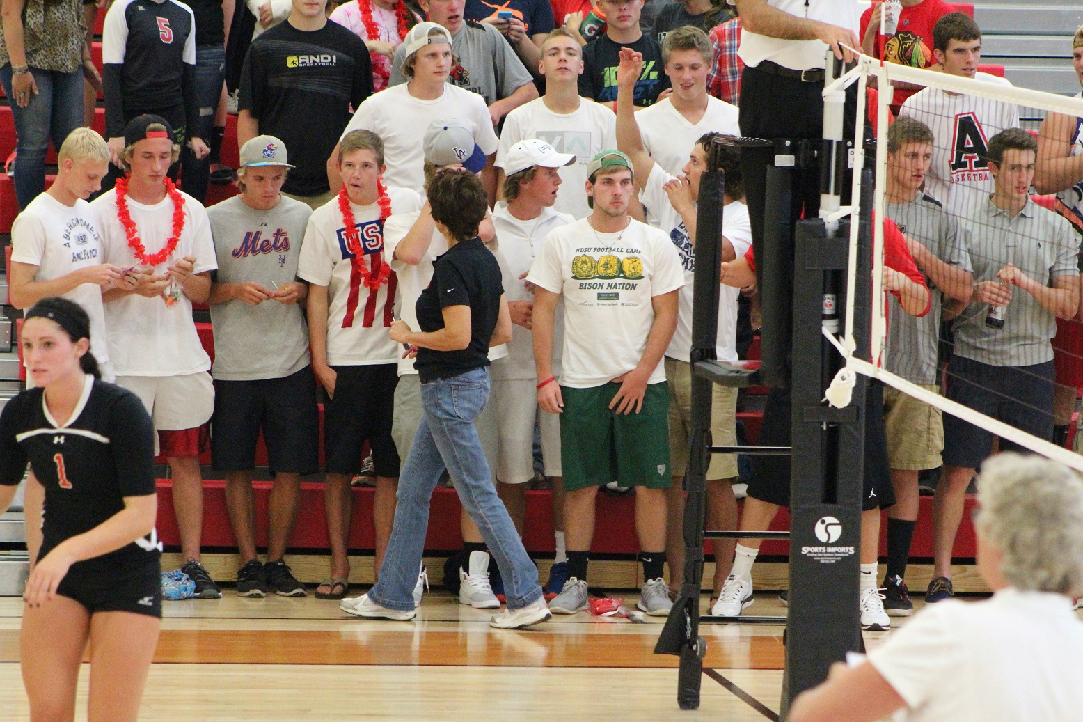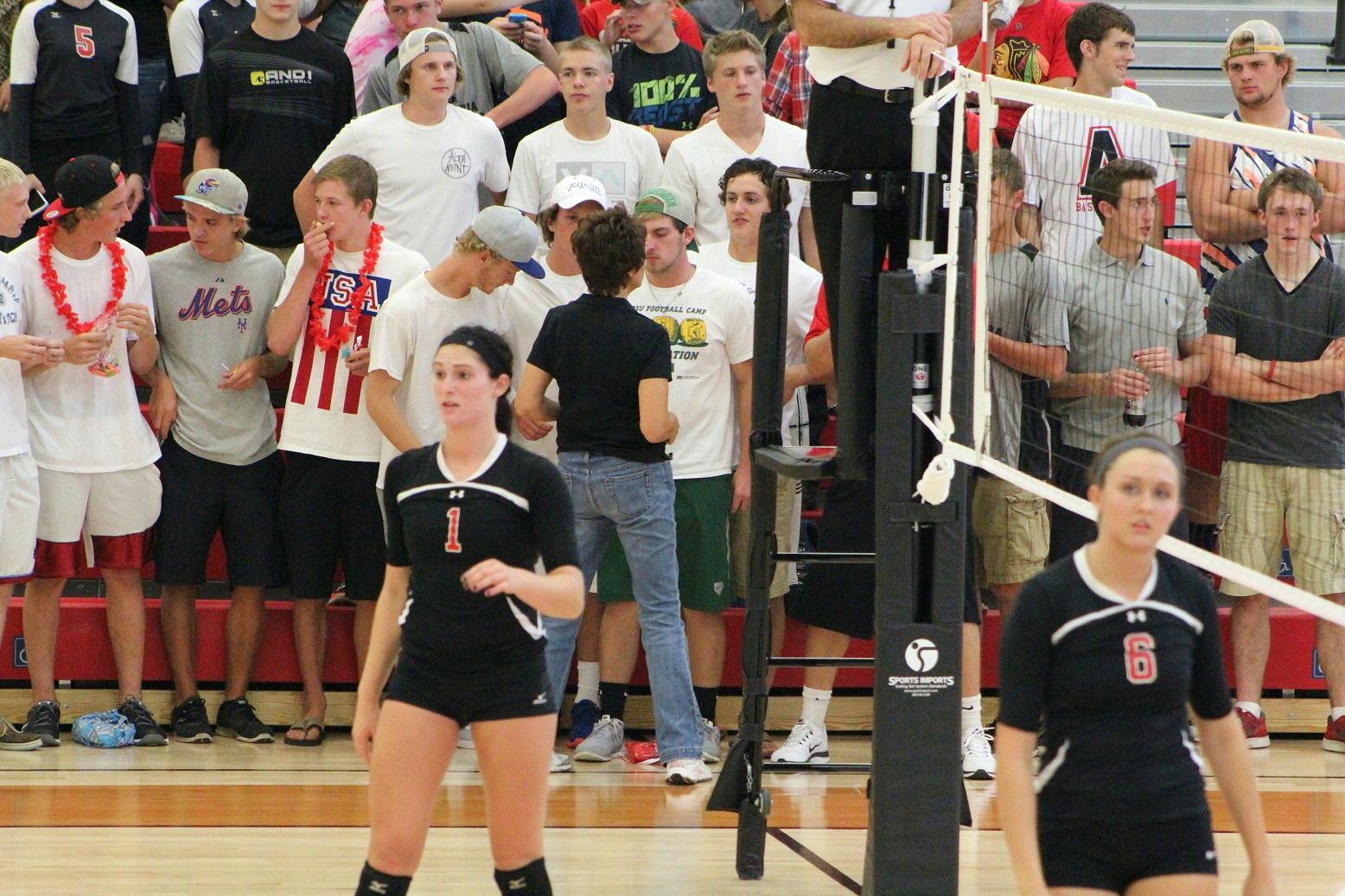 [If you don’t win game 3, you’ll have to play 5. I know you’re tired after 5 games in The Cities over the weekend. Again, I heard parents behind me say how beat up the players get in these games. In this 5 game match, for example, there’s over 200 points scored, and for each point the net players might be jumping to their max 3 or 4 times. Try jumping as high as you can 600 times over the course of a couple hours. Plus, all of the times they dive on the floor trying to save points. After their long weekend, I thought we looked a bit worn out.]