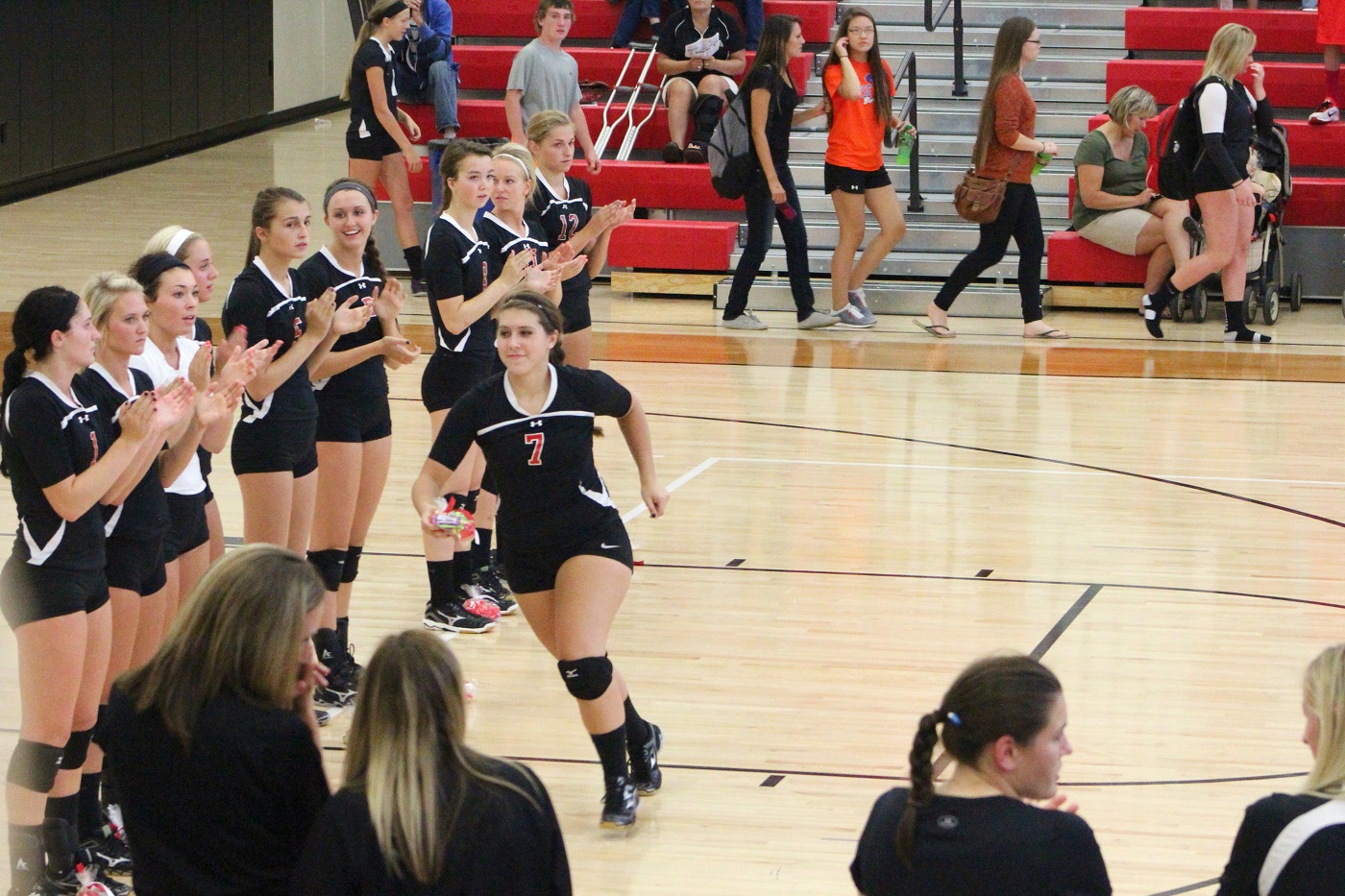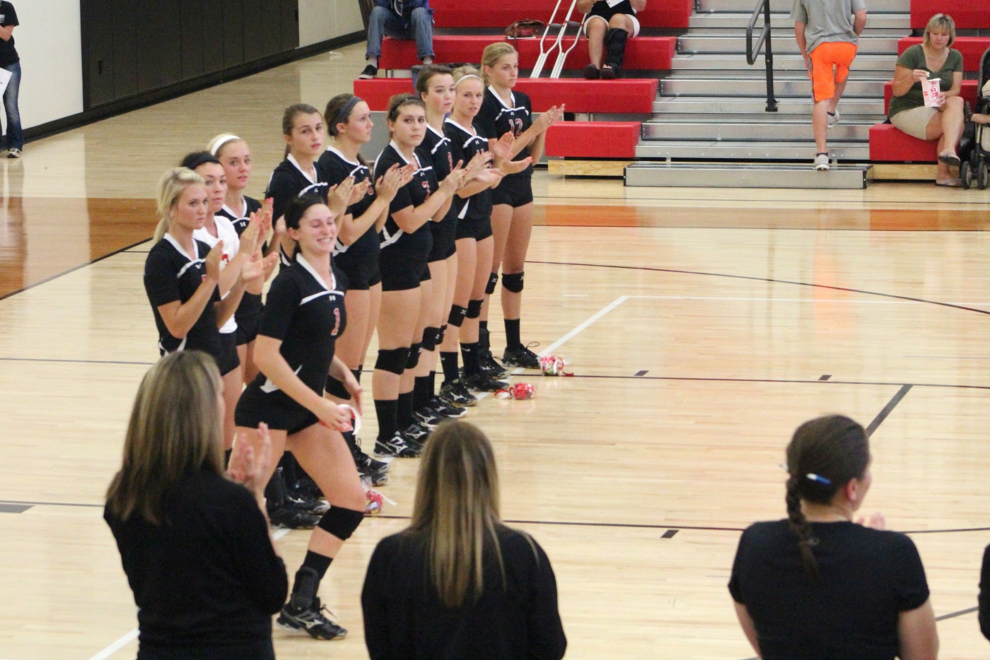 [OK, this time I got all the players at introduction. Morgan Melrose must still be a little nicked up – she only entered the game once to make one serve.]
