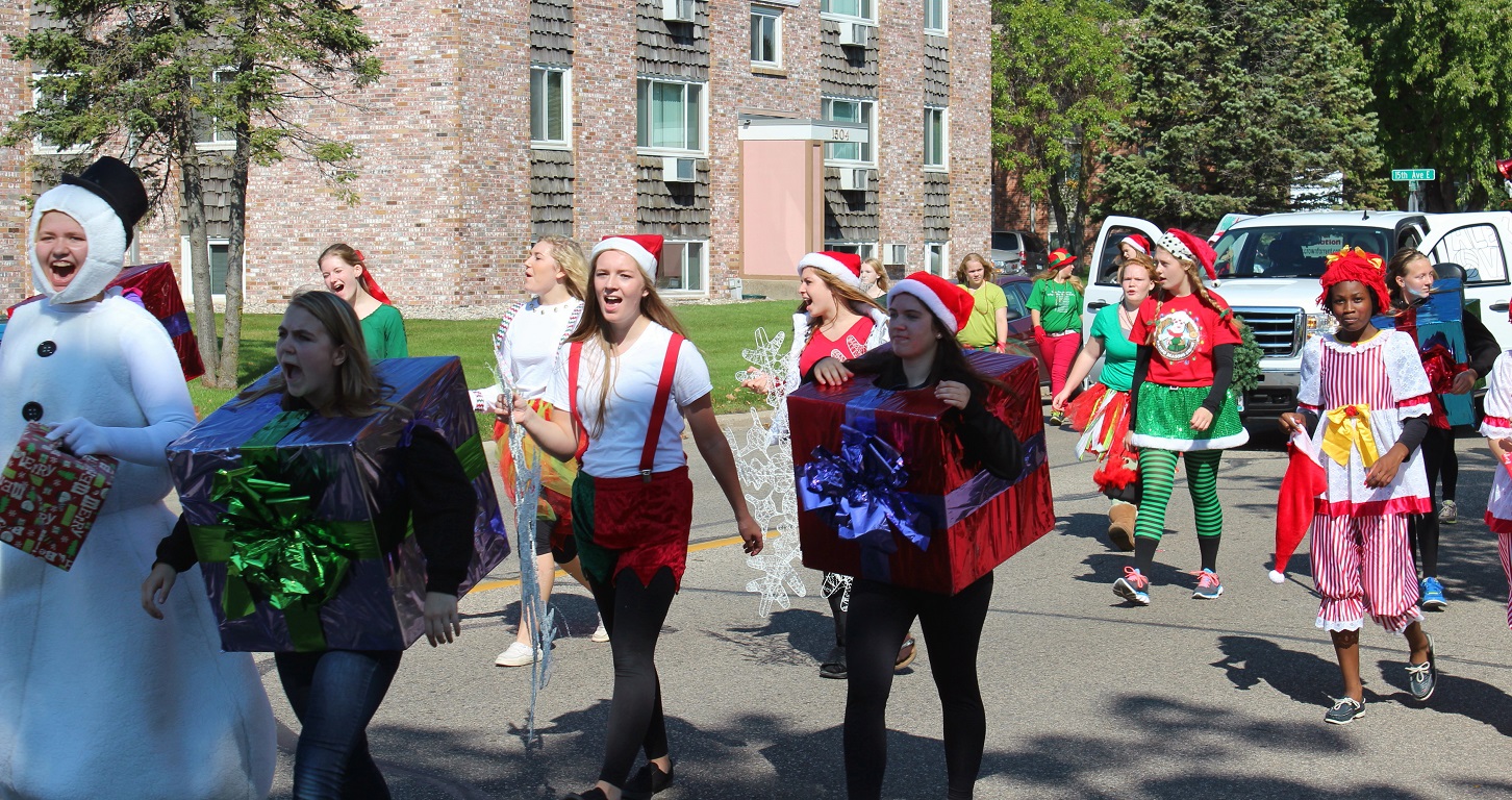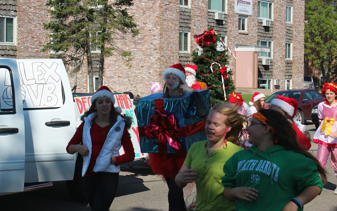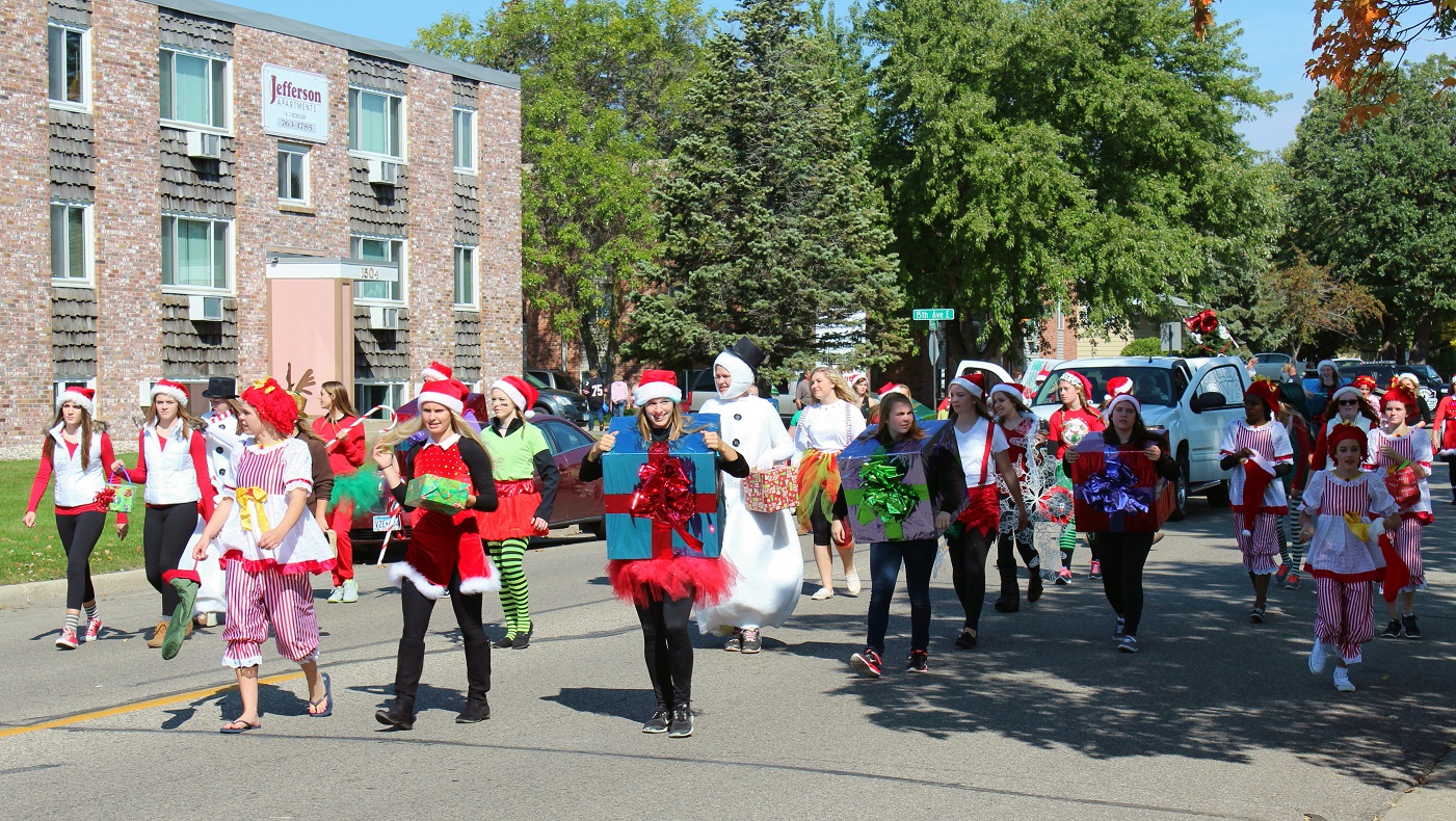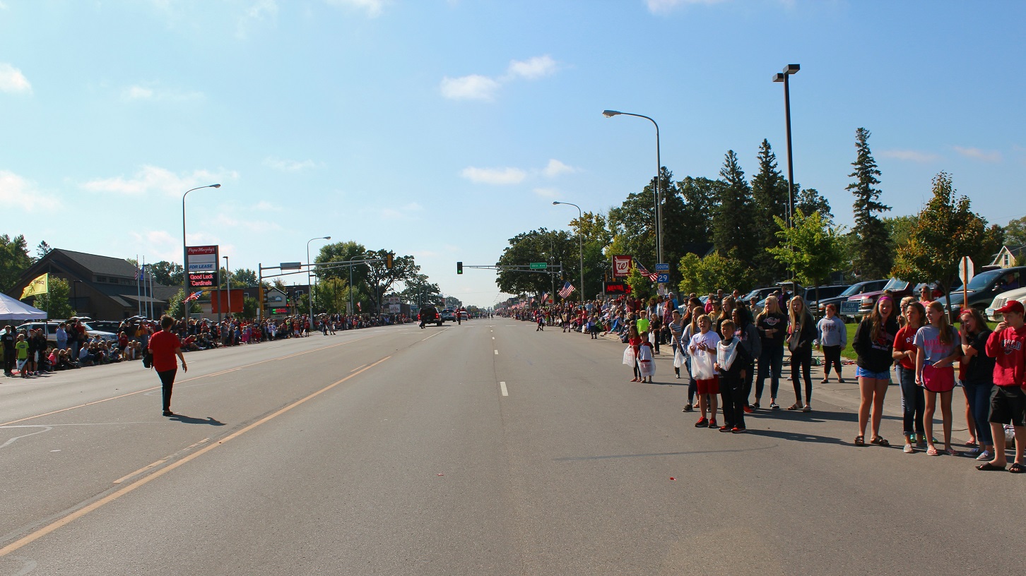 [We turned onto Broadway at 9th. Sara got to walk down the middle of our main drag probably for the first time since she played for the Alex marching band.]