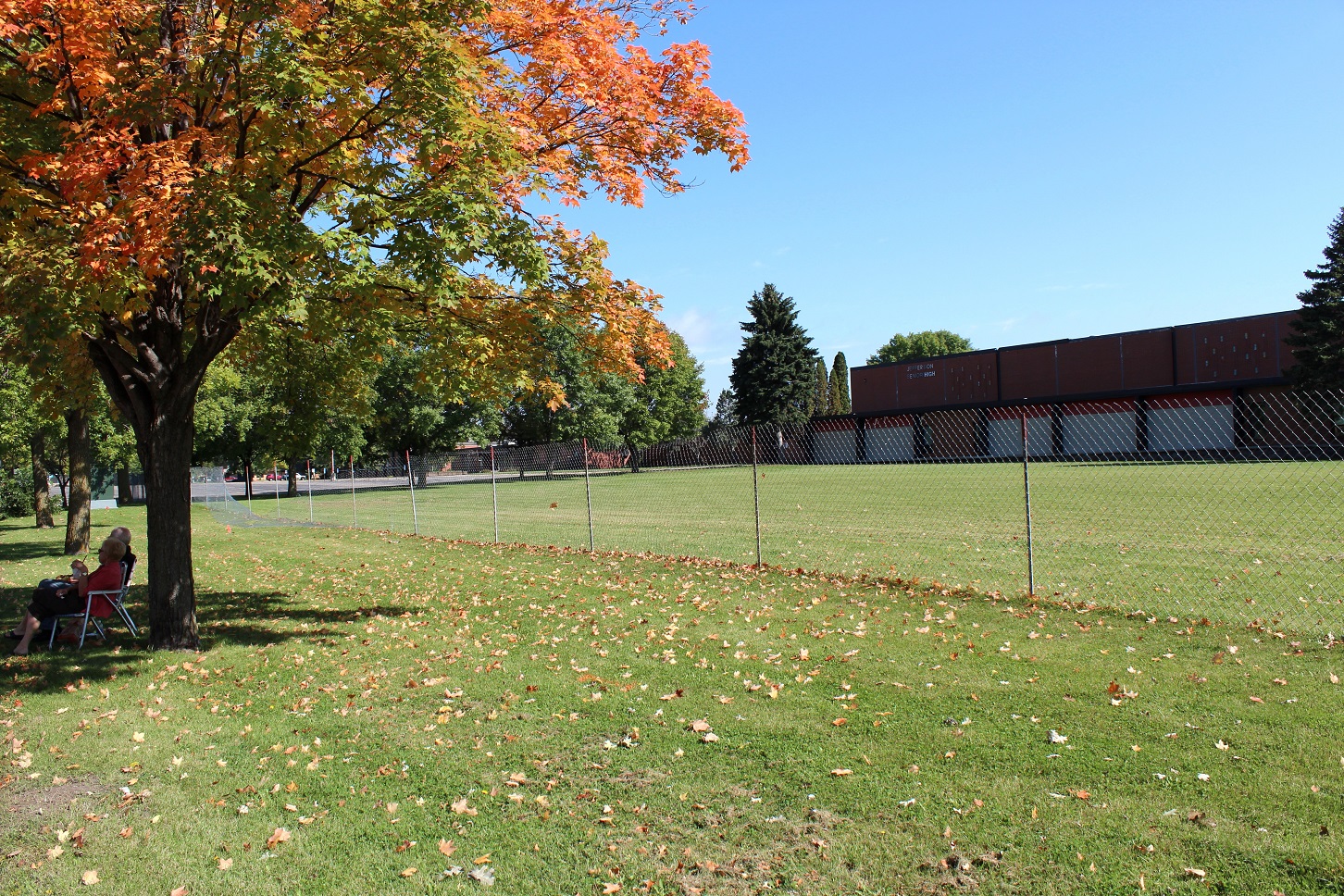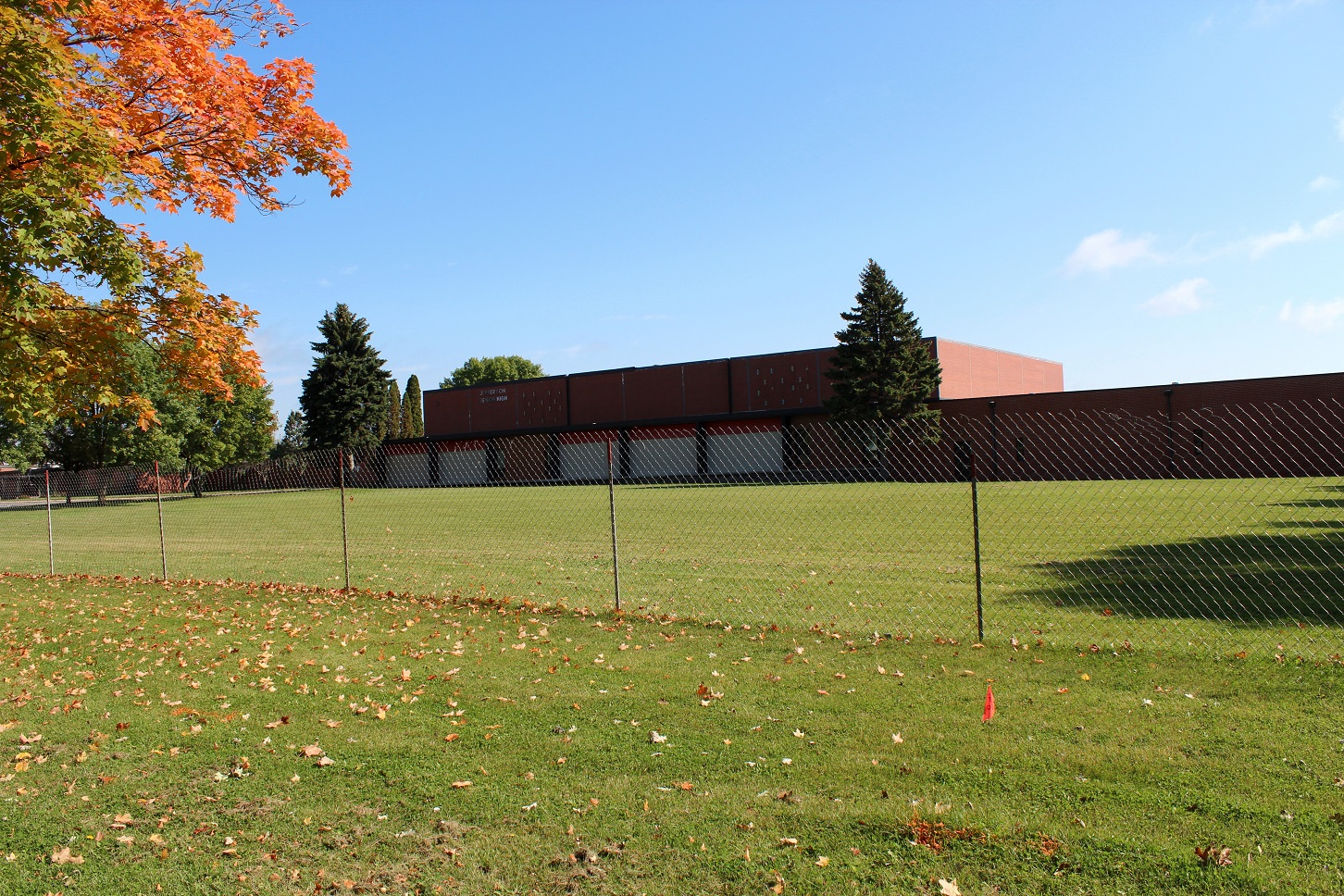 [Then we were back to the old high school. Jefferson looks lost and abandoned, in its chain link fence security fortress.]