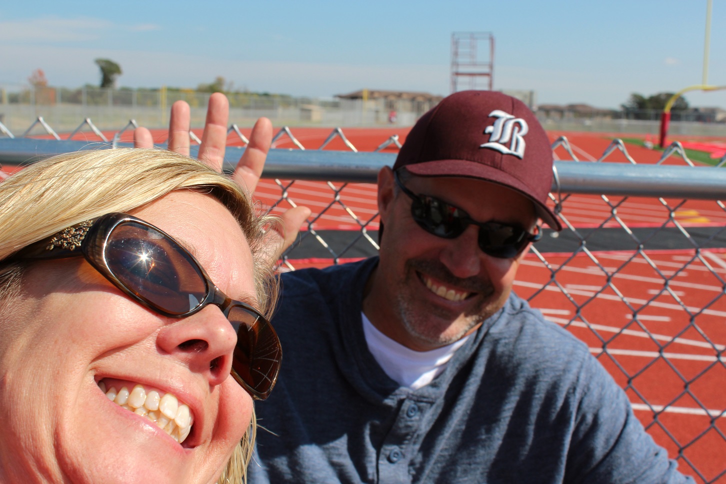 [Then she took these photos of two old guys? OK, the “selfie” was by Pam Lucas, a fellow Y worker outer, and Richie Braun is the other “old guy.” Richie and Marlene’s grandson, Brayden Amundson, caught a 25-yard pass for the last TD of the game.]