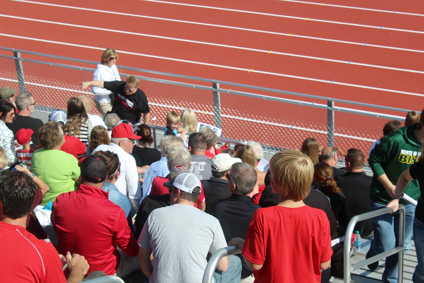 [Then it was on to the football game, the feature presentation of the weekend. We were hosting the Rocori Spartans. When Sara asked who we were playing and I answered, she said “Whhaaaaa?” Well, she lives in California and there was no such thing as Rocori in our day (well, if there was we didn’t play them). We came early for the tailgating – burgers, chips, and stuff – and my first “exposure” there was to The Competition.]