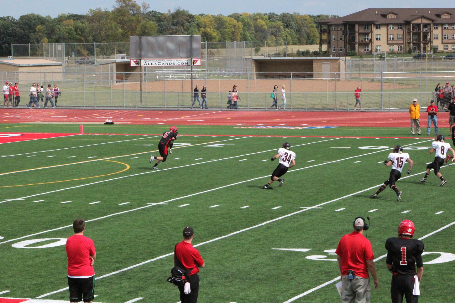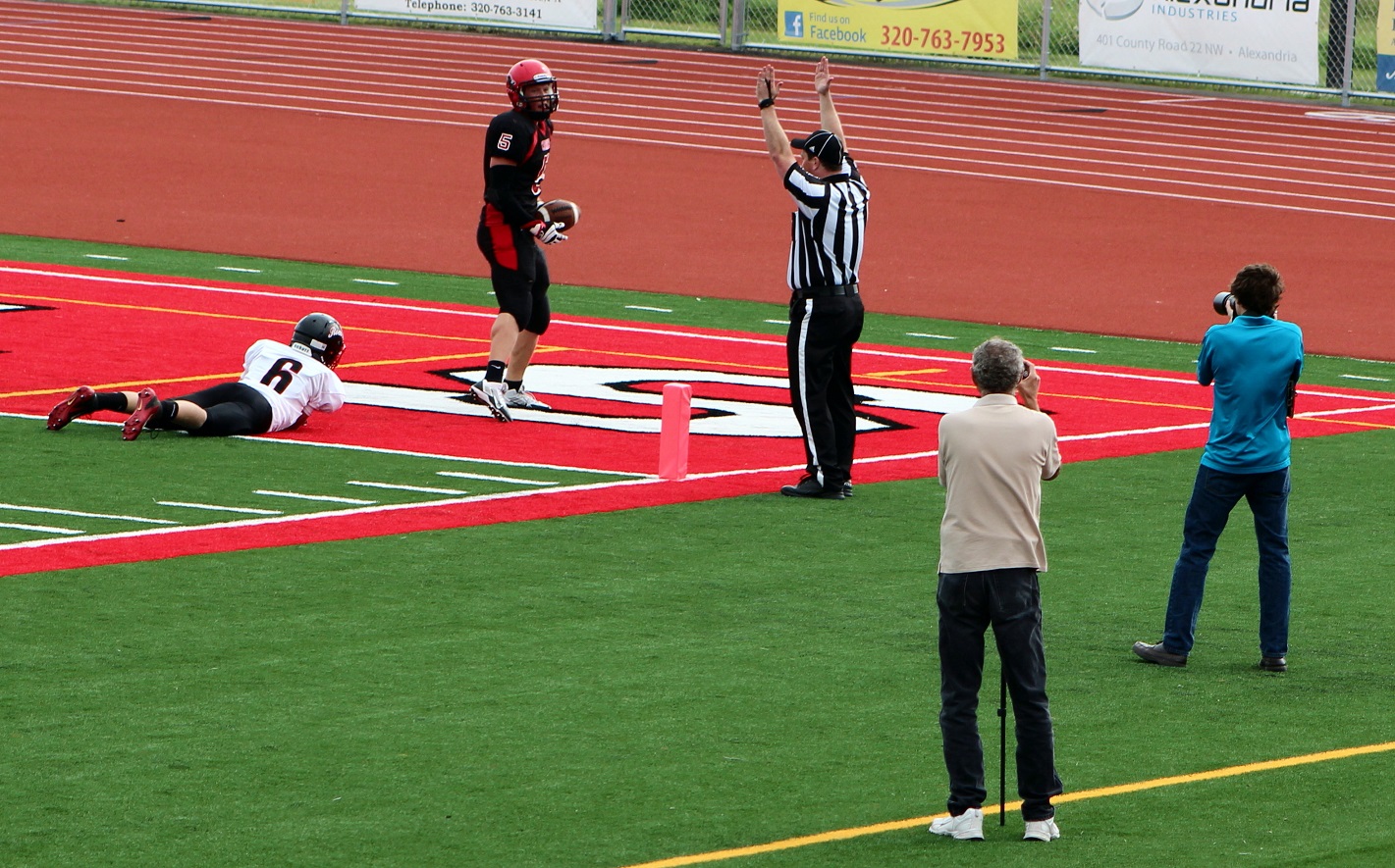 Post game analysis from someone admittedly not that interested in football anymore: The Cards defense has been good enough in all but the Sartell game. I’ve only seen a game and a half but now I like the potential of the team. If the defense remains consistent and the running game, about which I had doubts, continues to improve we should be competitive the rest of season. I’d like to see the offense open up a little more because there are some abilities there – you have a 6’3″ quarterback and two 6’3″ wide receivers, Gorghuber and Amundson. Roste has been under pressure when he drops back to pass, but he’s mobile. Roll him out more – from the little I’ve seen he’s seems to be more accurate when he’s on the move, either direction, than when he’s back in the pocket. But then what do I know? Go Cards!