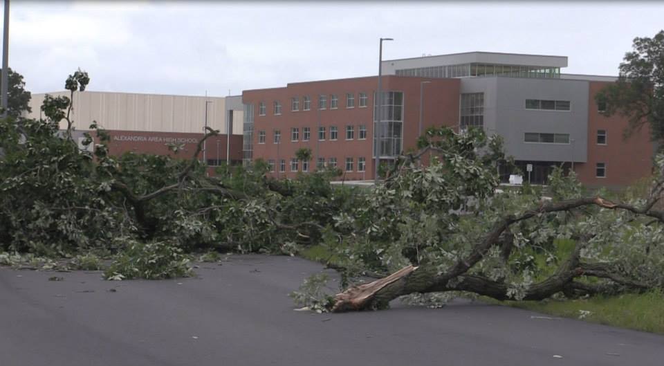 [Then the forecast came true. Just before the end of the half, the rain started slowly. Many, including us, headed for our cars. By the time we got to downtown, it was a down pour with gale force winds. No, the above didn’t happened on this night – but if the storm had lasted longer, it could have. The start of the 2nd half was delayed for more than an hour. When we got home, we turned on the Gopher game – that was similarly delayed about 2 hours later by the same storm.]the