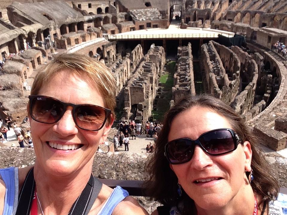 [Our sister-on-law, Karen (r), was also at a coliseum this week.]