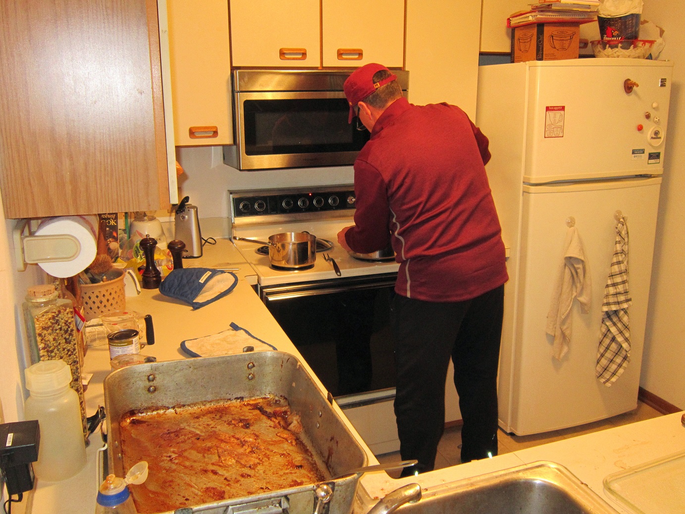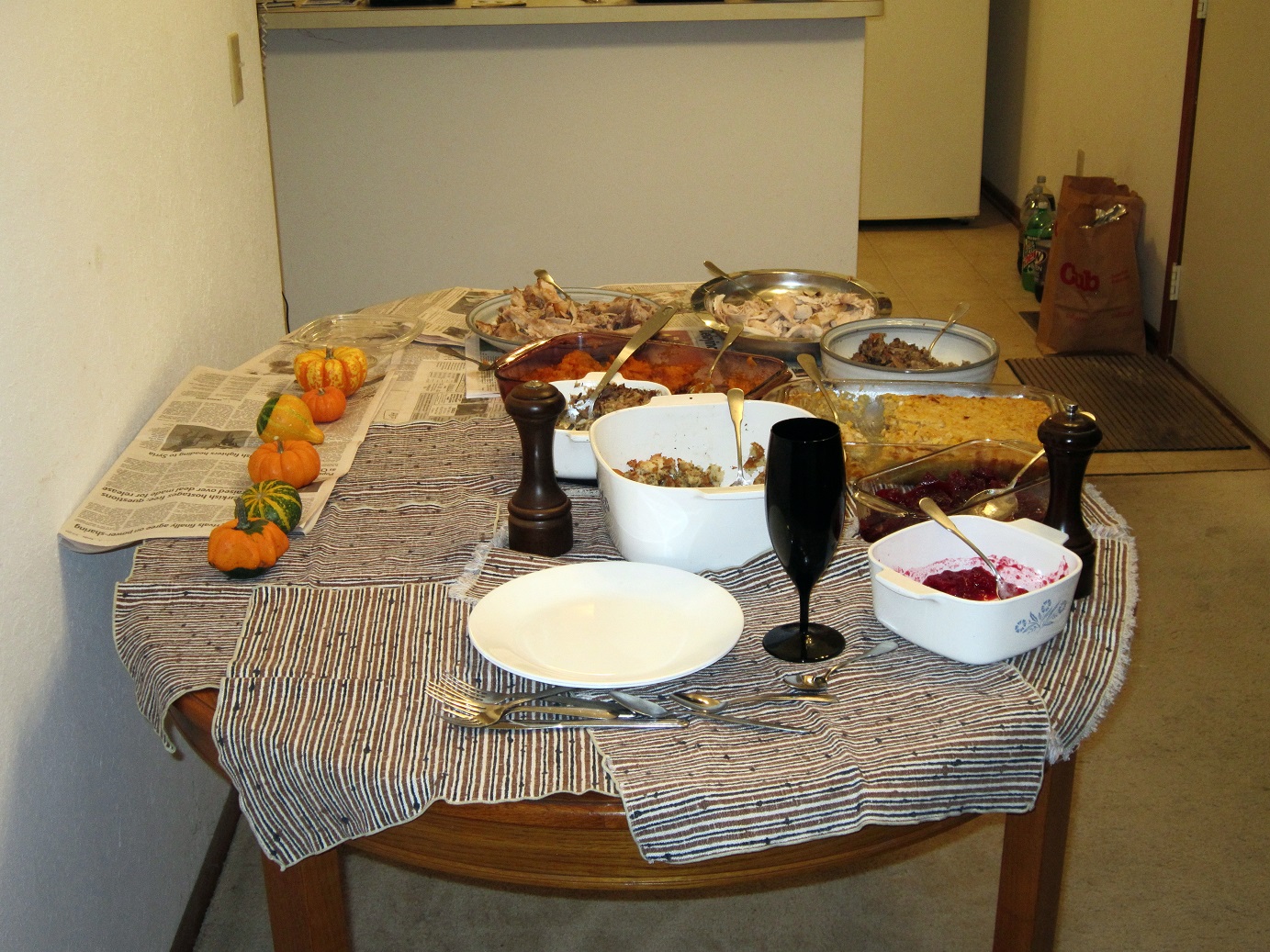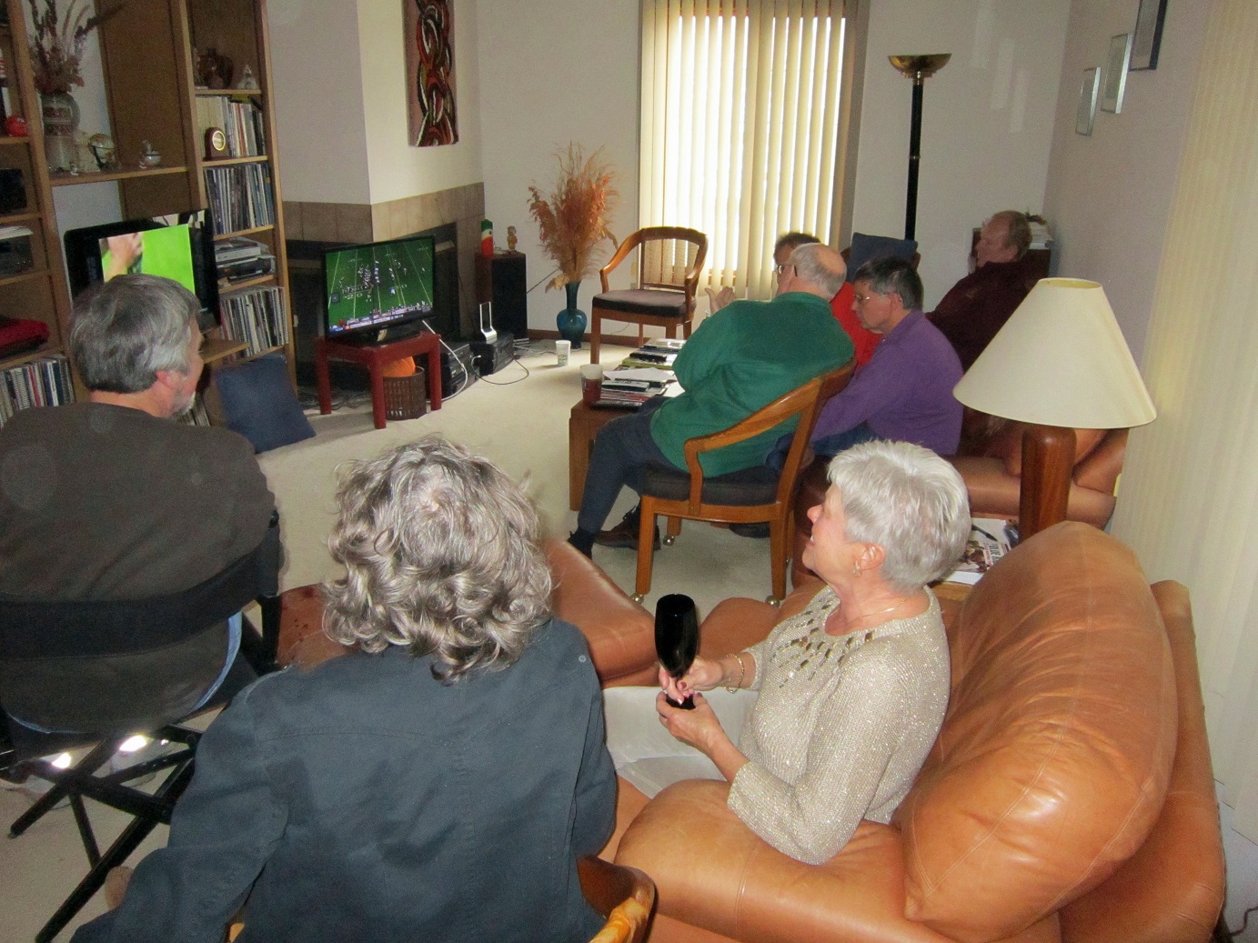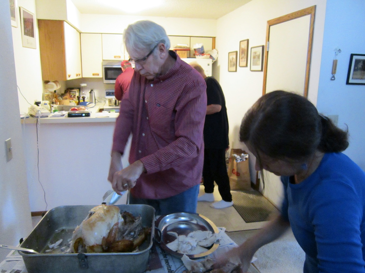 [This long running affair features friends and colleagues from those glorious college days of yesteryear, long before there was even a Woodbury, who meet at Dan’s for a full Thanksgiving dinner (a few weeks before the actual holiday) to gorge on a 26-pounder and all the fixings, and to watch as many college football games as possible. Most have assigned duties they repeat year after year . . . and a good time is had by all! 🙂 ]