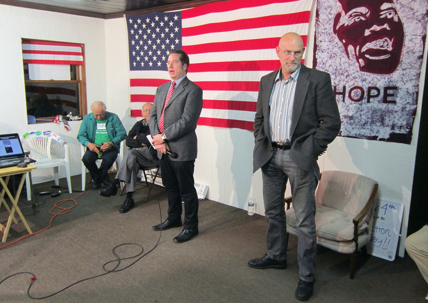 [The League of Women Voters co-sponsored three political forums this season. At this, for the sheriff’s race at city hall, my camera battery went dead after the first photo. Not a well-prepared faux journalist!]