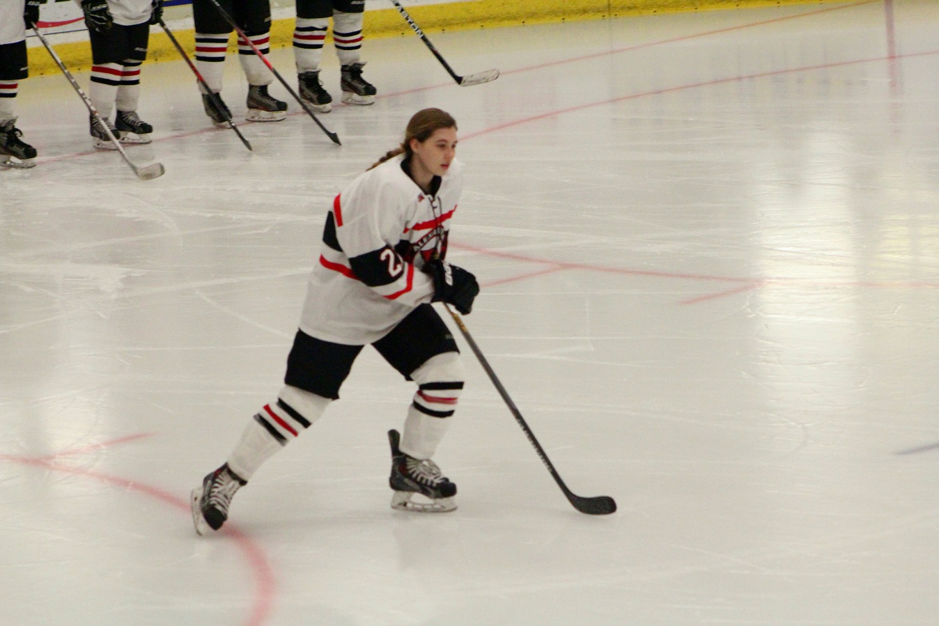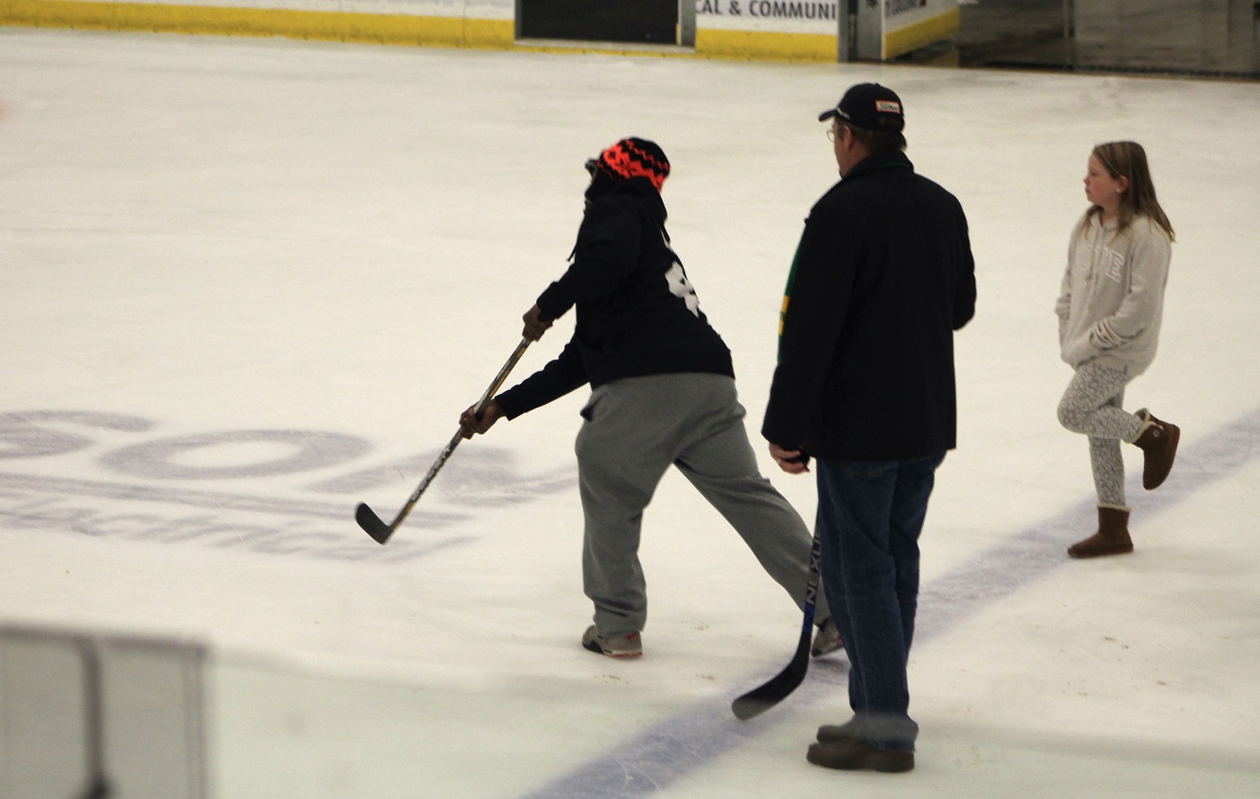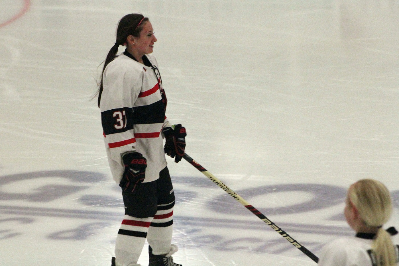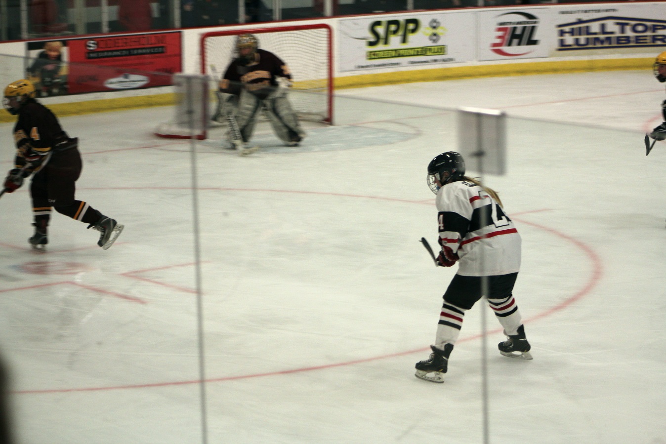 [Michaela reverses direction at center ice.]
